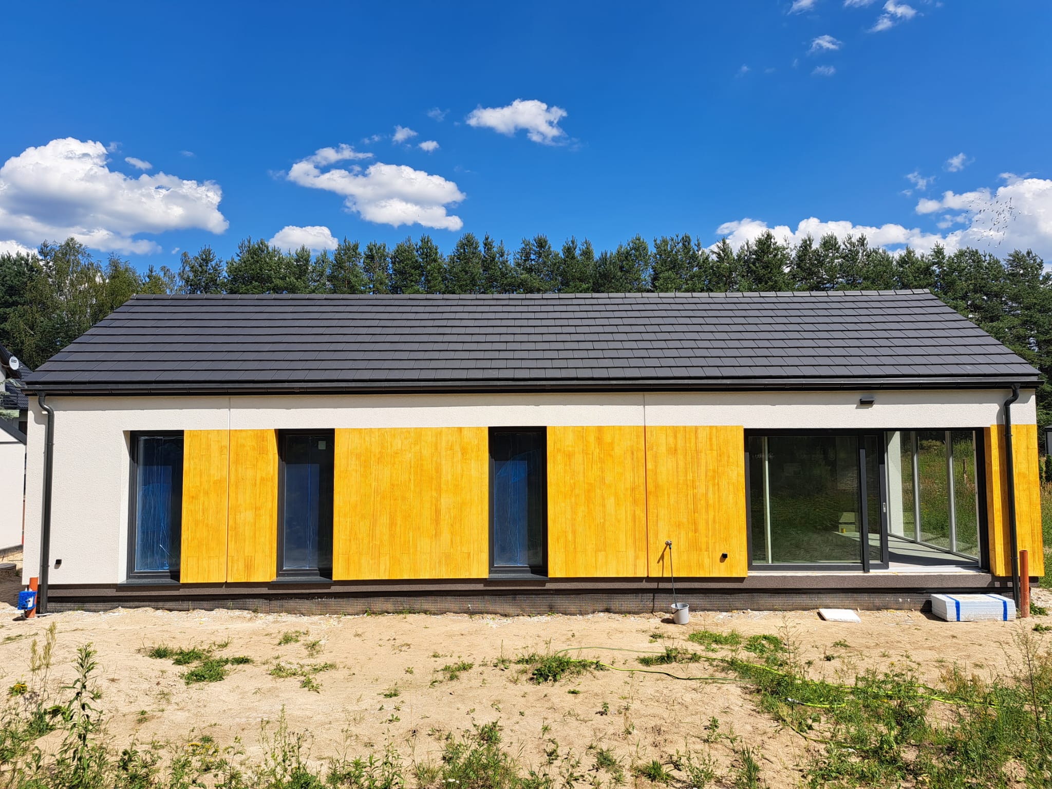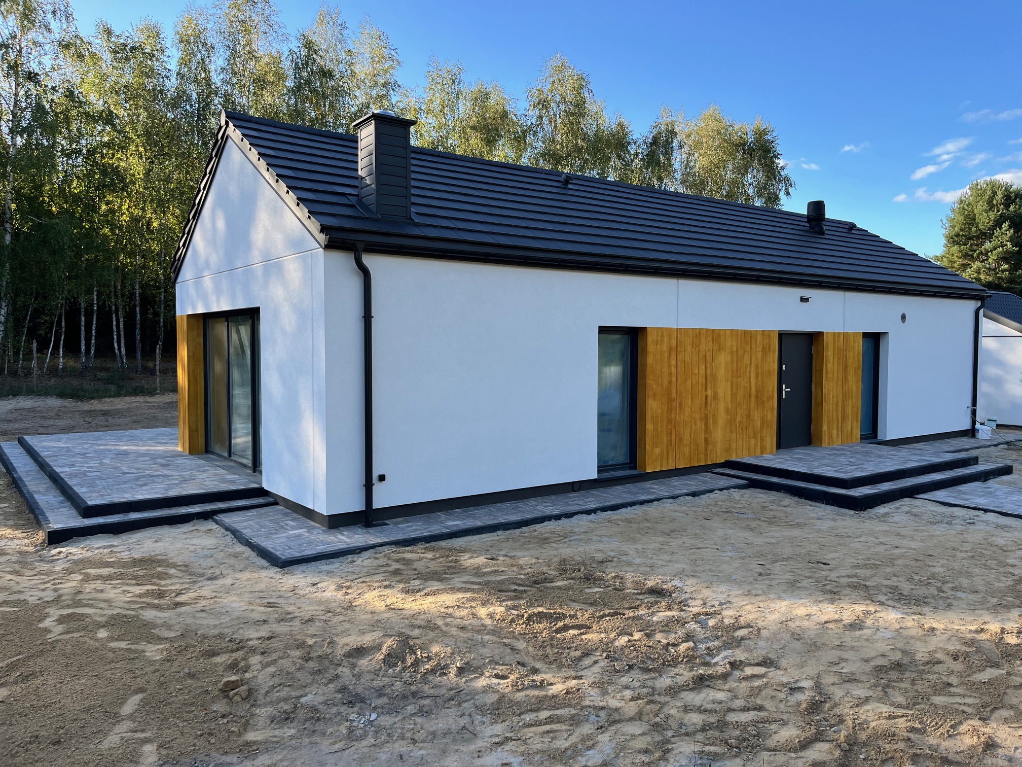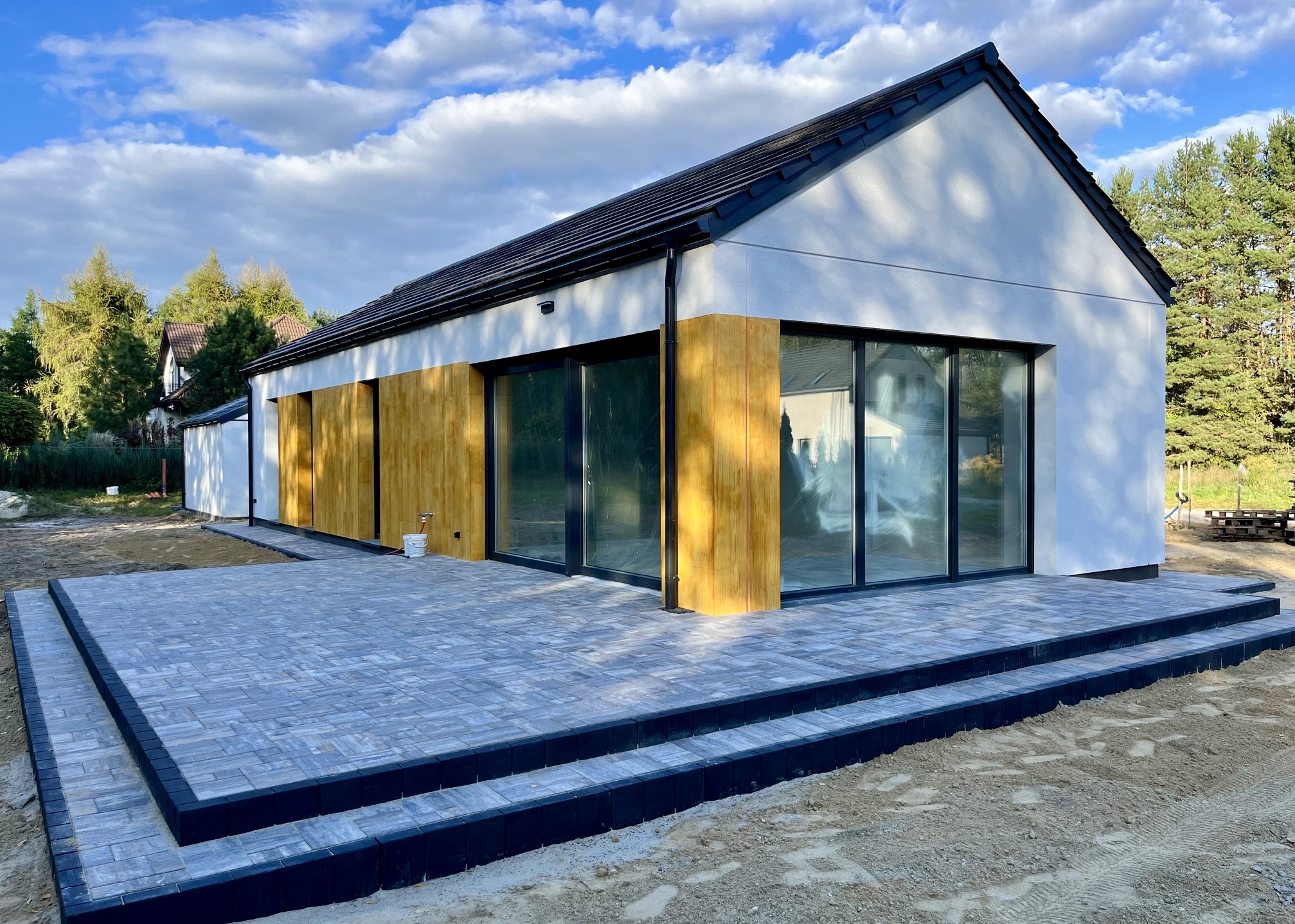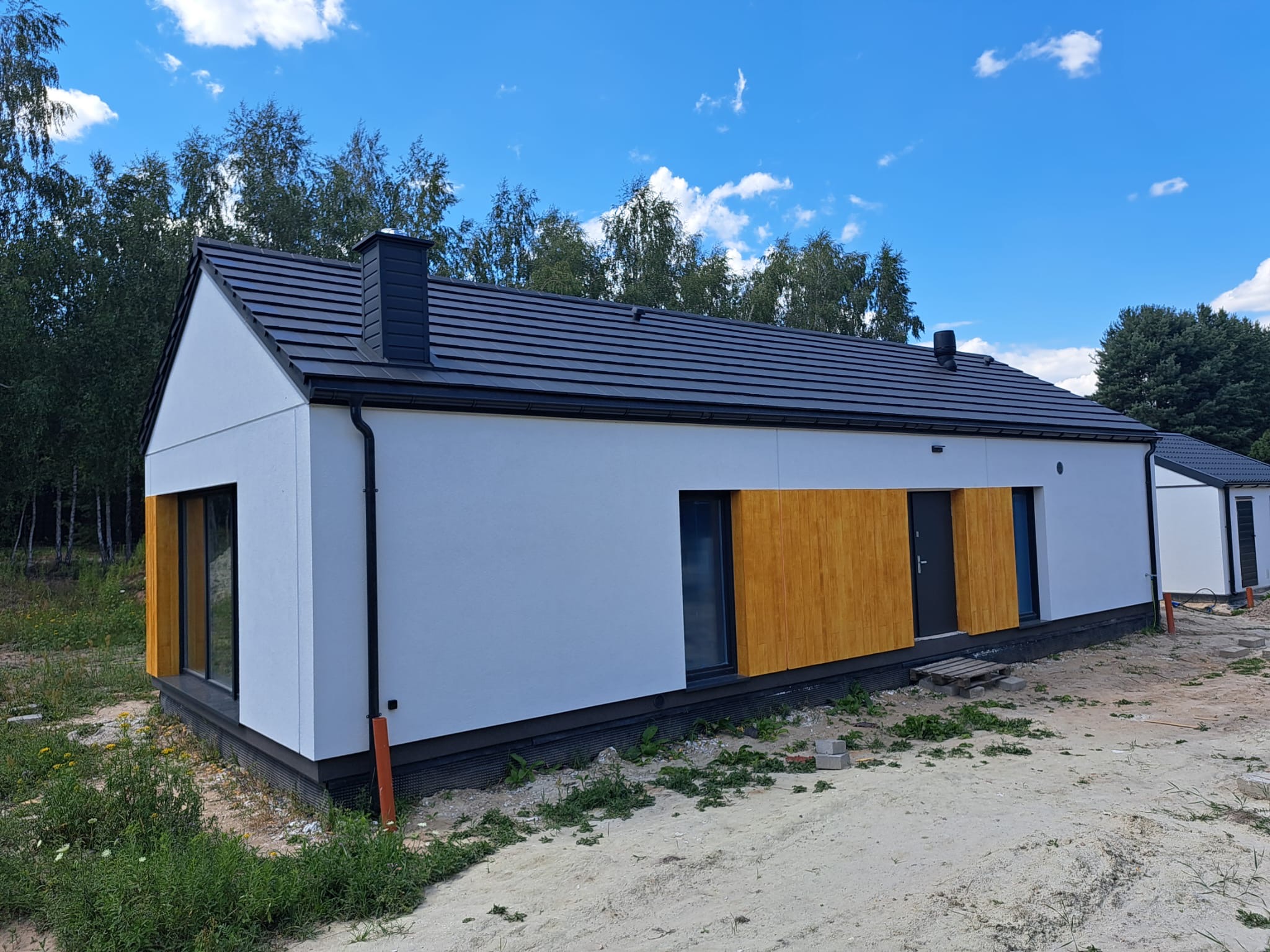 Bryła z eleganckim, dwuspadowym dachem i minimalistycznym wykończeniem idealnie wpisuje się w aktualne trendy, a jednocześnie zachowuje klasę i umiar, który nie przemija.