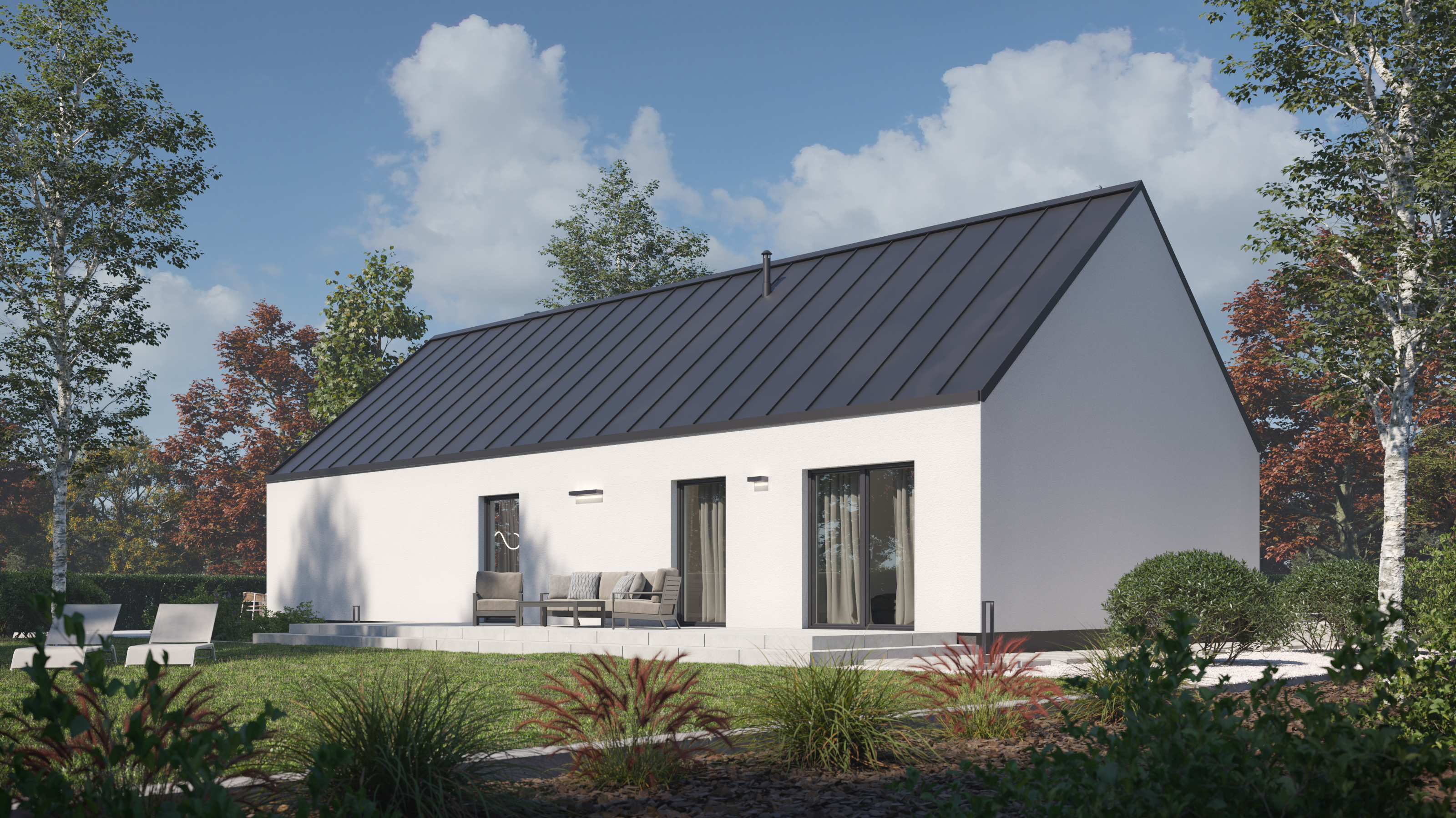 Prawdziwym wyróżnikiem tego minimalistycznego projektu jest technologia, w jakiej został zrealizowany – prefabrykacja betonowa. To rozwiązanie, które łączy nowoczesność z trwałością i energooszczędnością. Dzięki zastosowaniu wysokowytrzymałościowego betonu, budowa może zostać zrealizowana nawet w 3 miesiące – bez względu na porę roku. Prefabrykaty zapewniają również znakomitą izolację cieplną, co przekłada się na niższe koszty eksploatacji i większy komfort cieplny przez cały rok.