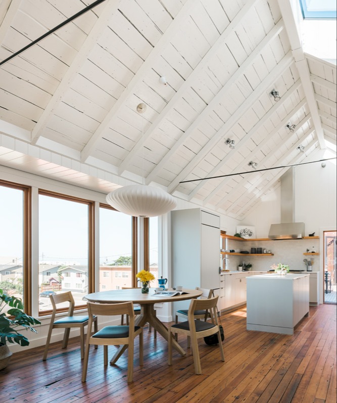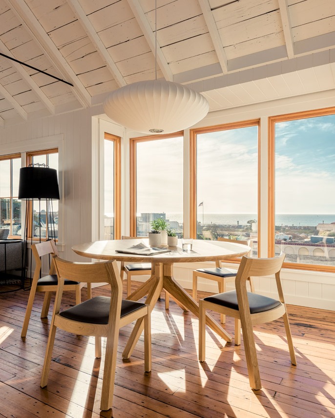 Podczas zwiedzania jednej z rezydencji w Bay Area, zaprojektowanej przez architekta Malcolma Davisa, Kevin Hale zauważył proste, czyste wykończenia i naturalne światło, ale uznał, że dom nie był odpowiedniej wielkości. Kilka lat później Kevin znalazł idealny budynek, który przez lata był pomijany. Elewacja budynku, wybielona przez słońce, pokryta była drewnianym gontem, a układ nie był remontowany od wieków. Na pochyłej działce znajdowało się również oddzielne studio, które unikało napraw przez długi czas. „Ta nieruchomość miała burzliwą historię” – mówi Davis.