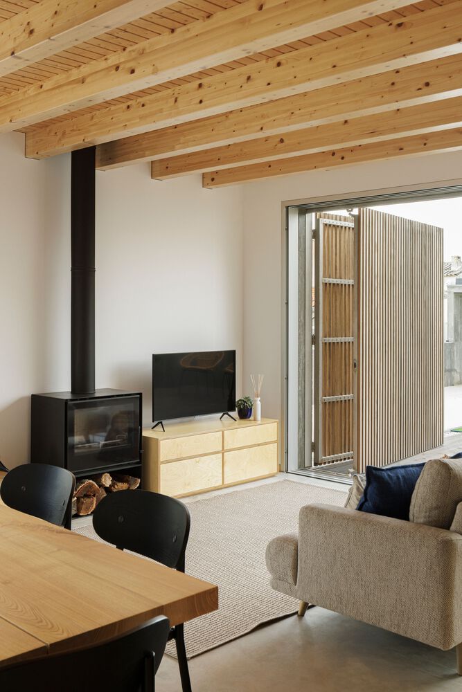 Projekt, łącząc elementy tradycyjnej architektury z nowoczesnymi rozwiązaniami, można uznać za nowoczesną stodołę, która doskonale integruje się z otoczeniem, zachowując przy tym odwołanie do historycznych form budownictwa, charakterystycznych dla portugalskiego wybrzeża.