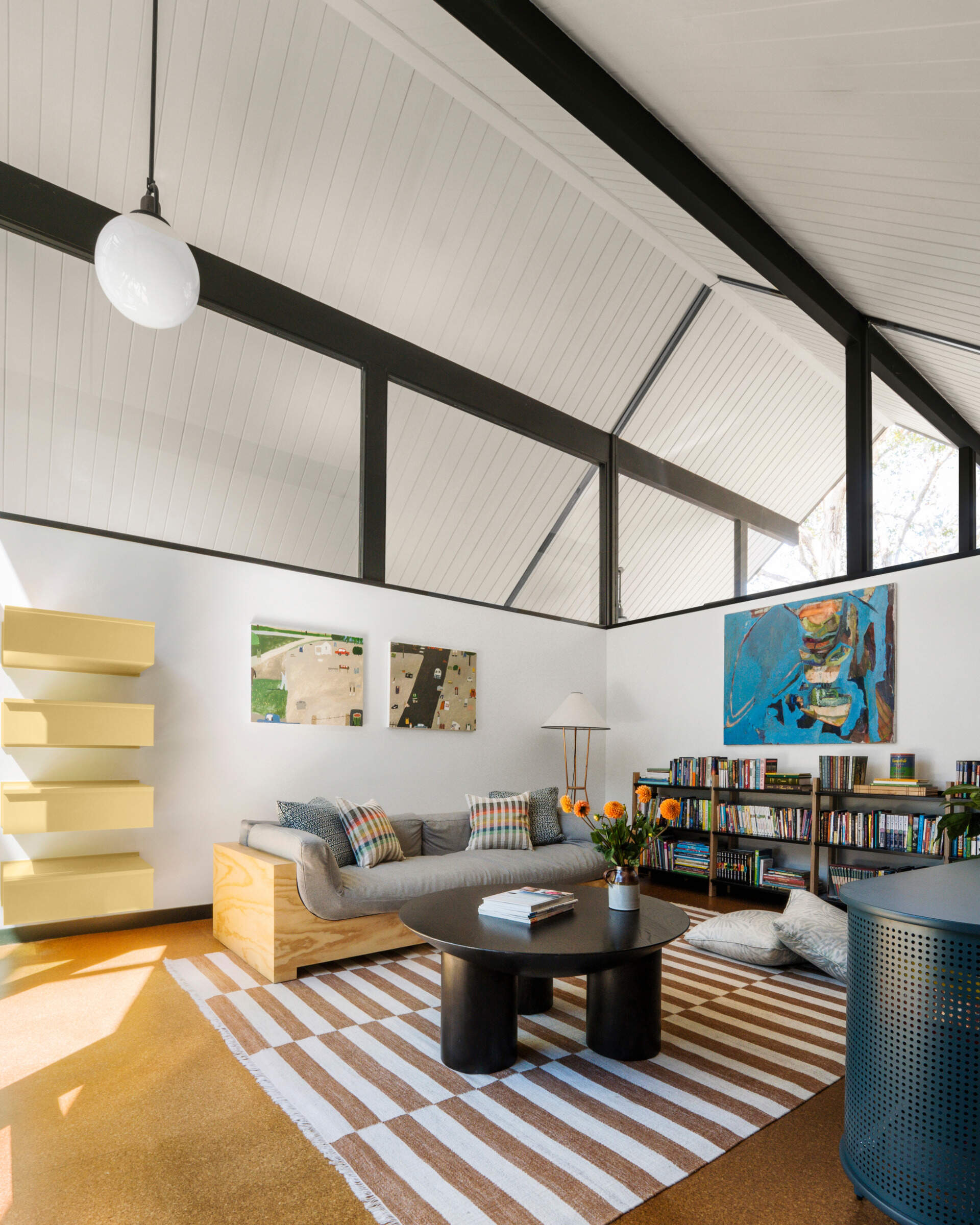 Wśród wzgórz kalifornijskiego Palo Alto, legendarny dom typu Eichler z 1971 roku zyskał nową tożsamość dzięki subtelnej renowacji autorstwa Gustave’a Carlsona. Oryginalnie zaprojektowany przez architekta Johna S. Lynda – przyjaciela samego Josepha Eichlera – budynek nosi rzadki rodowód wśród rezydencji z epoki mid-century. Obecnie stanowi przestrzeń życiową dla pary z czterema córkami oraz kolekcją dzieł współczesnych artystek.