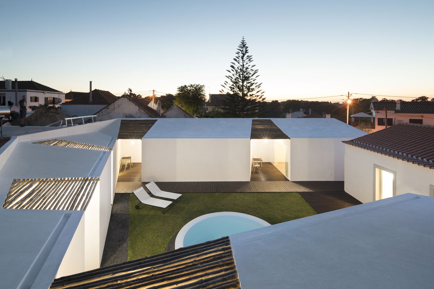 Na miejscu dawnego jednorodzinnego domu i stodoły z połowy XX wieku powstał projekt, który zachowuje historyczną tożsamość zabudowań, szczególnie głównego domu i patio. Nowoczesna stodoła i przybudówka tworzą granice działki, a minimalistyczne, abstrakcyjne elementy architektury zostały tak rozmieszczone, by zachować prywatność mieszkańców. W głównym budynku zaplanowano przestrzenie wspólne, a centralnym punktem jest patio od strony południowej, w którym zastosowano typowe elementy śródziemnomorskiej architektury, takie jak studnia i zacienione miejsca sprzyjające relaksowi i integracji.
