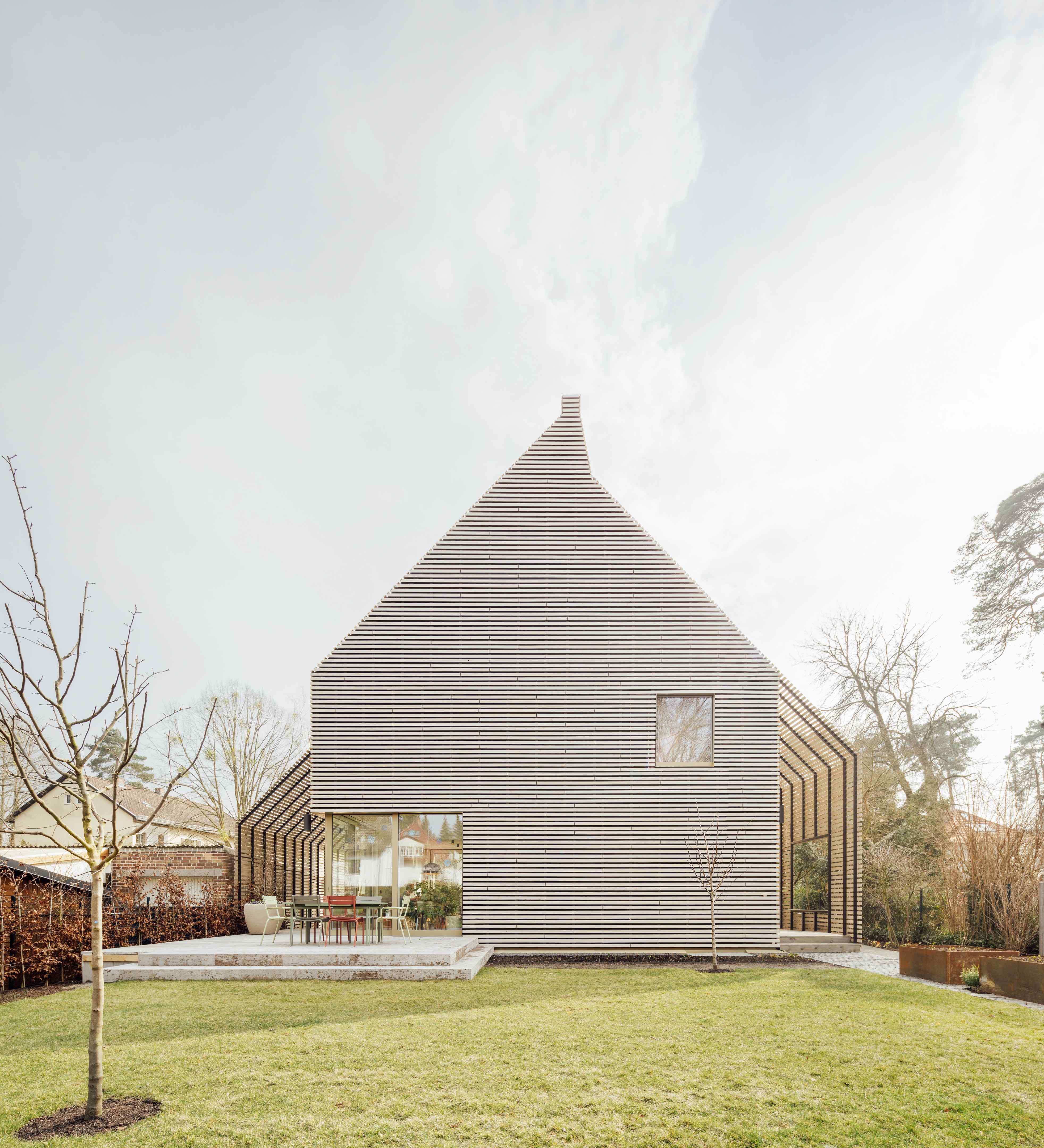 W spokojnej, zielonej dzielnicy Berlin-Nikolassee pracownia rundzwei Architekten BDA stworzyła drewnianą willę, która w subtelny sposób reinterpretuję archetyp klasycznego domu z dwuspadowym dachem. Choć bryła pozostaje wierna tradycyjnemu kształtowi, architekci przekształcili ją w nowoczesny, spójny obiekt o jednorodnej, filigranowej powłoce z jasnej jodły srebrzystej. Ta delikatna drewniana osłona oplata zarówno elewacje, jak i połacie dachu, dając wrażenie architektonicznej jedności.