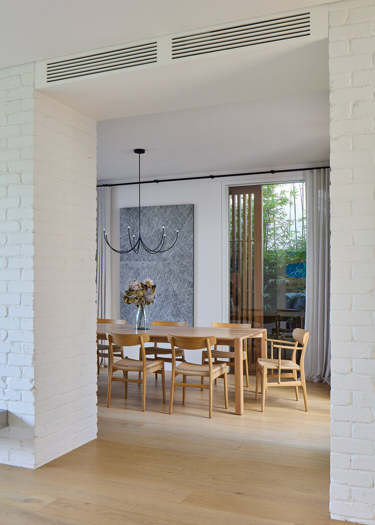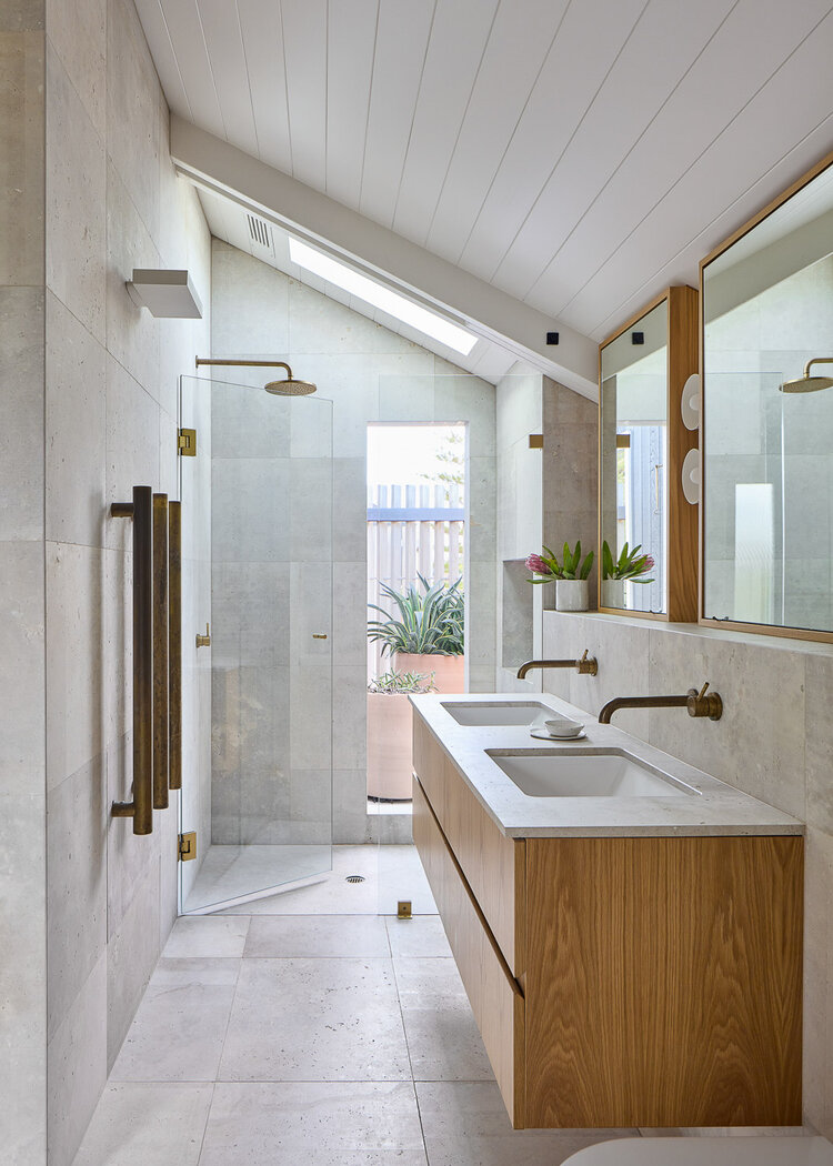 Właściciele zakochali się w charakterystycznej dwuspadowej formie i wyrazistej strukturze Barn House, dlatego poprosili Claytona Orszaczky’ego, we współpracy z Alwill Interiors i Dangar Barin Smith, o stworzenie ich własnego domu w Cottesloe. „Największym wyzwaniem było wpuszczenie światła od północy i połączenie domu z ogrodem” – wyjaśnia Michelle Orszaczky. Projekt stał się okazją, by rozwinąć wcześniejsze pomysły w nowym miejscu i warunkach klimatycznych.
