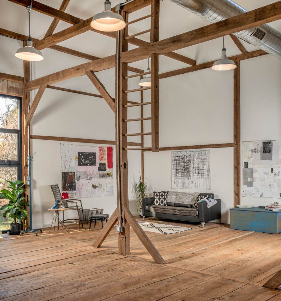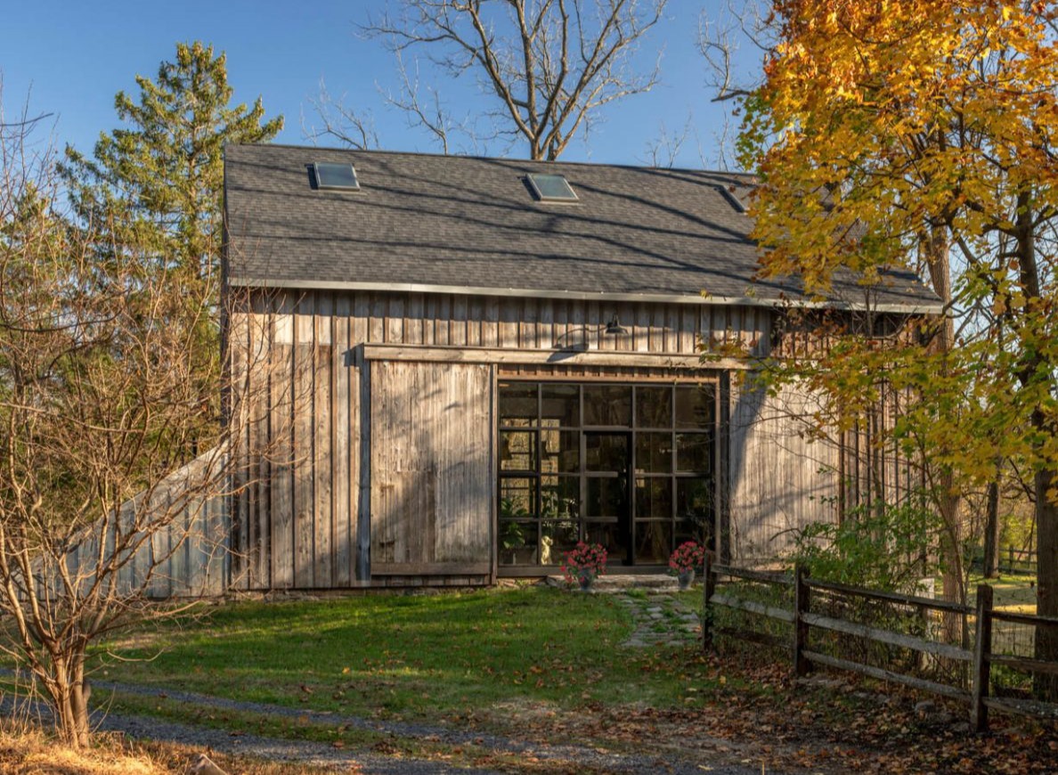 Ten zabytkowy budynek, pierwotnie wzniesiony w XVIII wieku, przez dziesięciolecia służył jako tradycyjna stodoła, a dziś – dzięki starannej renowacji zaprojektowanej przez architekta Anthony’ego Miksitza – zyskał nowe życie jako studio artysty. Przekształcenie przestrzeni odbyło się z szacunkiem dla jej historycznego charakteru, nadając jej jednocześnie cechy, jakie definiują nowoczesną stodołę: przestrzeń, światło i funkcjonalność.