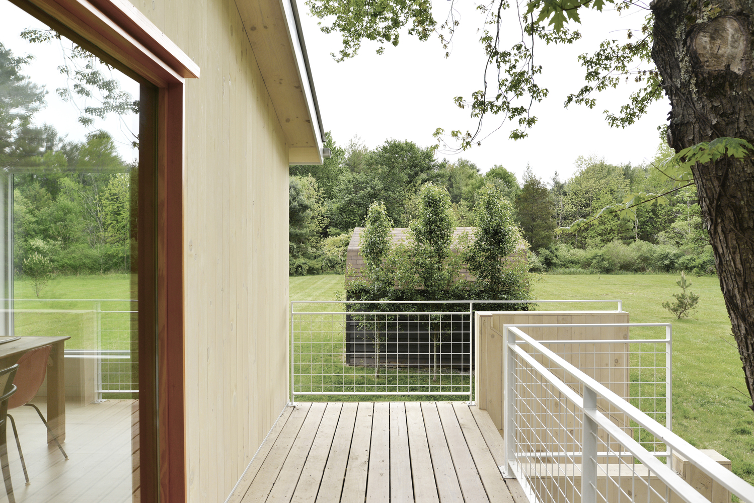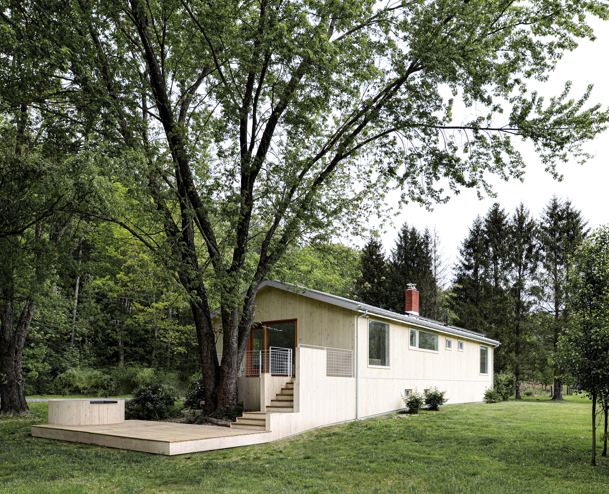 Pine Lane House to przykład, jak nowoczesna stodoła może powstać poprzez renowację istniejącego budynku z lat 80. Projekt objął kompleksową przebudowę – od nowego dachu, przez drewnianą elewację, po taras integrujący dom z otaczającą naturą. Powiększenie domu o 28 m², dodanie nowoczesnych systemów mechanicznych i staranne dopasowanie nowych okien do istniejących sprawiły, że przestrzeń zyskała świeżość, światło i funkcjonalność.