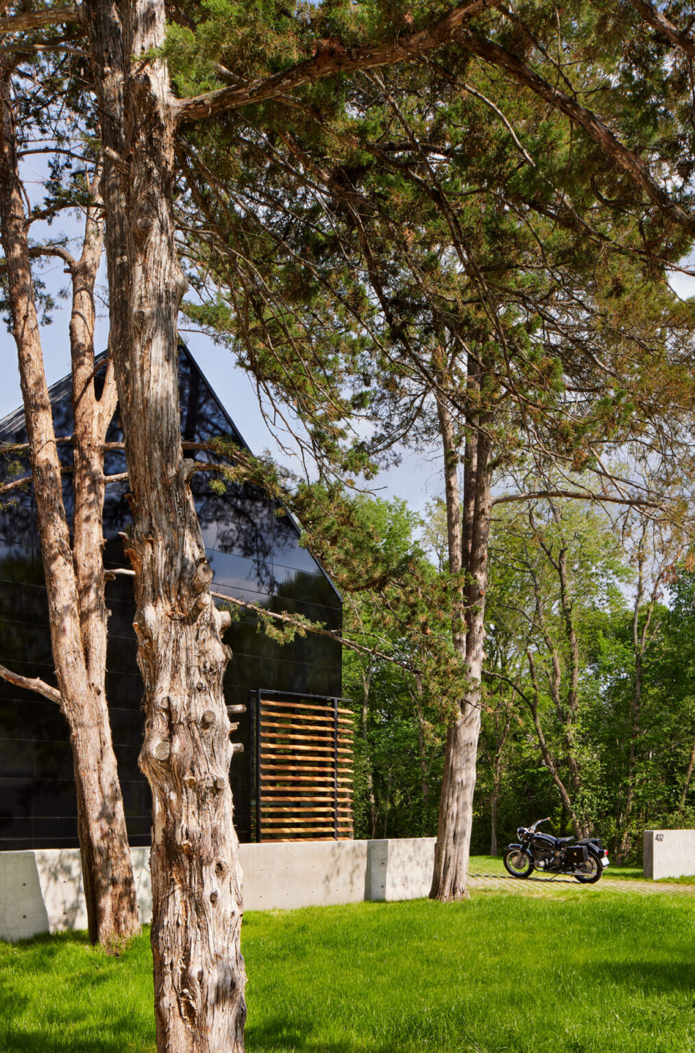 Dom jest jednocześnie powściągliwy i wyrazisty: klarowna geometria, racjonalny plan i precyzyjna praca światła tworzą przestrzeń otwartą, ale pełną intymnych kadrów. To współczesne, wiejskie schronienie w granicach miasta – zaprojektowane, by żyć blisko natury i codziennie korzystać z jej energii.