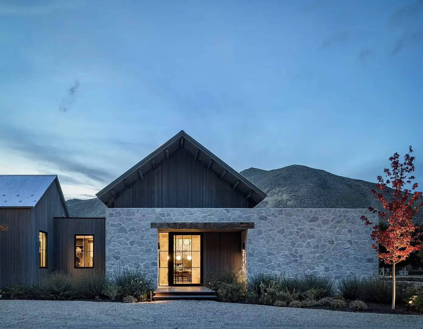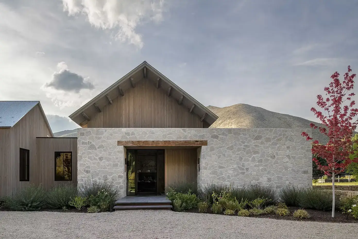 Położony w malowniczej Sun Valley, Pioneer Ranch to niezwykłe osiągnięcie Farmer Payne Architects. Zaprojektowana w 2023 roku rezydencja uosabia idealną harmonię rustykalnego uroku i współczesnej elegancji. Elewacja, ozdobiona drewnem i dużymi kamiennymi fugami, emanuje ciepłym klimatem.