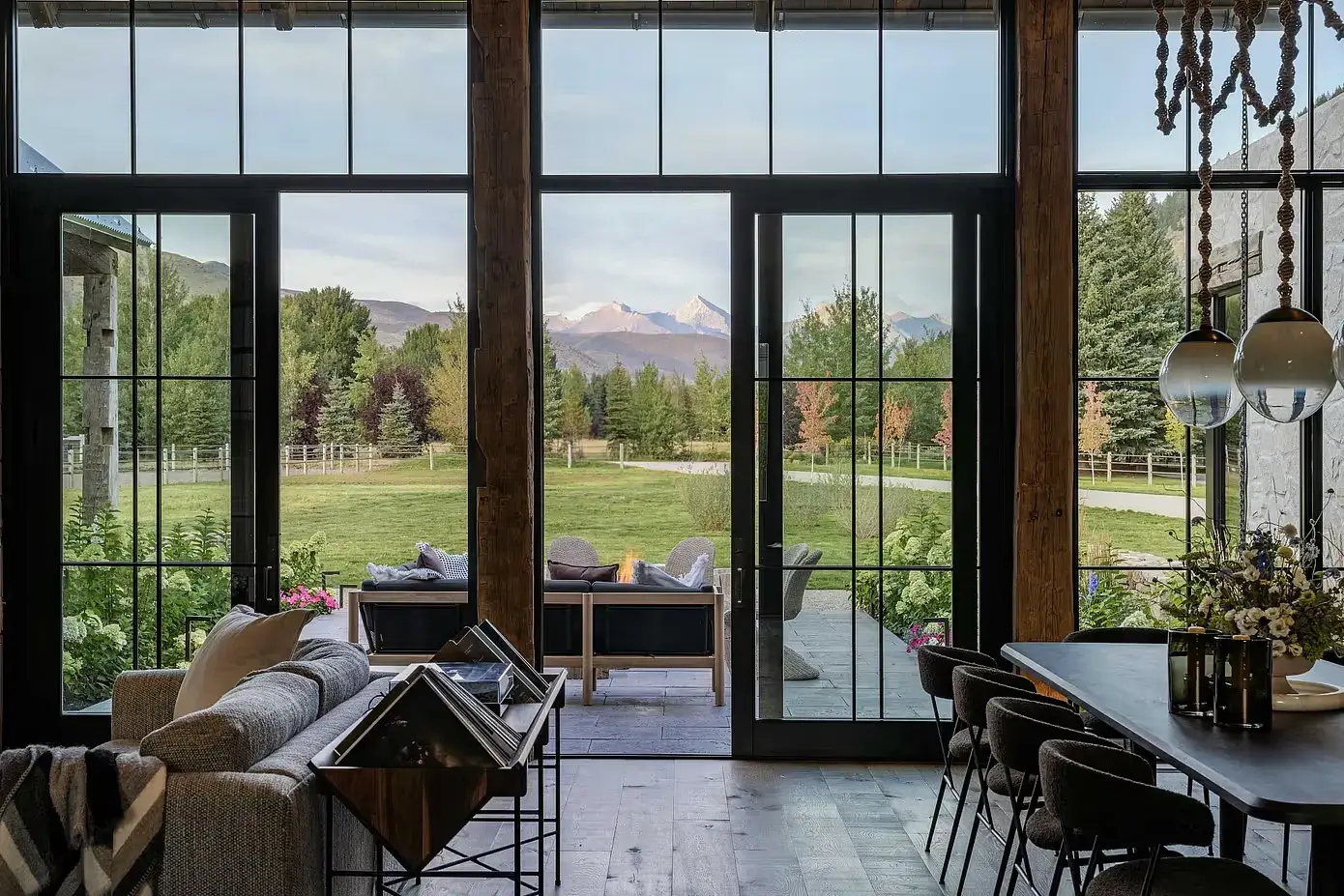 Wchodząc do domu, goście są witani rozległymi widokami na Góry Pioneer. Otwarta koncepcja pozwala na zalanie salonu naturalnym światłem, tworząc jasną i przestronną atmosferę. W salonie znajduje się oszałamiający kamienny kominek, który stanowi centralny punkt przytulnej przestrzeni spotkań. Pluszowe, wygodne meble zachęcają do relaksu, gdy chłoniesz malownicze otoczenie przez duże okna.