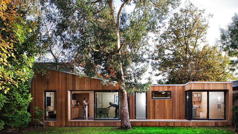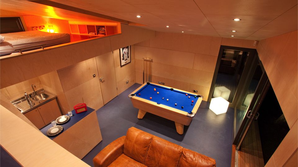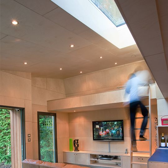 Architekci wspominają, że klient oczekiwał od nich czegoś więcej niż zwykłego budynku w ogrodzie – chciał nowoczesnej stodoły, która łączyłaby funkcję prywatnego studia, przestrzeni dla gości z aneksem kuchennym oraz miejsce dla dzieci, a jednocześnie posiadała zamknięty parking na luksusowy samochód. Wyzwanie dodatkowo zwiększały ograniczenia związane z ochroną rosnących na działce drzew. Po ulokowaniu zamkniętego parkingu w tylnej części budynku, architekci rozpoczęli projektowanie przestrzeni biurowej i pokojów gościnnych, które znalazły się na przeciwnych końcach domu, co zapewniło prywatność i komfort użytkowania.