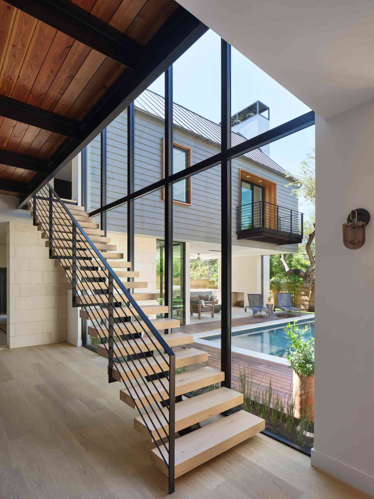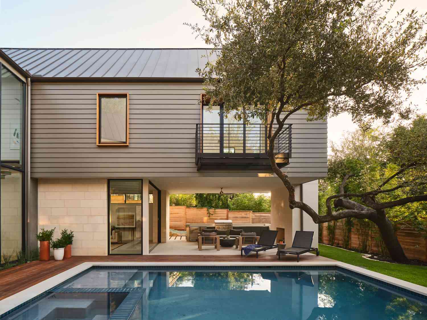 Hartford Residence to wyjątkowa, nowoczesna rezydencja położona w sercu Austin, w historycznej dzielnicy Clarksville. Dzięki wizji właściciela oraz pracy pracowni Clayton Korte, powstał dom, który harmonijnie łączy nowoczesny styl życia z naturalnym otoczeniem. Rezydencja o powierzchni 492 m² została perfekcyjnie wkomponowana w stromo nachyloną, zieloną działkę, co pozwala w pełni wykorzystać naturalne światło i widoki. Płynne, przestronne wnętrza prowadzą domowników oraz gości przez kolejne pomieszczenia, tworząc poczucie ciągłego odkrywania. Z pozoru parterowy dom kryje pod sobą rozbudowaną, wielopoziomową strukturę – z sypialniami i przestrzeniami dziennymi ulokowanymi na niższym poziomie.