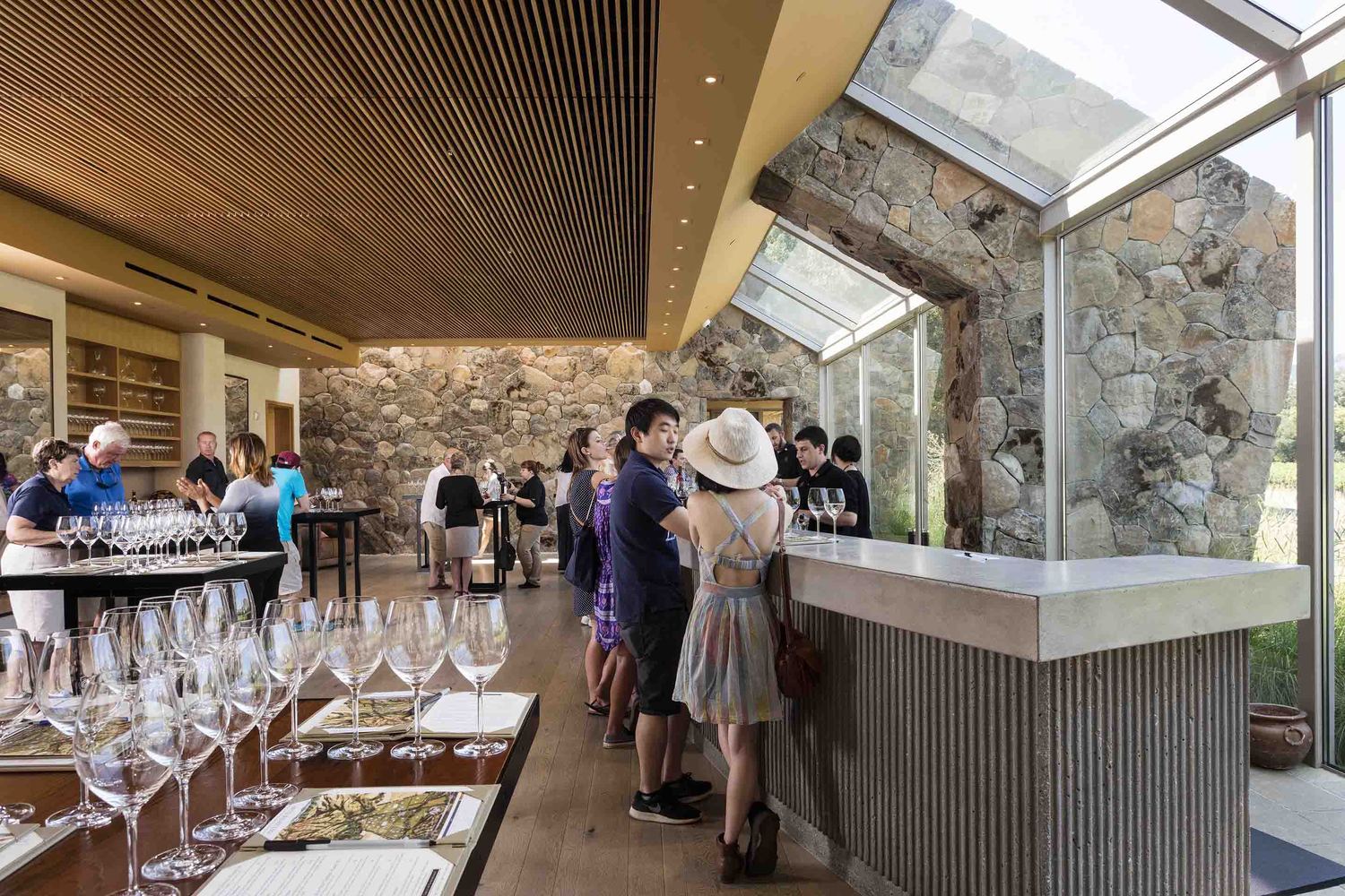 Budynek zlokalizowany w hrabstwie Napa w Kalifornii, w pobliżu charakterystycznej Arkady – pierwszego projektu BC Estudio Architects dla tej winnicy – stanowi centralny punkt całego założenia. Architektura obiektu została zaprojektowana tak, aby prowadzić gości przez serię starannie zaplanowanych przestrzeni, które stopniowo wprowadzają w świat wina, degustacji i krajobrazu winnic. Po przekroczeniu dużych, masywnych drzwi wchodzimy do reprezentacyjnego lobby, z którego można obserwować codzienne życie winnicy oraz różne procesy związane z produkcją i degustacją wina. W głębi znajdują się kameralne sale degustacyjne, przestrzenie do spotkań prywatnych i grupowych oraz zaplecze techniczne niezbędne do organizacji wydarzeń i eventów enoturystycznych.