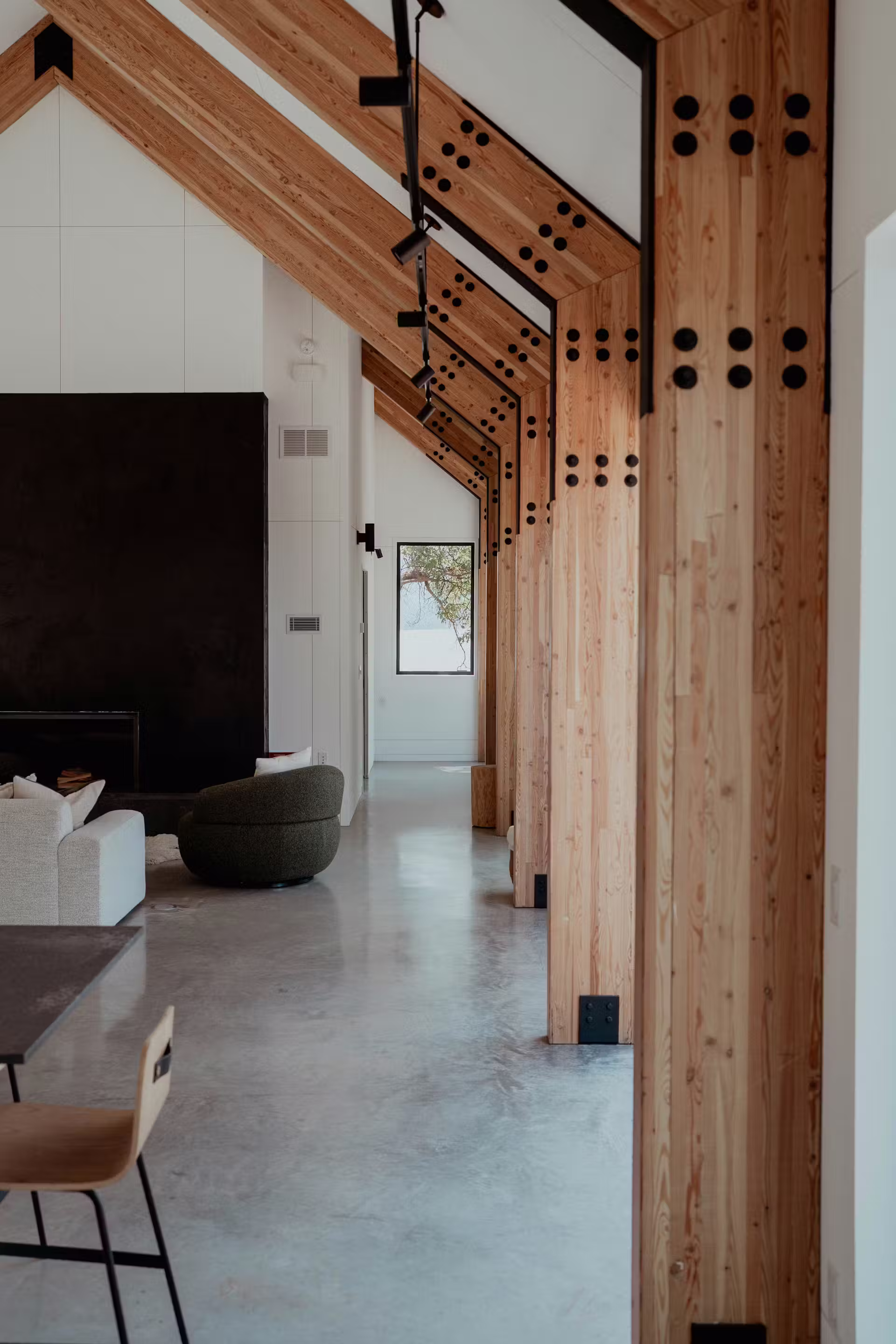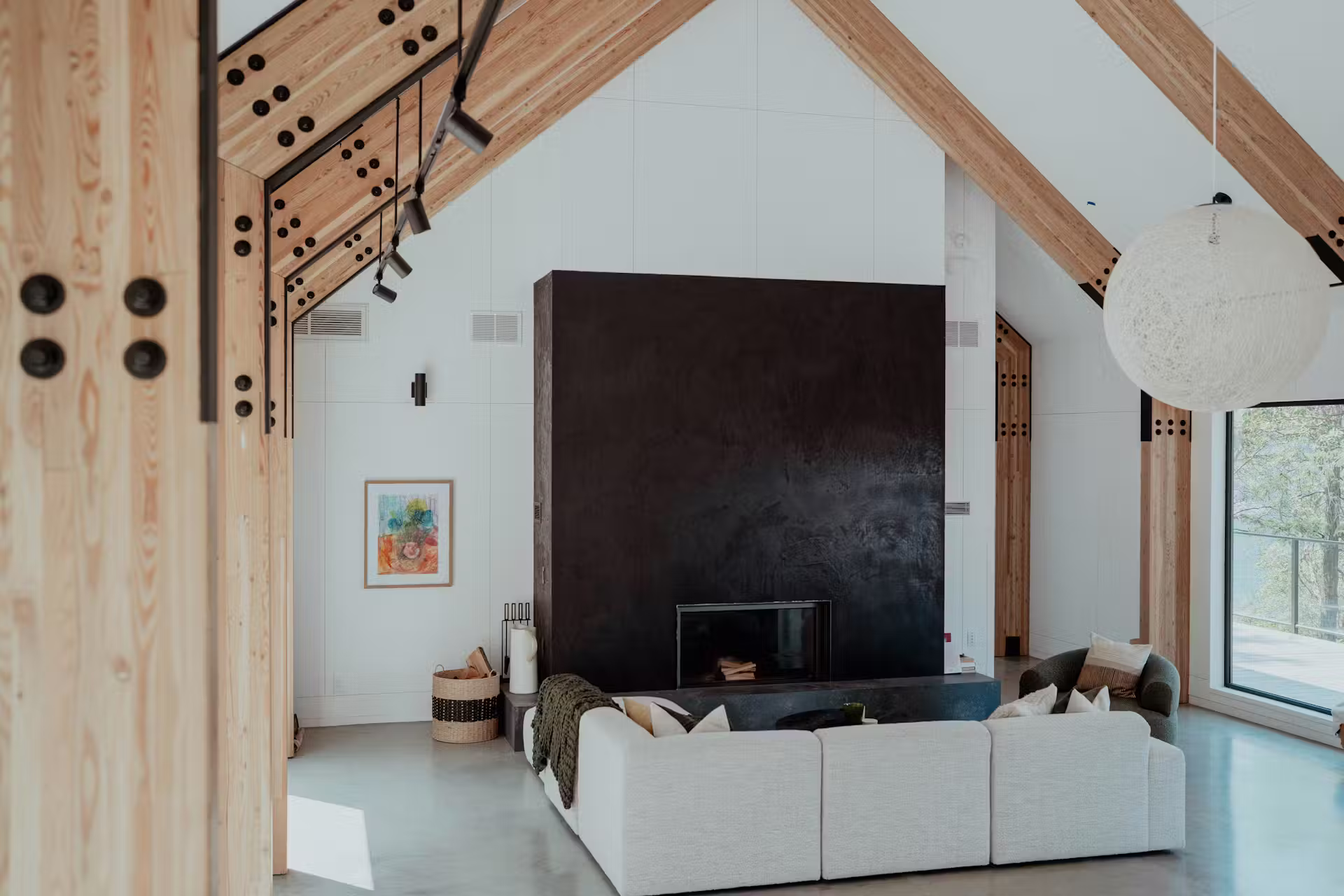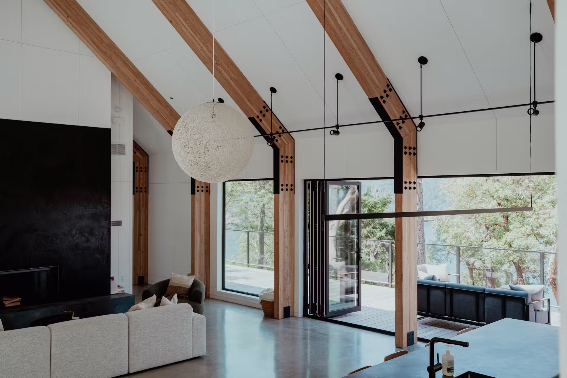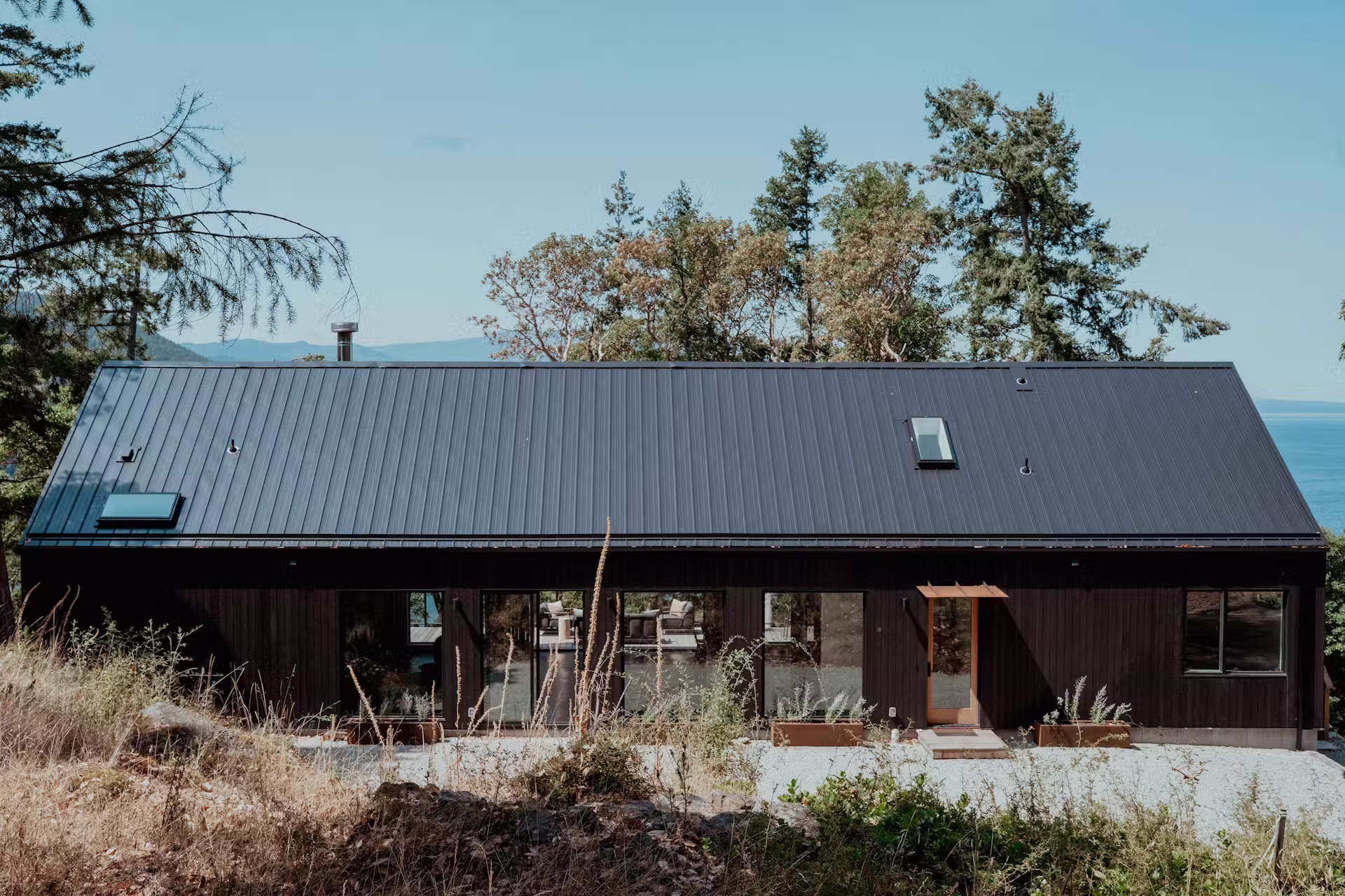 Jednym z najbardziej reprezentatywnych projektów Blend Projects jest Rancher 9 — przestronny, prefabrykowany dom o powierzchni 1700 stóp kwadratowych, który w najnowszej realizacji stanął na wyspie Salt Spring Island. Budynek zachwyca spokojną, horyzontalną formą, eleganckim dachem z blachy na rąbek oraz elewacją z postarzanego cedru. Duże przeszklenia otwierają się na lasy i wzgórza otaczające działkę, tworząc bliski kontakt z krajobrazem.