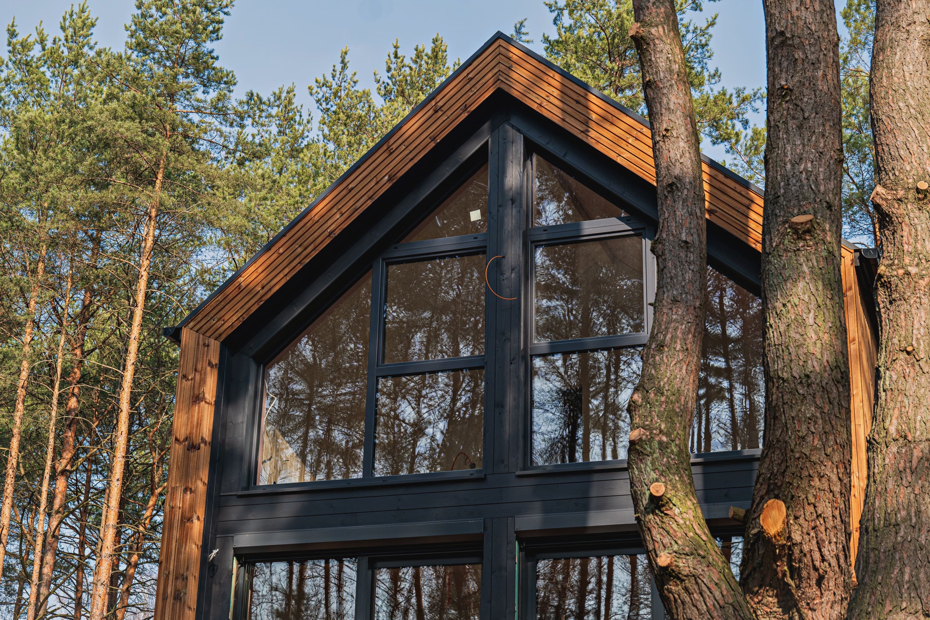 Bryła Prime House 110 to czysta linia dachu, duże przeszklenia oraz oszczędna estetyka elewacji, które doskonale wpisują się w aktualne trendy architektoniczne. Dom jest w całości prefabrykowany, co oznacza nie tylko szybki montaż, ale także precyzję wykonania, trwałość i świetne parametry cieplne.