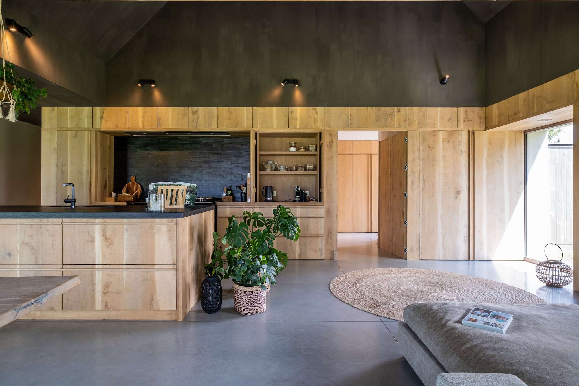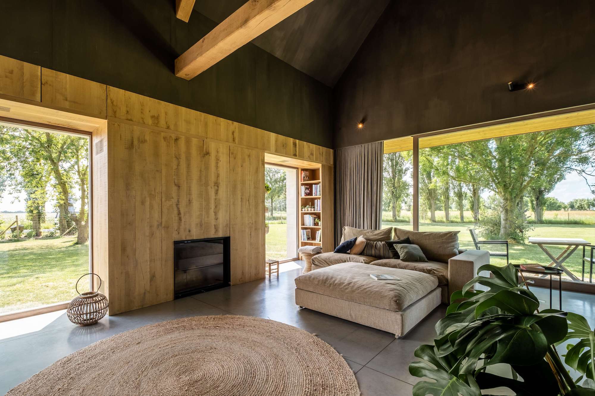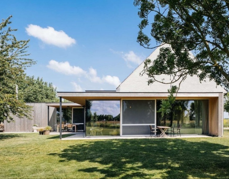 Projekt 634 autorstwa belgijskiej pracowni PVL Architecten to nowoczesna stodoła, która łączy tradycyjne formy z innowacyjnymi rozwiązaniami architektonicznymi. Bryła domu, mimo swojej prostoty, kryje w sobie architektoniczną finezję i doskonałą harmonię z otaczającym krajobrazem. Drewno i szkło stanowią kluczowe materiały, które definiują estetykę budynku, tworząc spójną całość, w której nowoczesne akcenty łączą się z klasycznym charakterem wiejskiej architektury.