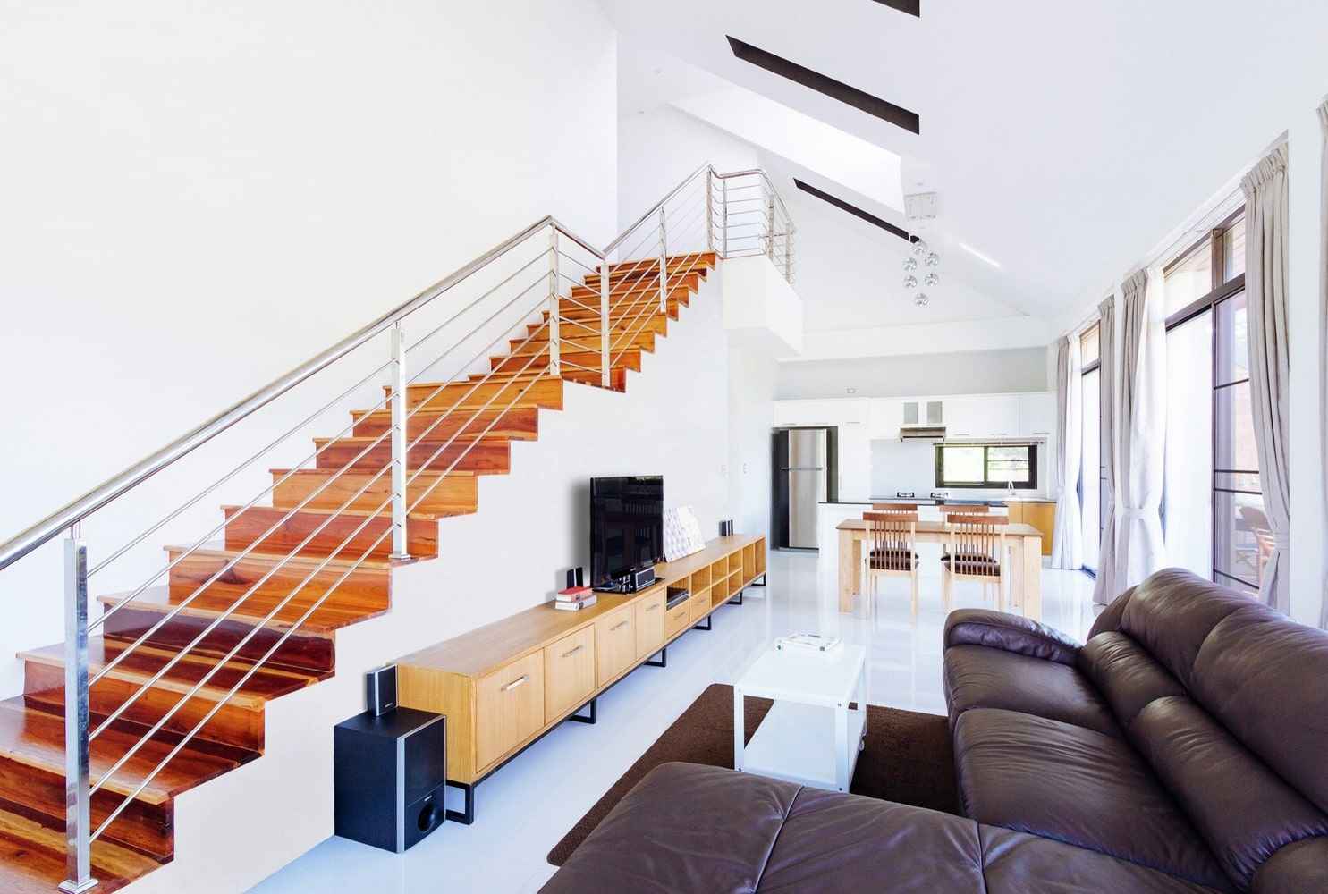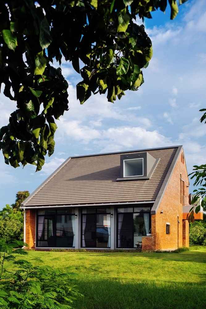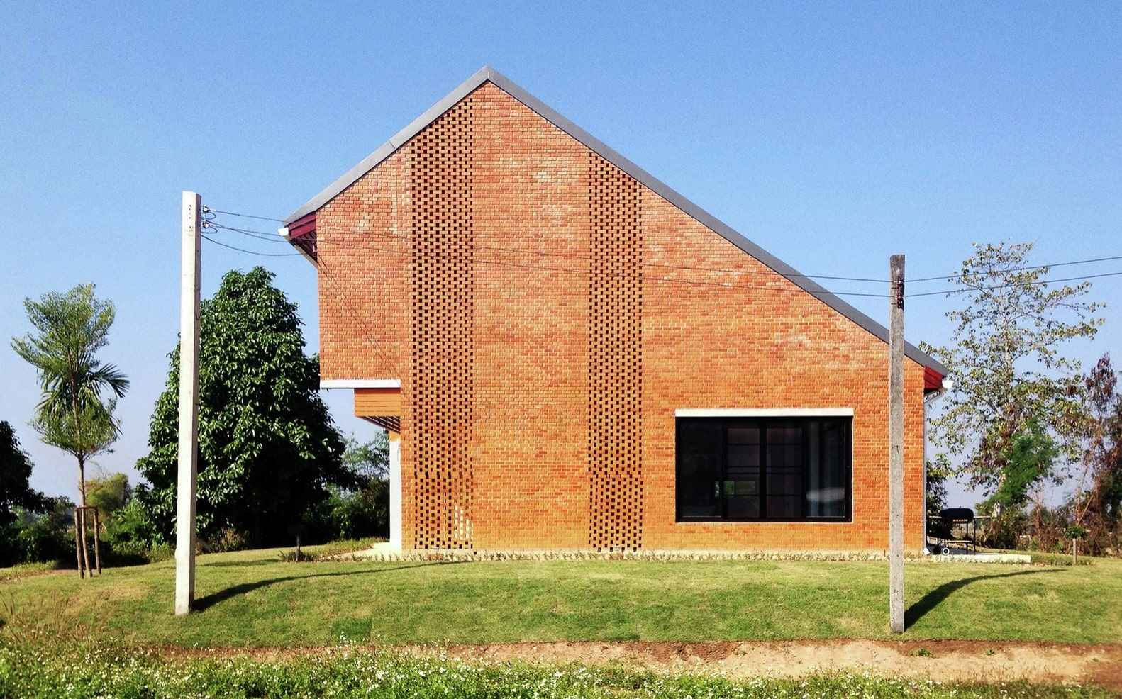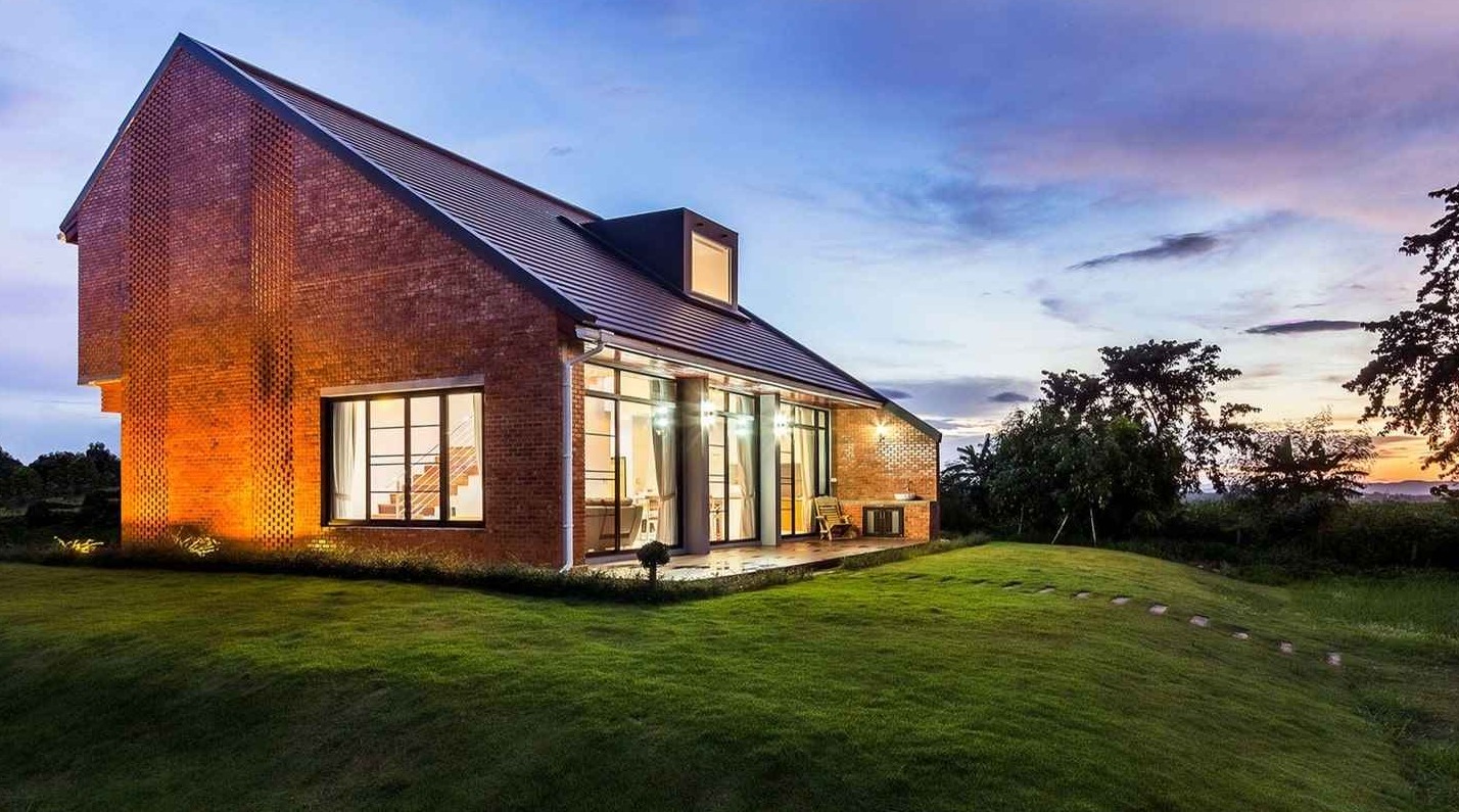 W warstwie wizualnej budynek wyróżnia się elewacją z lokalnej cegły, materiału naturalnego i łatwo dostępnego, który doskonale sprawdza się w tropikalnym klimacie. Cegły ułożono w sposób umożliwiający swobodny przepływ powietrza, co tworzy efekt wentylowanej fasady i chroni wnętrze przed nadmiernym słońcem. Dzięki temu dom zachowuje przyjemny mikroklimat przez cały rok. Połączenie tradycyjnych materiałów, prostych form i otwartej przestrzeni sprawia, że ten dom z cegły jest współczesną interpretacją nowoczesnej stodoły – oszczędnej, ekologicznej i pełnej światła.