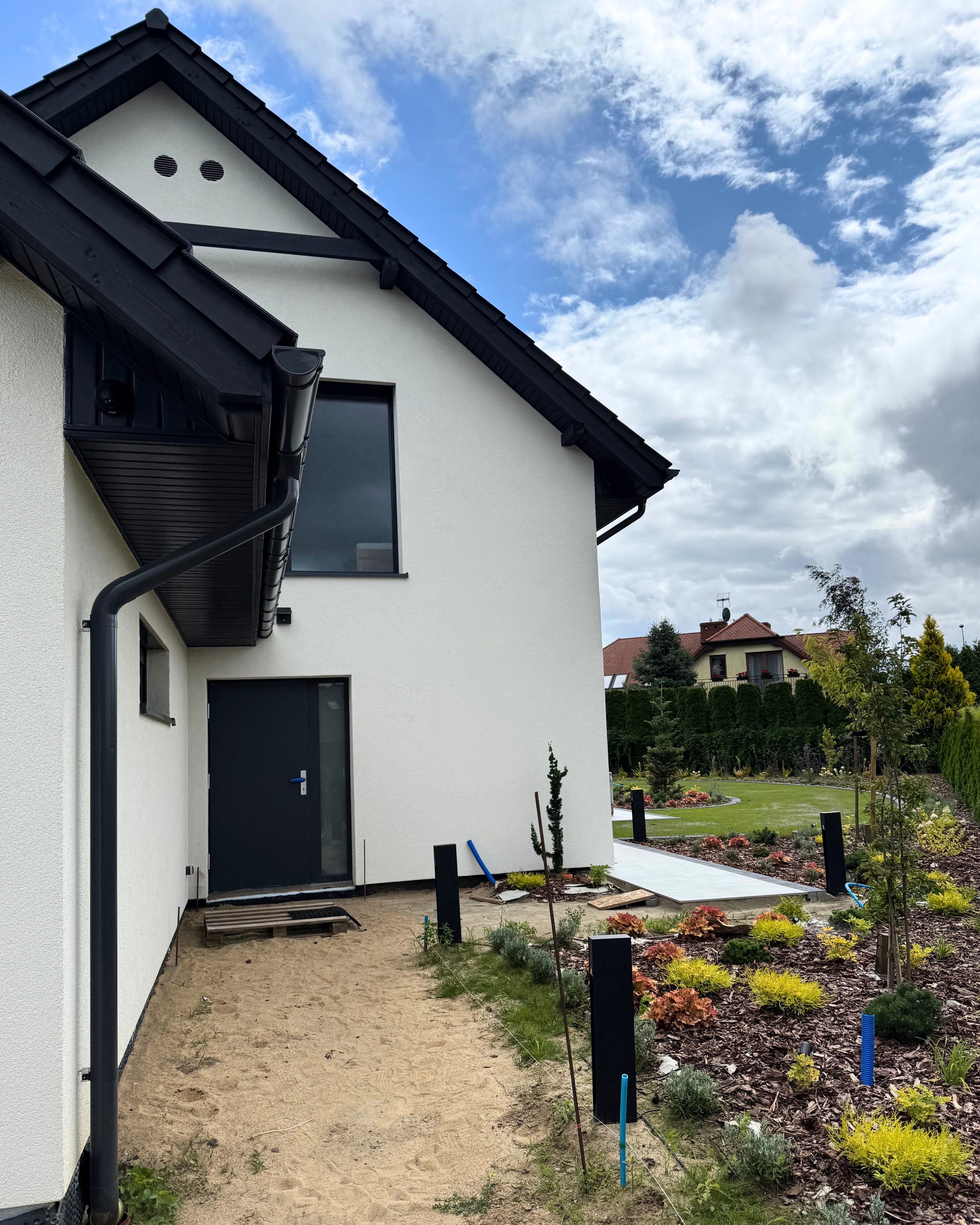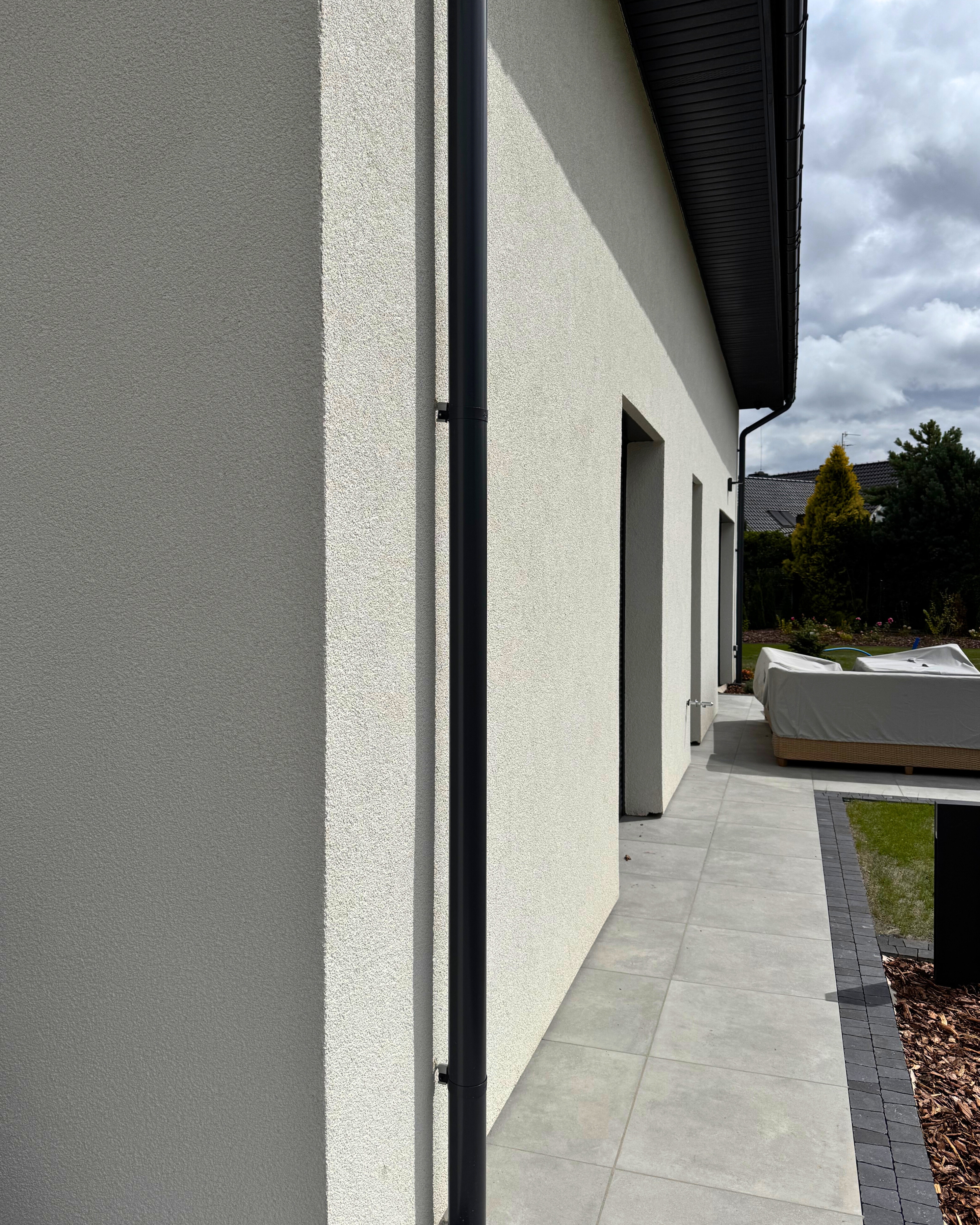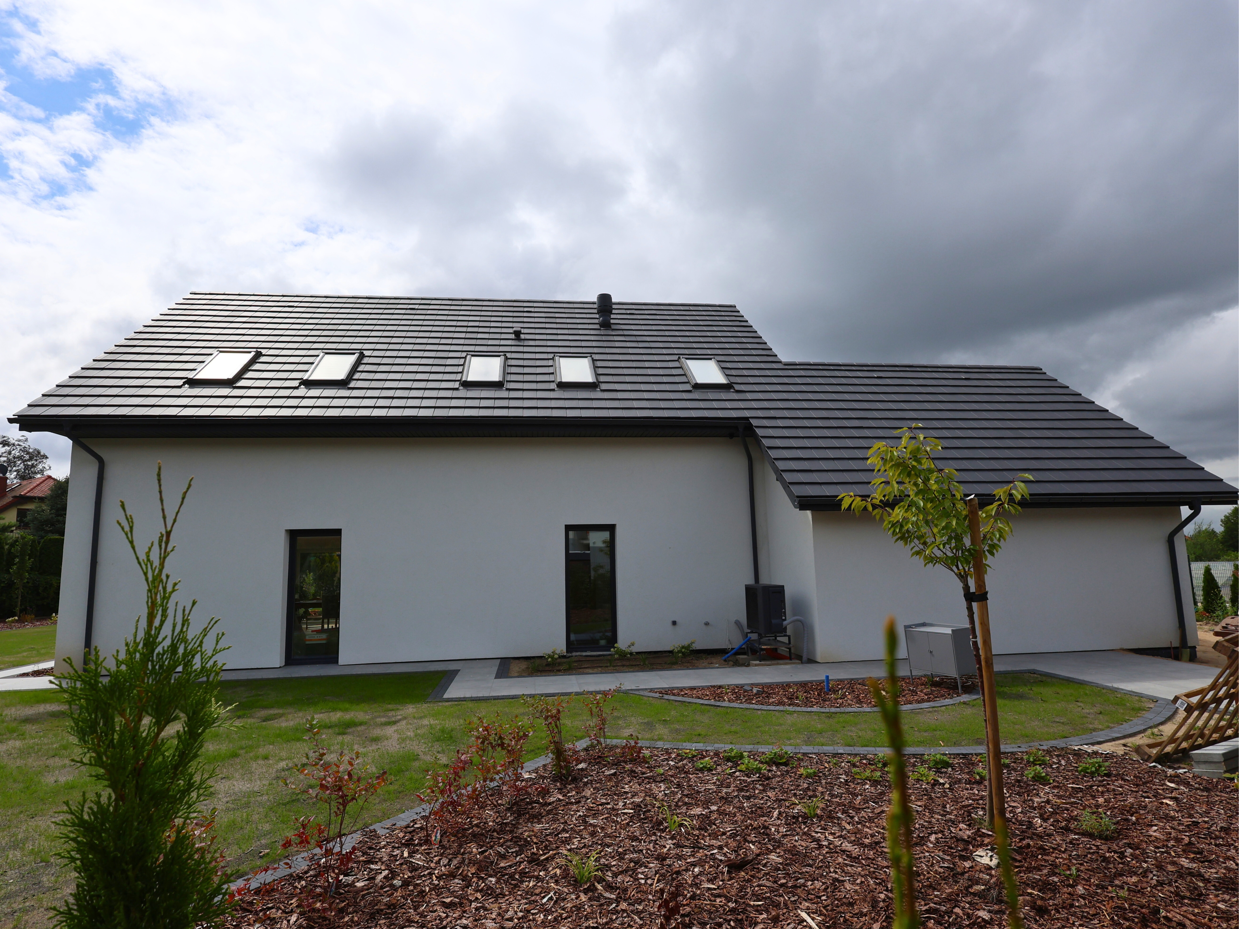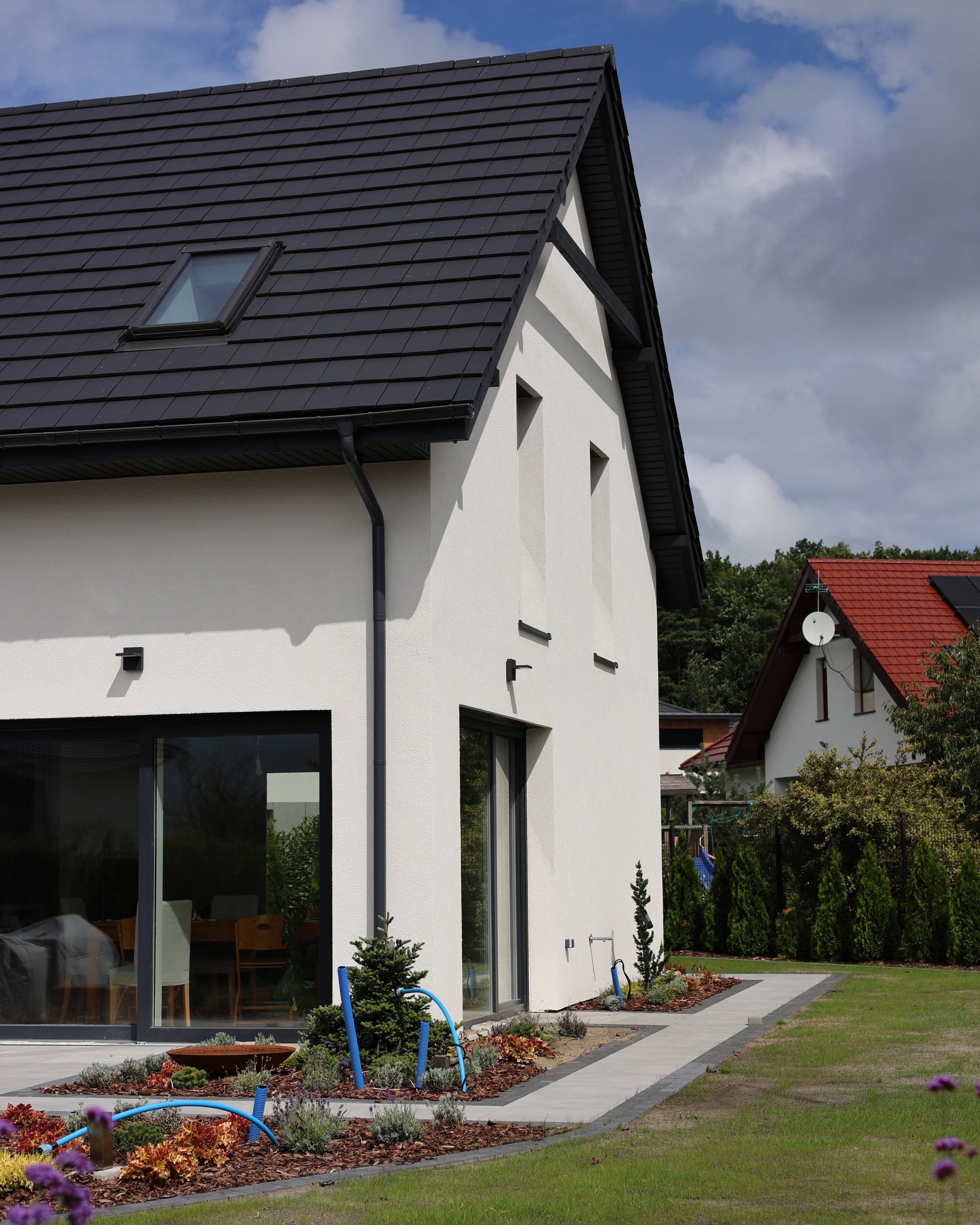 Uniwersalna bryła budynku umożliwia liczne modyfikacje – zarówno w zakresie wykończenia elewacji, jak i wyboru dachu – co pozwala dopasować projekt do indywidualnych potrzeb inwestora.