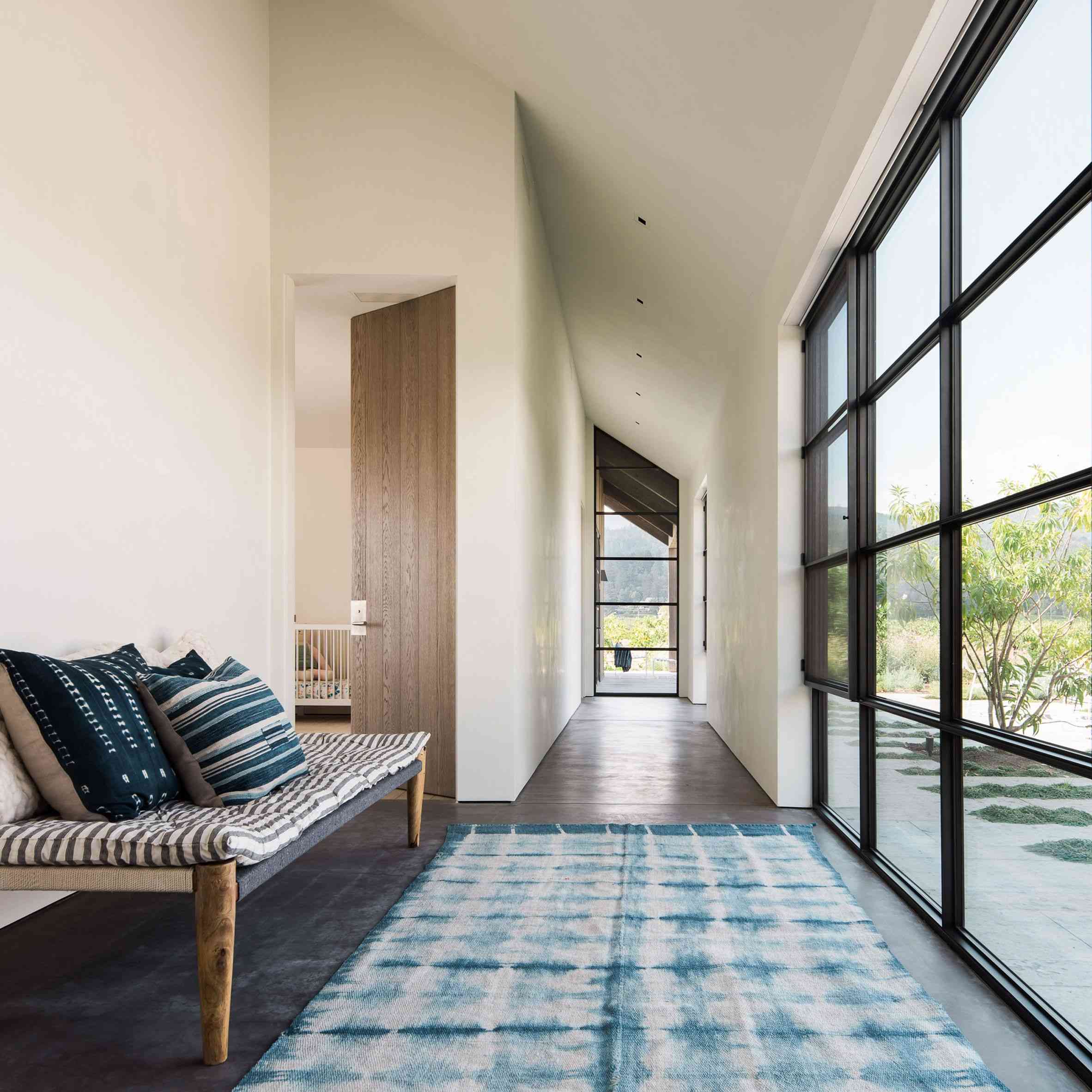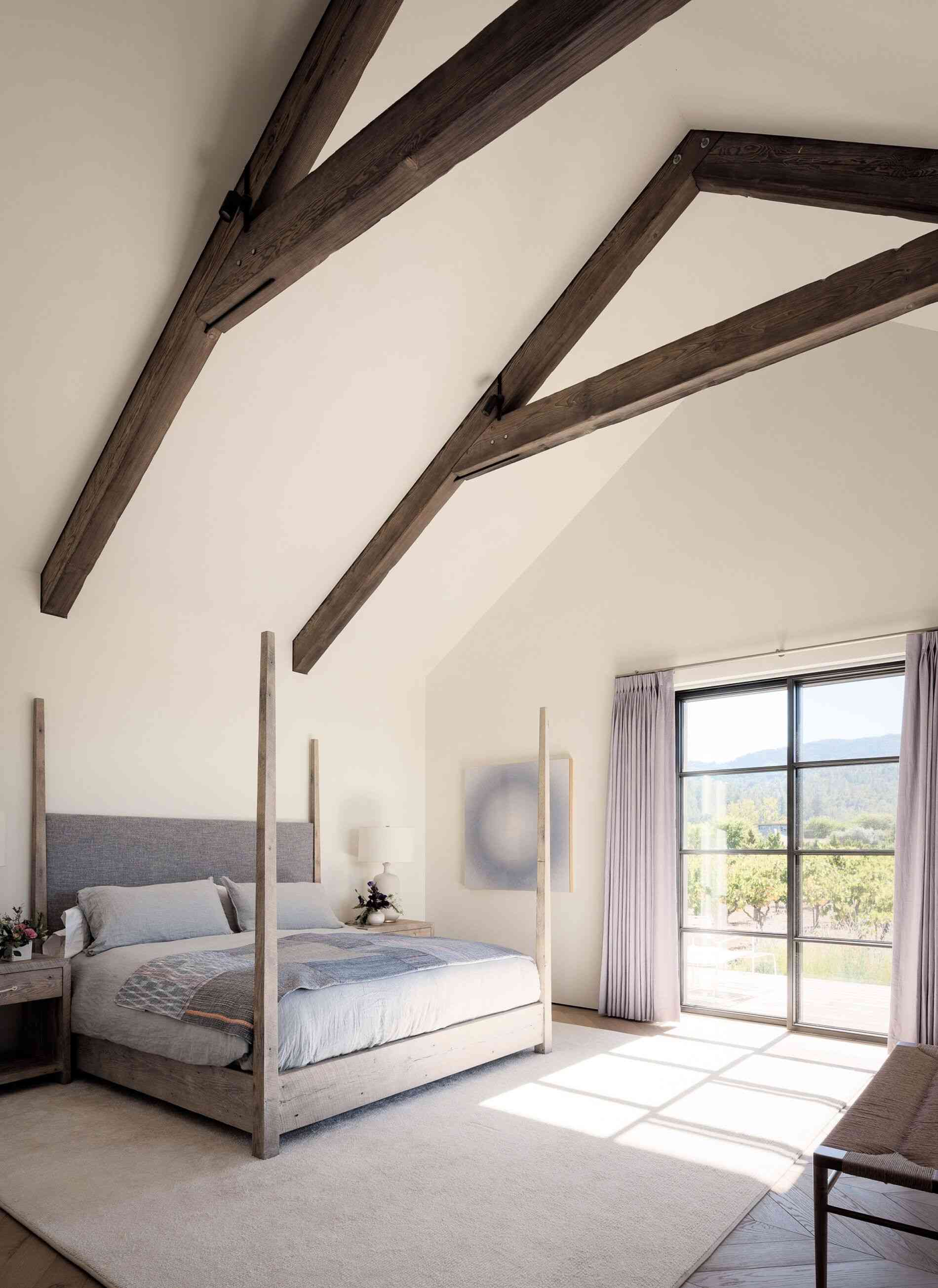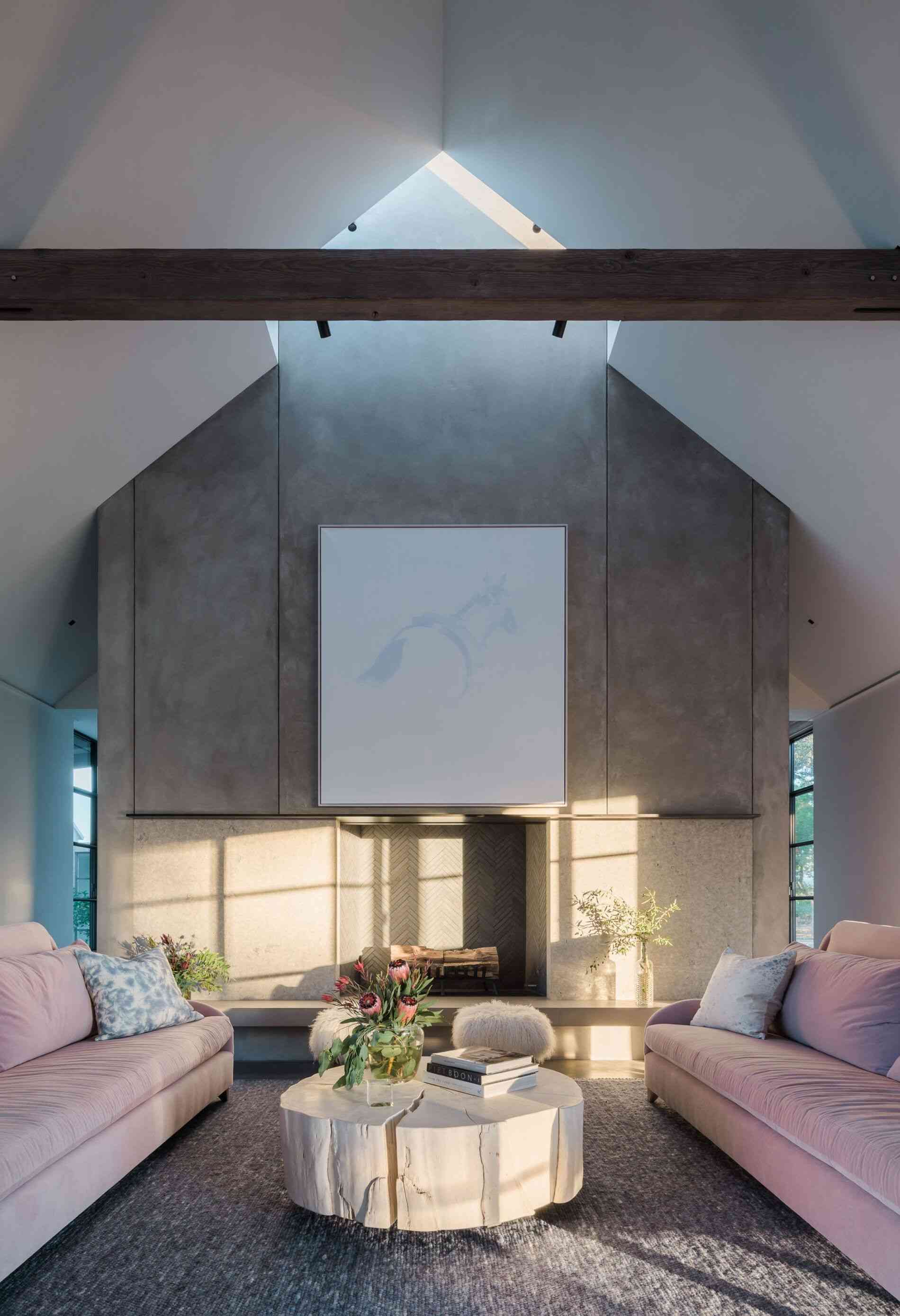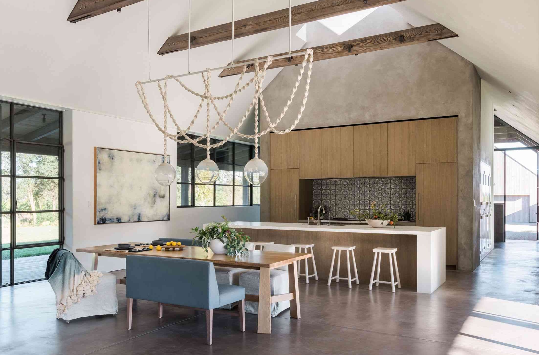 Wnętrze Zinfandel House to połączenie nowoczesnego designu i naturalnego ciepła. Przestronna strefa dzienna znajduje się w centralnej części domu, natomiast sypialnie rozmieszczono w bocznych skrzydłach. Duże przeszklenia i szklane drzwi otwierają dom na dziedziniec i okoliczne winnice, pozwalając światłu swobodnie przenikać przez wnętrza. Subtelne wykończenia – gipsowane ściany, beton, drewno i ręcznie tkane tekstylia – tworzą przytulną atmosferę, w której nowoczesność spotyka się z naturą. Zinfandel House to esencja kalifornijskiego stylu życia – luksus w prostocie, harmonia z krajobrazem i piękno zaklęte w formie nowoczesnej stodoły.