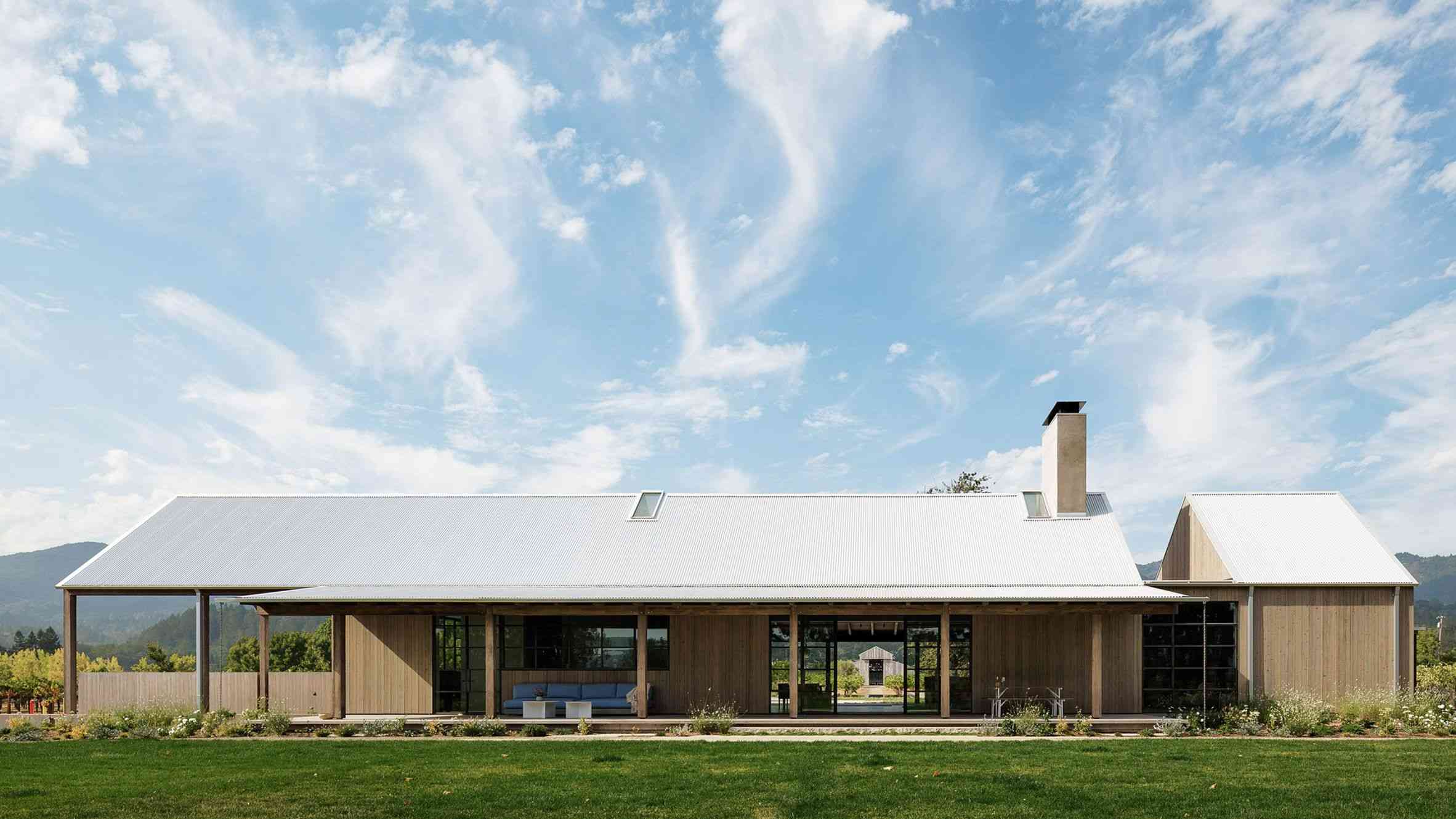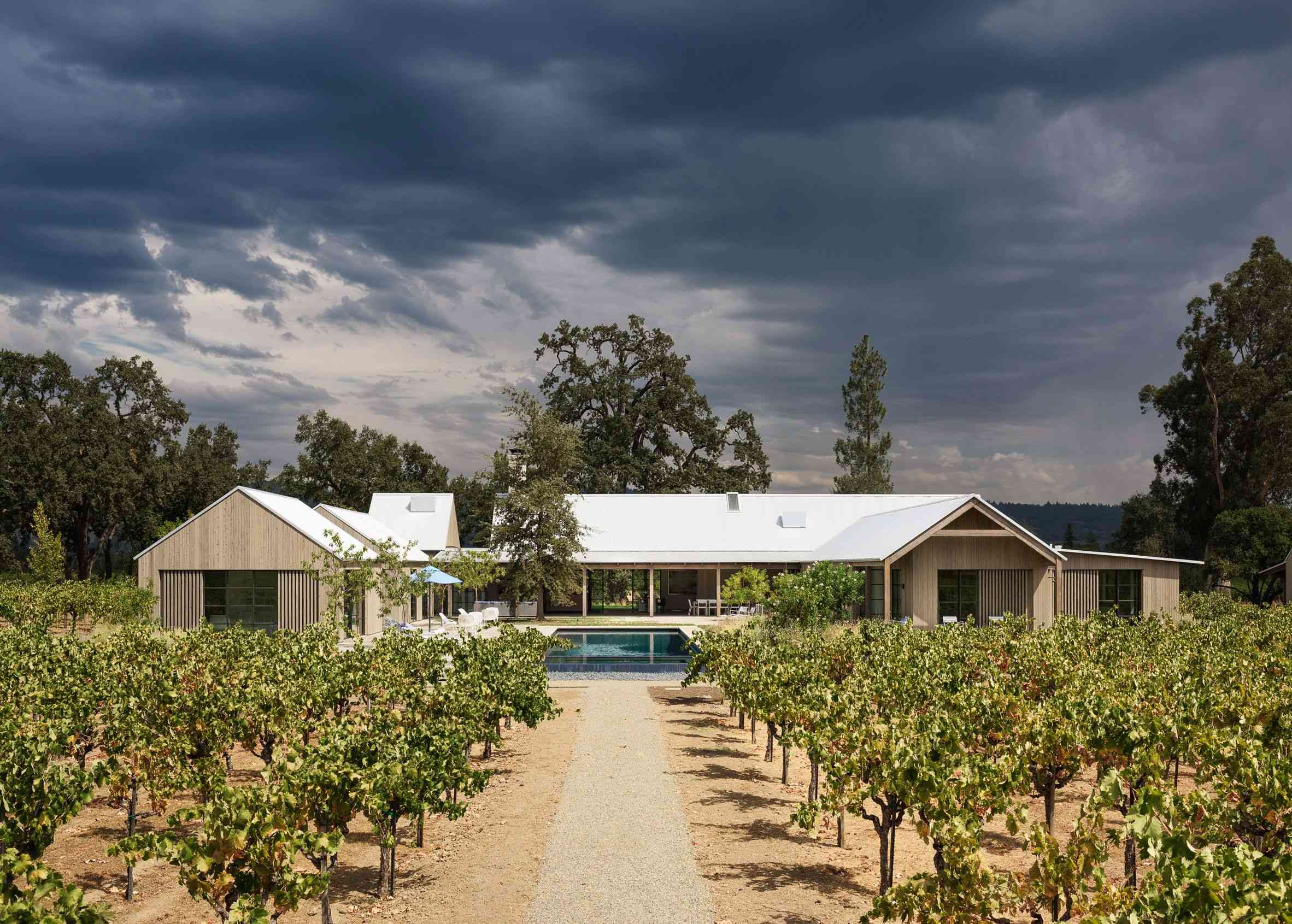 Projekt Zinfandel House powstał z marzenia pary, która porzuciła miejskie życie w San Francisco, by stworzyć rodzinny azyl w sercu natury. Idealne miejsce znaleźli w wiosce St. Helena w malowniczej Dolinie Napa, pośród winnic i dębów. Do współpracy zaprosili renomowaną pracownię Field Architecture z Palo Alto, znaną z projektów harmonijnie wpisujących się w naturalne krajobrazy Kalifornii. Właściciele pragnęli, by ich dom był skromny i subtelny, a jednocześnie pełen modernistycznych detali i elegancji. Tak narodziła się nowoczesna stodoła na planie litery „U”, której centralnym punktem jest majestatyczny dąb otoczony bujną zielenią i winoroślami.