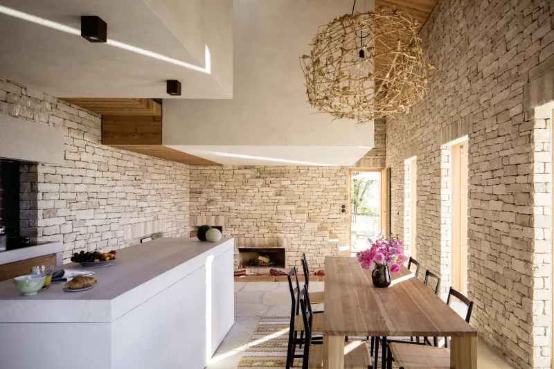Spektakularny basen infinity perfekcyjnie wtapia się w kontur zbocza, tworząc wrażenie niekończącej się linii łączącej wodę z niebem. Całość została zaprojektowana z myślą o komforcie i nowoczesnym stylu życia, przy jednoczesnym zachowaniu autentycznego charakteru miejsca. Rustykalne ściany i elementy architektury zostały pieczołowicie odrestaurowane, oddając ducha tradycyjnego budownictwa regionu.