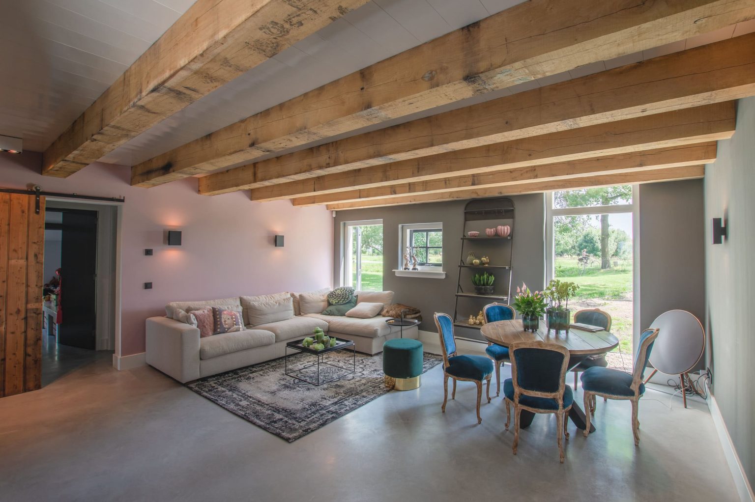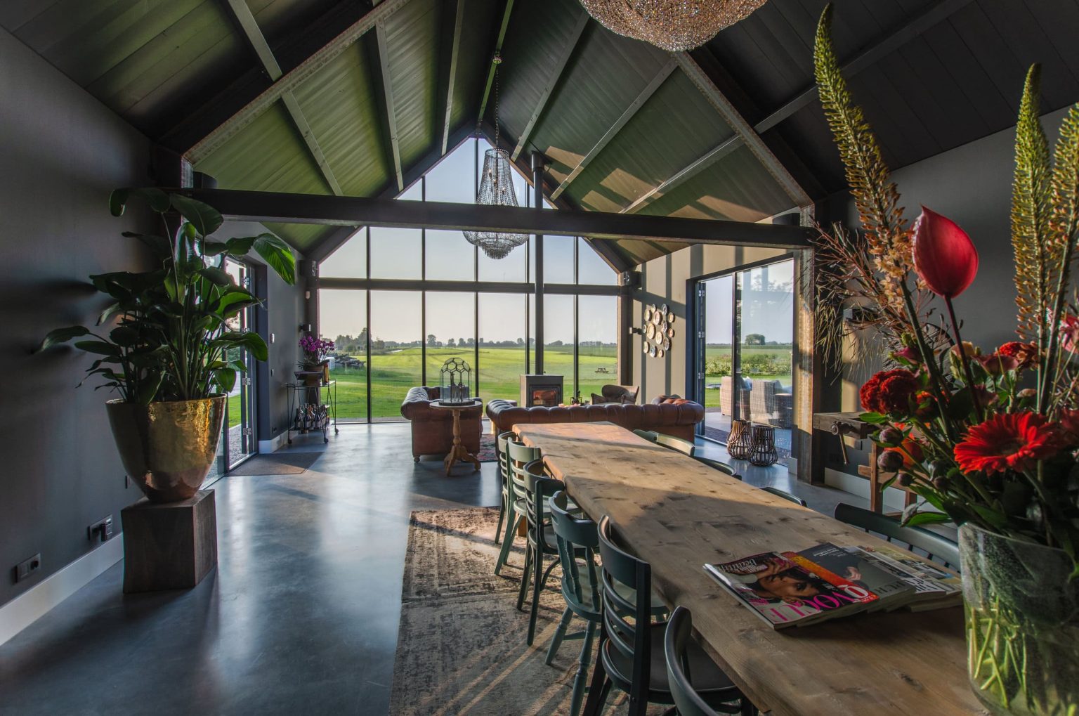 Wnętrze budynku zostało zaprojektowane z myślą o komforcie i przestronności. Przednia część opiera się na tradycyjnej konstrukcji drewnianej, natomiast tylna została wykonana z nowoczesnej stalowej kratownicy. Te dwie części oddziela ściana działowa, która subtelnie ukazuje różnice w technologii wykonania. Długi, niczym niezakłócony widok przez dom – od frontu do tylnej części działki – harmonijnie łączy wnętrze z otaczającym krajobrazem polderowym. Funkcjonalne strefy oraz klatka schodowa zostały zwarte w układzie, co pozwala na elastyczne użytkowanie przestrzeni.