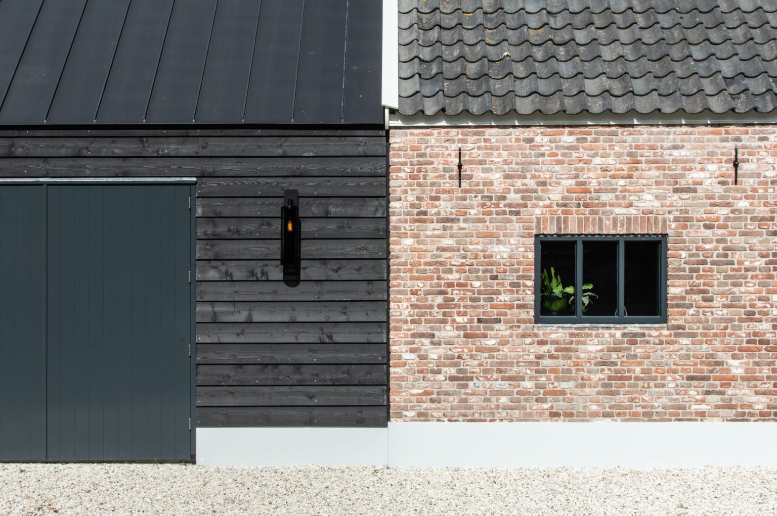 Z zewnątrz elewacja frontowa została wiernie odtworzona przy użyciu oryginalnych, odzyskanych cegieł i elementów wykończeniowych. Współczesna tylna część budynku zyskała elegancką, drewnianą okładzinę w połączeniu z cynkowym pokryciem dachowym. Najbardziej spektakularnym elementem jest północna fasada – przeszklona na całej wysokości, aż do kalenicy, otwierająca dom na rozległy, malowniczy pejzaż.