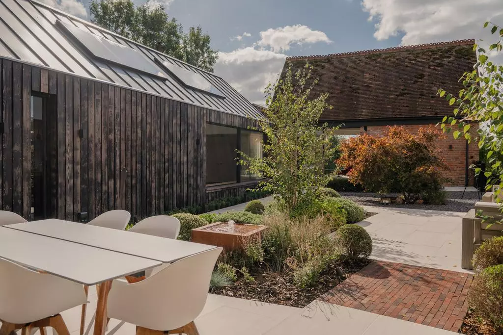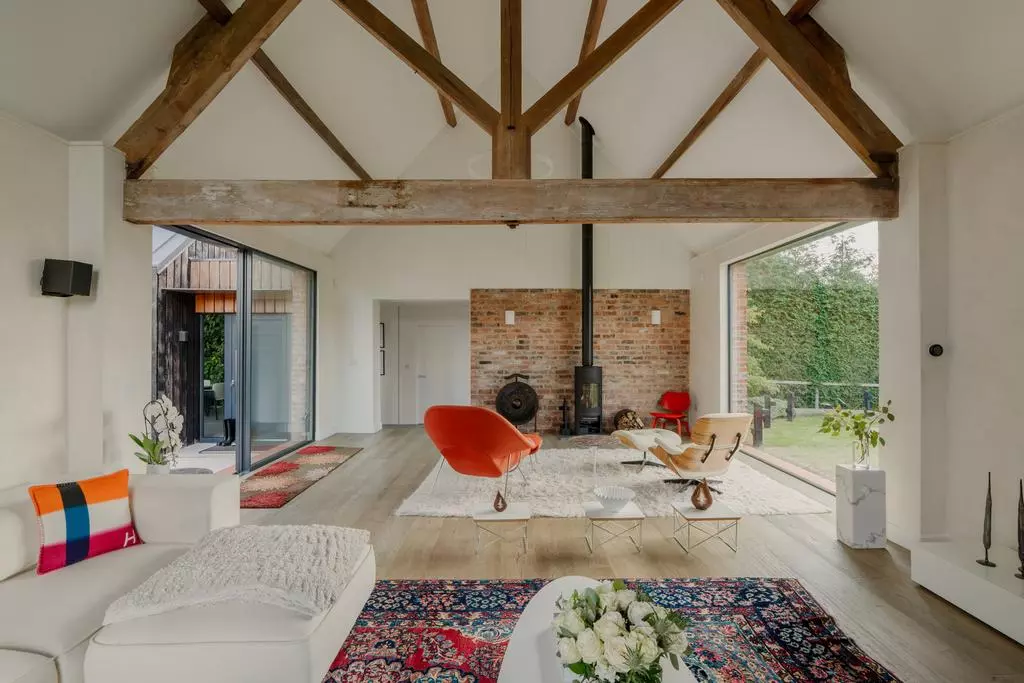 Kompleks kilku ceglanych budynków gospodarczych, które przez lata służyły rolnictwu, został starannie odrestaurowany i połączony w jedną spójną całość. Dzięki temu powstała przestrzeń mieszkalna, która łączy autentyczną strukturę dawnych stodół z nowymi elementami architektury współczesnej. Całość wpisuje się w krajobraz angielskiej wsi, gdzie czerwone cegły, dachy o dużym nachyleniu oraz otaczające pola tworzą charakterystyczny, sielski klimat.