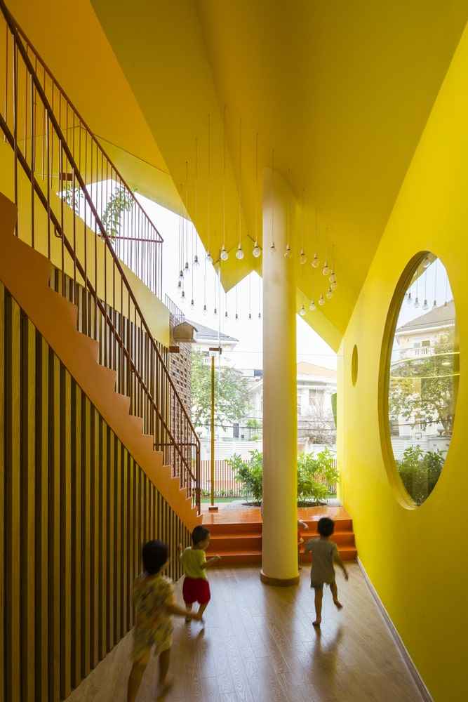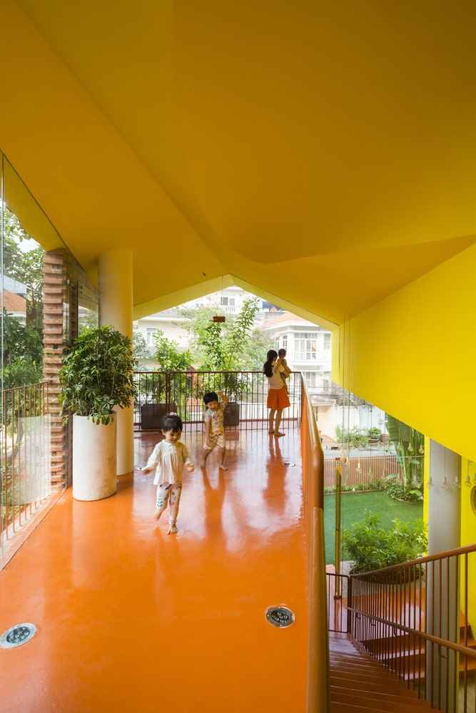 Parter budynku otwiera się na ogród, a wyższe kondygnacje prowadzą do zielonego dachu z widokiem na rzekę Sajgon, oferując dzieciom kontakt z naturą oraz przestrzeń do aktywnej eksploracji. Przedszkole Chuon Chuon Kim 2 to nie tylko miejsce nauki – to architektoniczna przygoda, pełna niespodzianek i inspiracji. To przestrzeń, która nigdy się nie nudzi i która – niczym dobrze zaprojektowana nowoczesna stodoła – łączy prostotę formy z głębokim znaczeniem edukacyjnym. Projekt jest wyrazem wdzięczności dla nauczycieli i pasji tworzenia miejsc, które wspierają rozwój dzieci w duchu nowoczesnej pedagogiki.