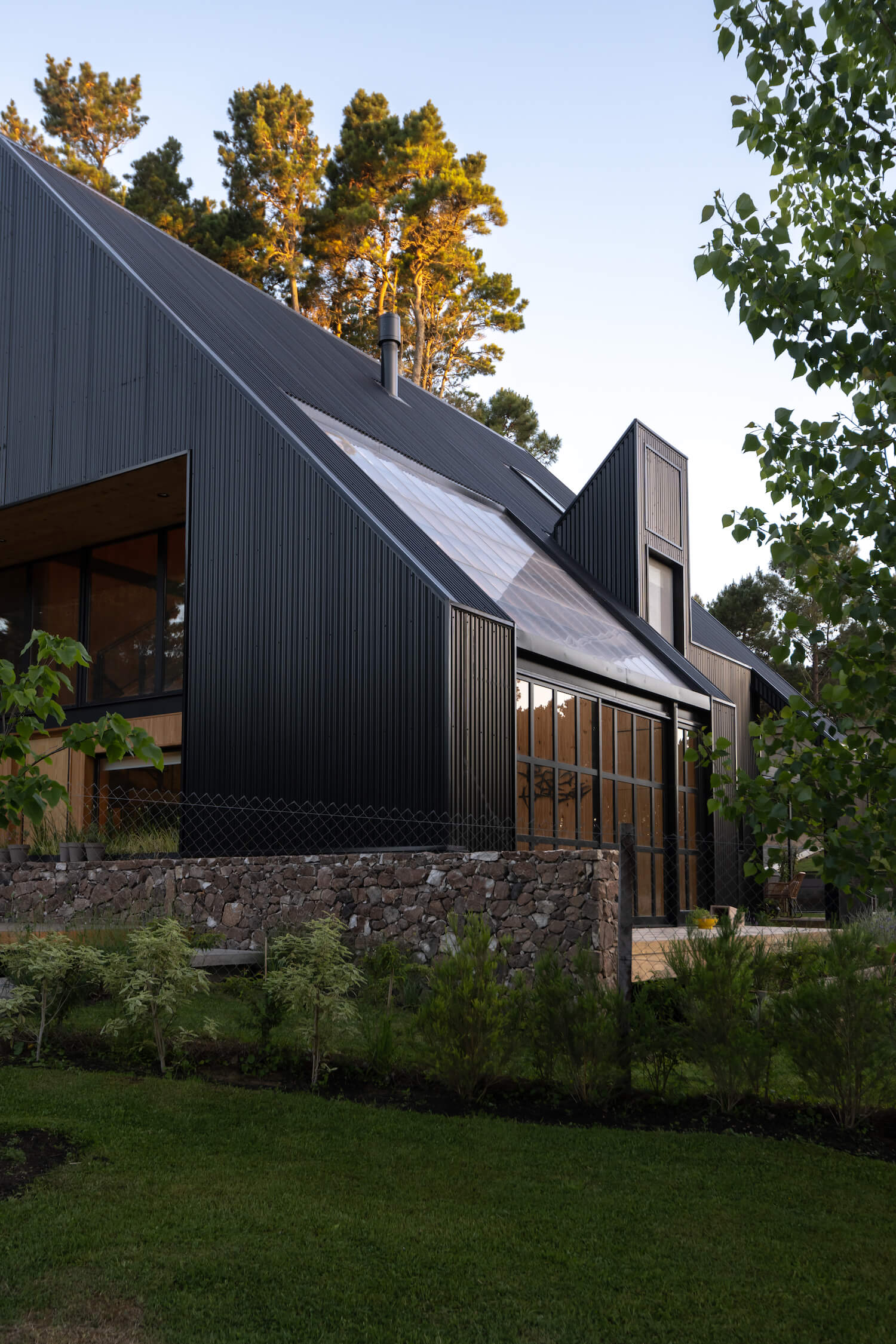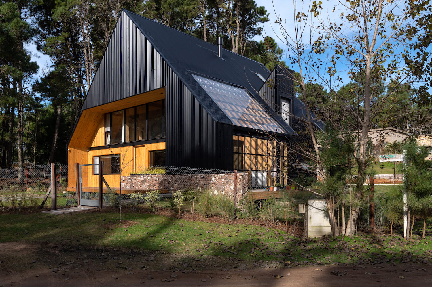 Dwuspadowy dach i innowacyjna architektura w lesie