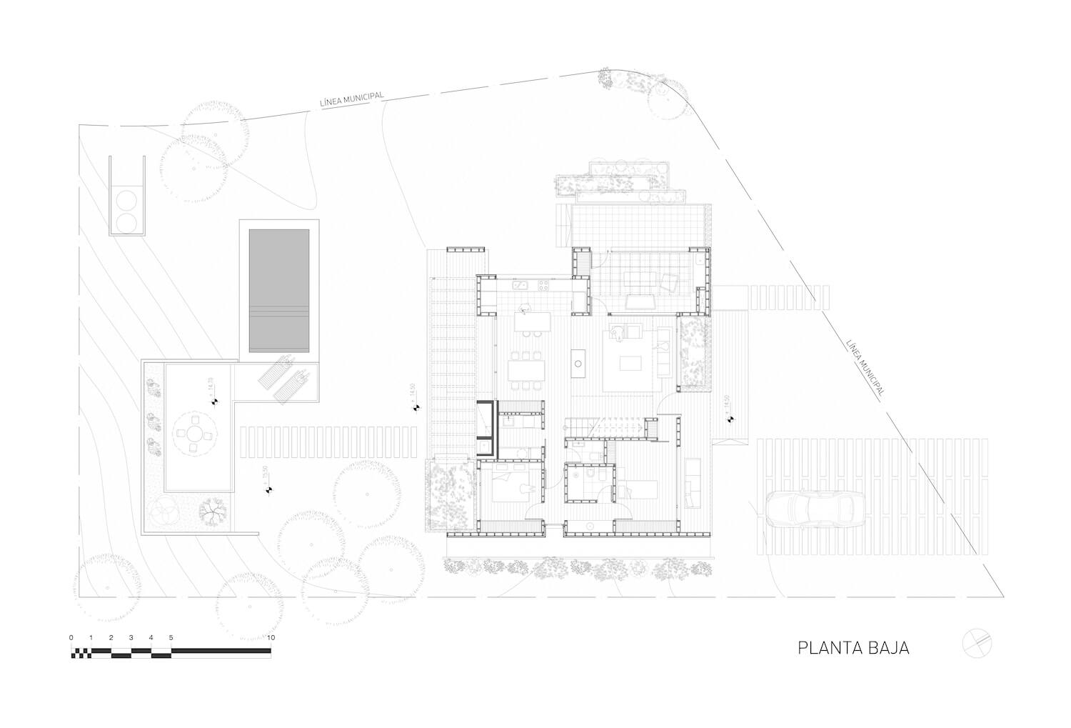 CMMY House znajduje się na wąskiej działce przy zachodnich obrzeżach Pinamar, na stromym zboczu graniczącym z lasem. Zlecenie wymagało stworzenia nowoczesnego domu z dwuspadowym dachem, co początkowo wydawało się być wyzwaniem. Z zewnątrz budynek przypomina zwartą bryłę z zagłębieniami, jednak wnętrze zostało zaplanowane tak, by przestrzenie były pełne powietrza, tworząc unikalną atmosferę.