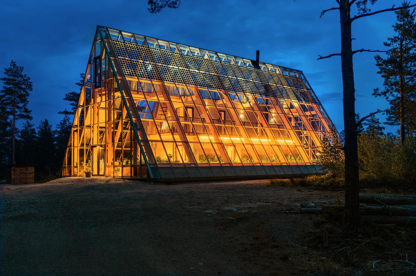Na południowo-zachodnich brzegach jeziora Vänern w Szwecji, pośród gęstych lasów iglastych, powstał dom letniskowy Atri – nowoczesna konstrukcja w kształcie litery A, zaprojektowana przez studio Naturvillan. Dom Atri to połączenie zrównoważonej architektury, szkła i drewna, z minimalnym wpływem na środowisko. Dwie szklane, spadziste ściany tworzą dynamiczną sylwetkę, która wpasowuje się w naturalny krajobraz. W nocy całość rozświetla się dzięki oświetleniu zasilanemu energią słoneczną.
