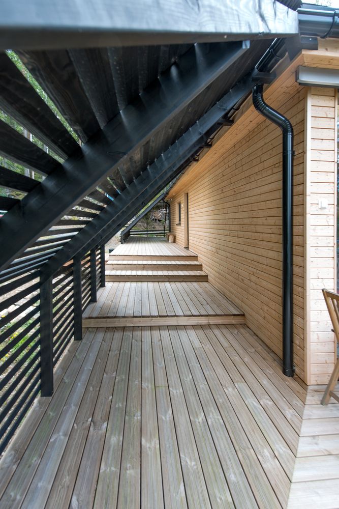 Nowoczesna stodoła w Finlandii została wyposażona w inteligentne technologie oraz ogrzewanie podłogowe zasilane wodą geotermalną, a drewniana konstrukcja obita świerkiem i ocieplona naturalnymi materiałami zapewnia komfort nawet w mroźne noce. W domu znajdują się gościnna sypialnia, sauna i dwie łazienki, a materiałowe połączenie drewna i naturalnych izolacji podkreśla ekologiczne i nowoczesne podejście do budowy. Projekt harmonijnie łączy funkcjonalność i estetykę nowoczesnej stodoły z fińskim krajobrazem, tworząc wyjątkowe miejsce do odpoczynku i podziwiania przyrody.
