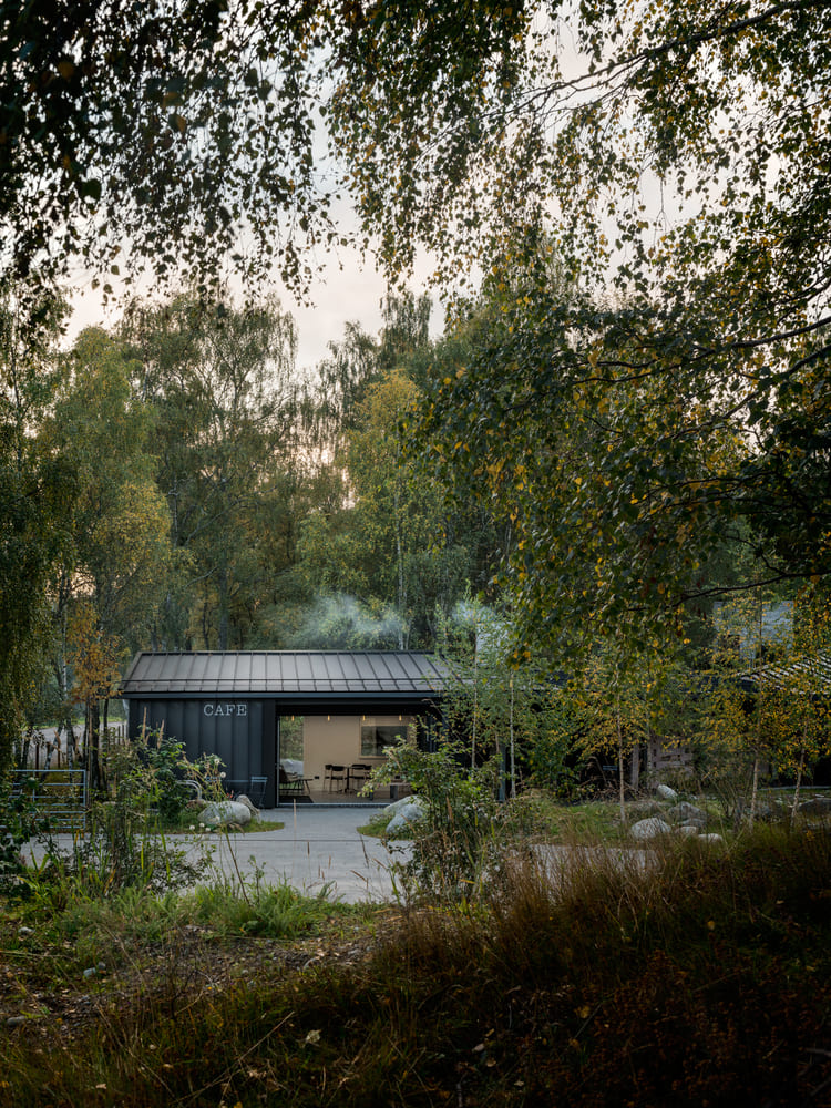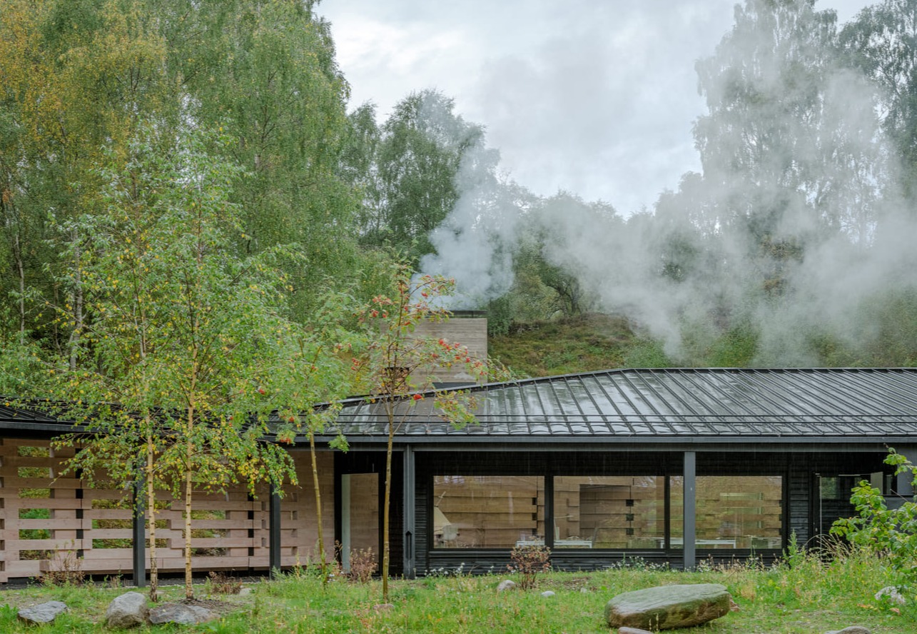 W samym sercu szkockiego Parku Narodowego Cairngorms, w miejscu dawnego kamieniołomu, powstała nowa siedziba Moxon Architects – Quarry Studios. Projekt został precyzyjnie dopasowany do naturalnego kontekstu, z poszanowaniem lokalnego ekosystemu oraz zasad zrównoważonego projektowania. Nisko osadzony, energooszczędny budynek o powierzchni 401 m² został wkomponowany w nieckę kamieniołomu, a jego dach poprowadzono równolegle do krawędzi skarpy. Budynek zorganizowano wokół dwóch betonowych monolitów, a jego forma i materiały – czarne drewno, stal i daglezja – nawiązują do architektury kontekstualnej. Całość uzupełnia hybrydowa konstrukcja stalowo-drewniana oraz geotermalna pompa ciepła, której odwiert sięga aż 250 metrów w głąb granitu.