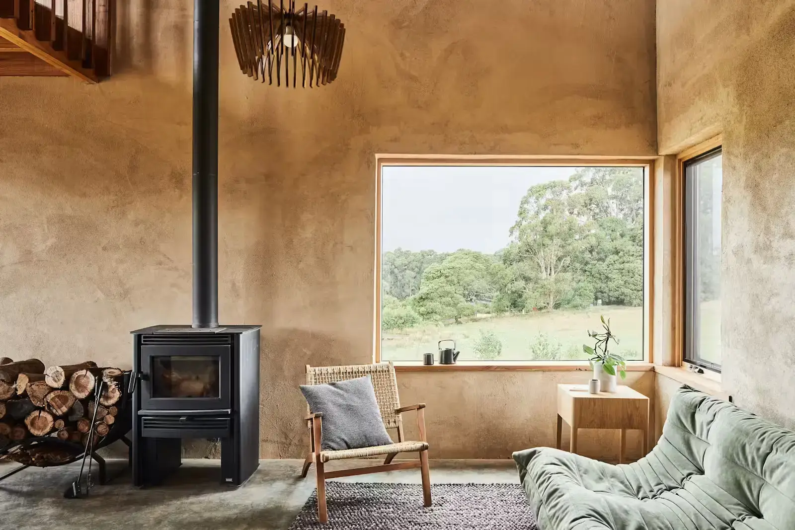 Położony na imponującej wysokości 740 metrów, dom stanął przed wyzwaniem zapewnienia wyjątkowej wydajności nawet w trudnych warunkach. Dobrze zaprojektowana przestrzeń jest w stanie utrzymać komfortową temperaturę wewnętrzną wynoszącą 20°C bez potrzeby dodatkowego ogrzewania. Decyzja o wykorzystaniu betonu konopnego do budowy tego domu przyniosła wiele korzyści. Nie tylko wykazuje on wyjątkową odporność na ogień, szkodniki i pleśń, zapewniając bezpieczną i trwałą konstrukcję, ale oddychalność ścian pokrytych tynkiem wapienno-glinianym gwarantuje również stały dopływ świeżego powietrza, skutecznie regulując poziom wilgotności.