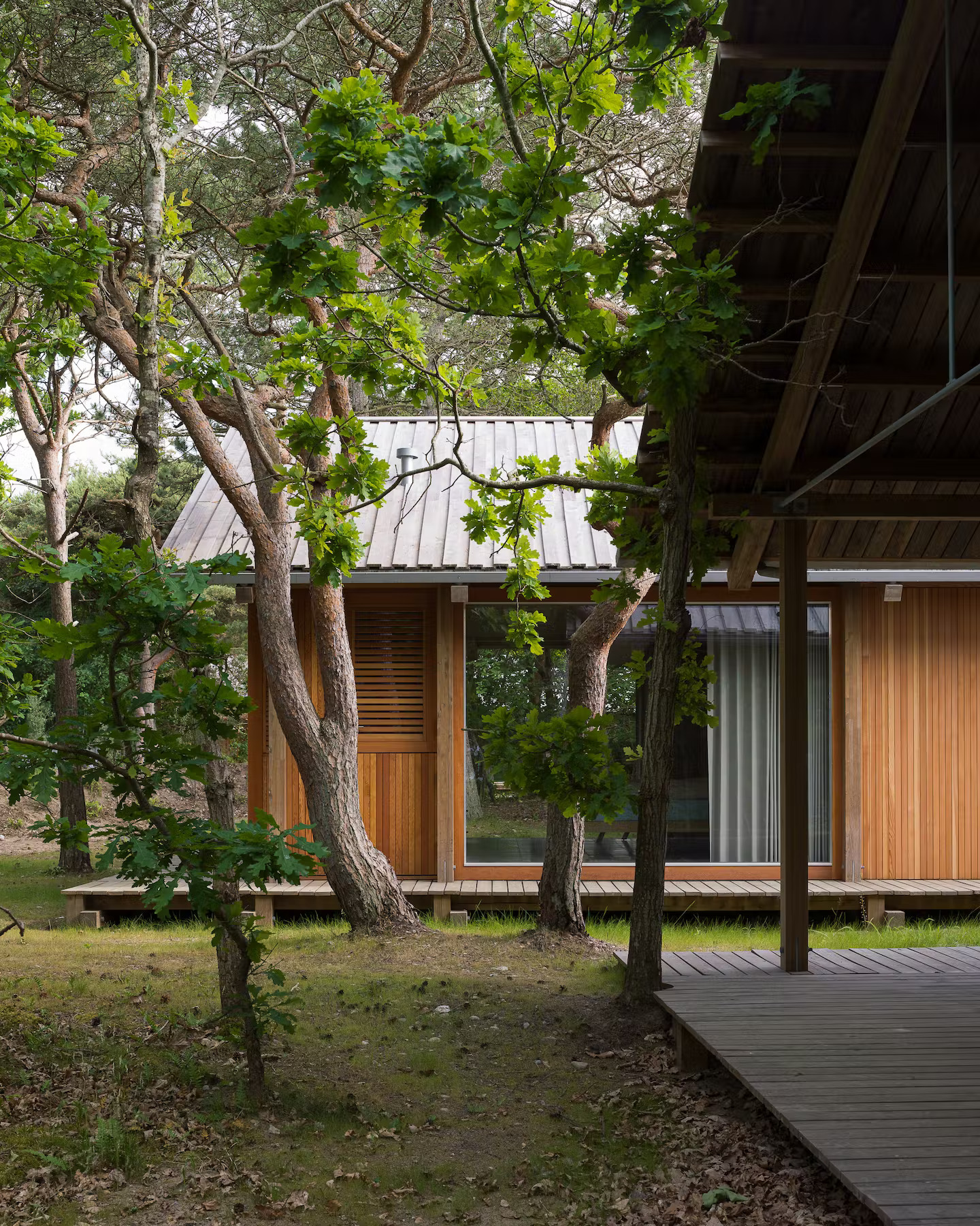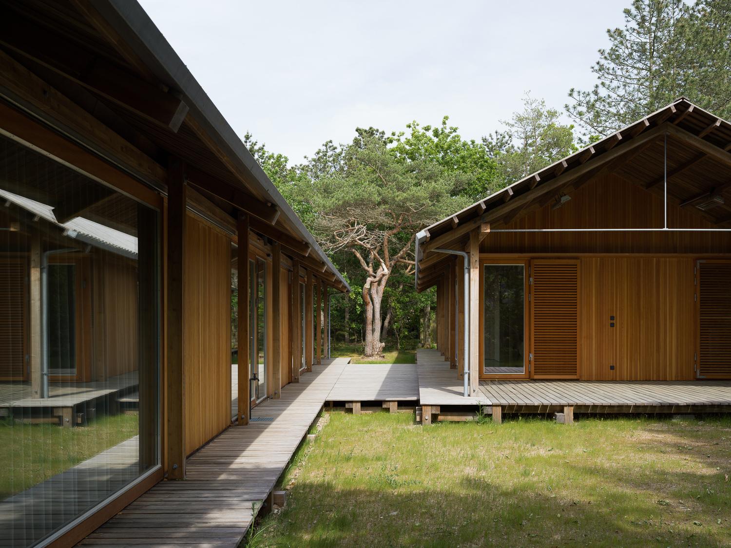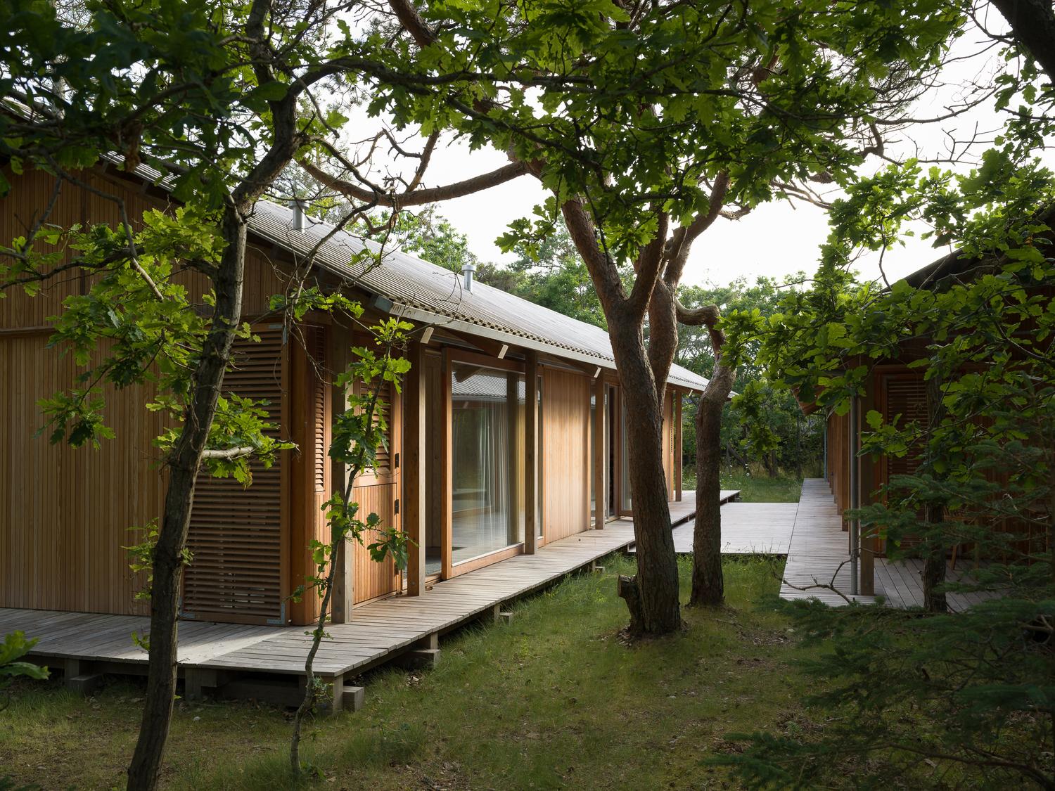 Rågeleje to wyjątkowe domy wakacyjne, zlokalizowane w malowniczej miejscowości Rågeleje w Danii, zaprojektowane z myślą o integracji z naturą i prostocie życia. Cztery minimalistyczne rezydencje położone wśród zielonej mieszanki drzew i krzewów stanowią doskonały przykład nowoczesnej interpretacji wielowiekowej tradycji drewnianych domów, pełnej szacunku dla przyrody. Projekt zlecony przez czterech braci jest świadectwem harmonijnego współistnienia z otaczającym krajobrazem, z zachowaniem istniejącej flory. Skromna skala każdego domu oraz rozmieszczenie konstrukcji odzwierciedlają świadomą decyzję o uszanowaniu natury i jej naturalnego rytmu. Każde drzewo zostało zachowane, co umożliwia mieszkańcom cieszenie się intymnym połączeniem z naturą.