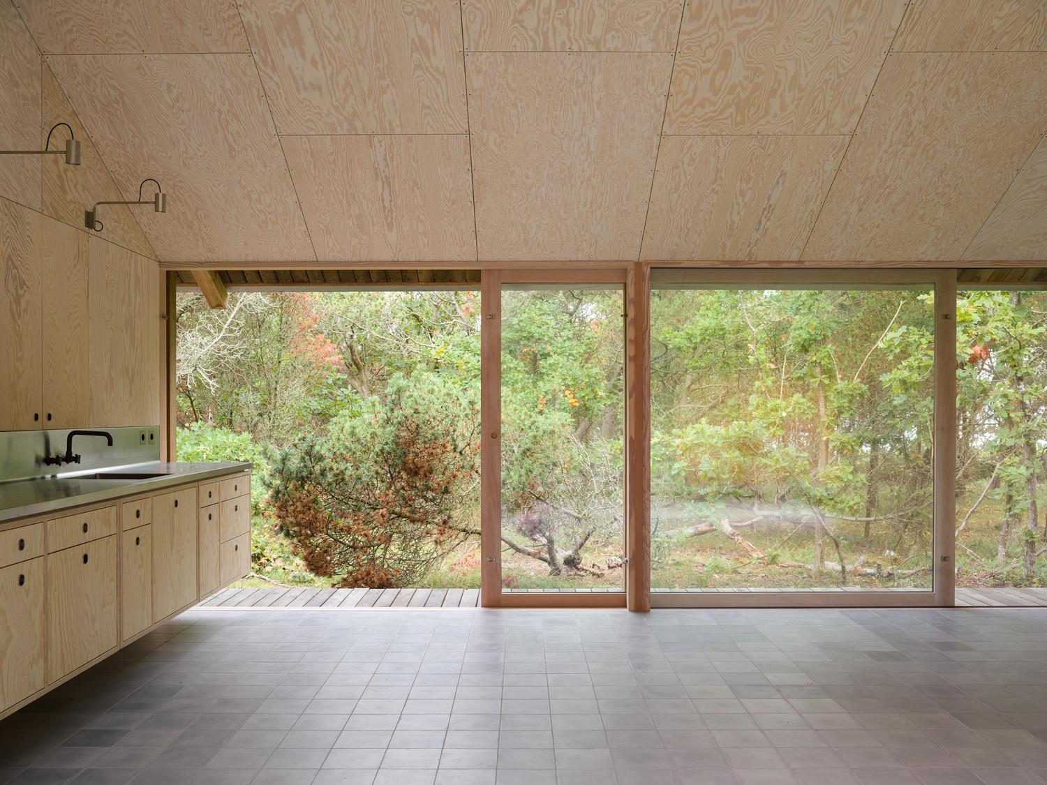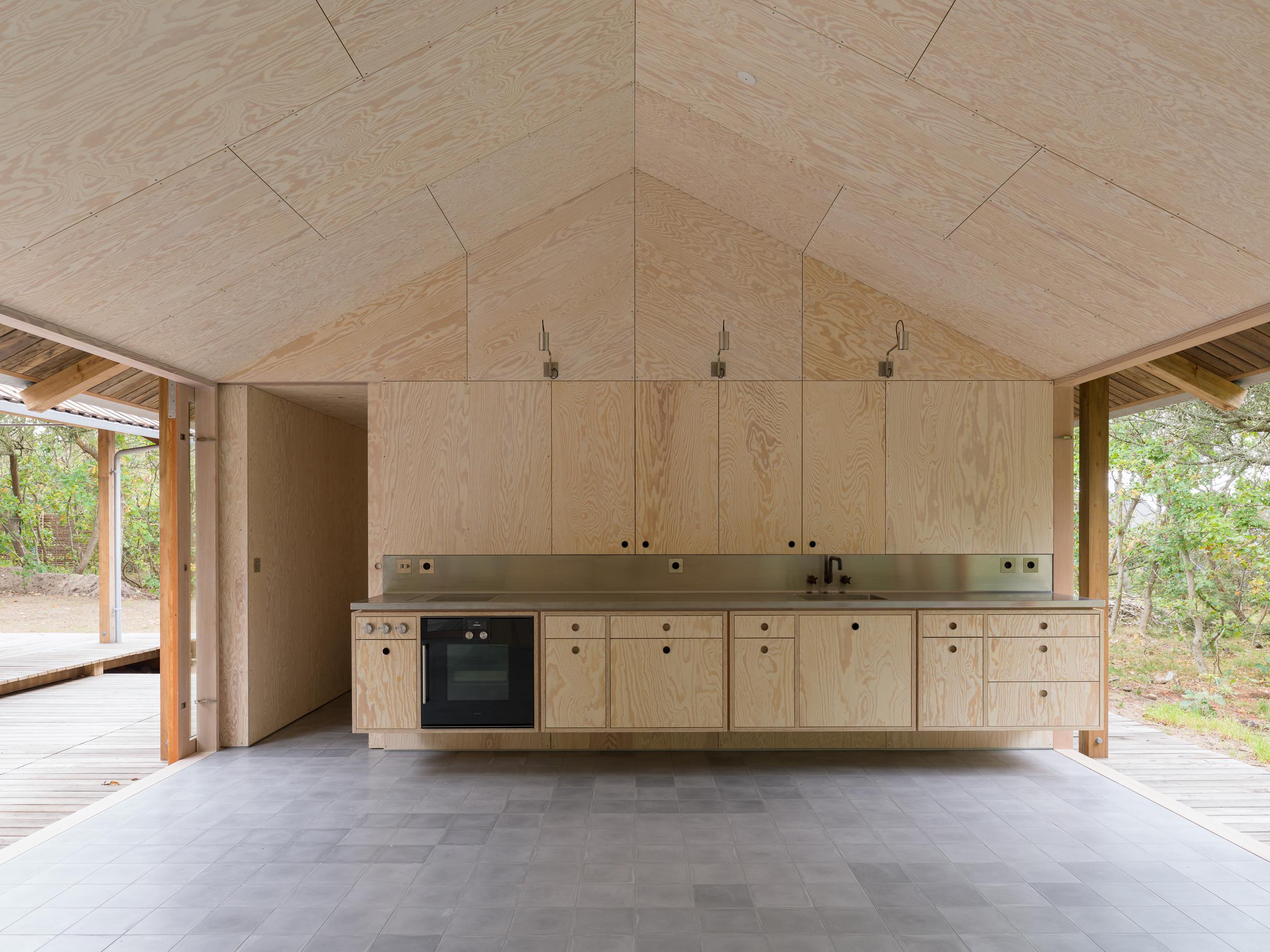 Wszystkie elementy budowlane zostały starannie dobrane z myślą o trwałości, ekologii i estetyce. Zewnętrzna konstrukcja budynków, w tym dachy i pokłady, wykonana jest z litej robinii, wytrzymałego drewna, które doskonale pasuje do przybrzeżnego środowiska i piaszczystej gleby. Robinia glulam stanowi podstawowy materiał konstrukcyjny każdego domu, zapewniając solidność i odporność na warunki atmosferyczne. We wnętrzach domów króluje drewno w naturalnych odcieniach. Sosna europejska i daglezja są wykorzystywane do mebli, okładzin i elementów elewacyjnych, tworząc ciepłą, przytulną atmosferę. Podłogi z ręcznie robionych płytek oraz półwymiarowe płytki w łazienkach wprowadzają dodatkowy element spójności, łącząc przestrzeń z ziemią i zachęcając do płynnego życia wewnątrz i na zewnątrz. Elegancka stal nierdzewna w zlewozmywakach kontrastuje z patynowanymi mosiężnymi rurami, tworząc wyważoną estetykę.