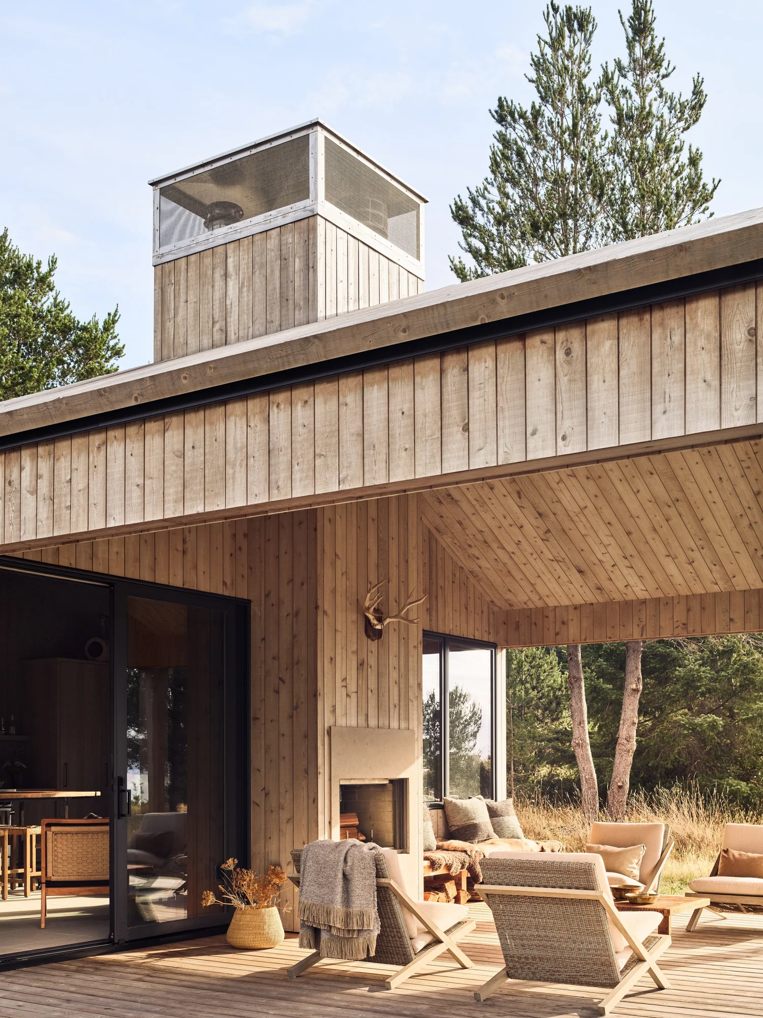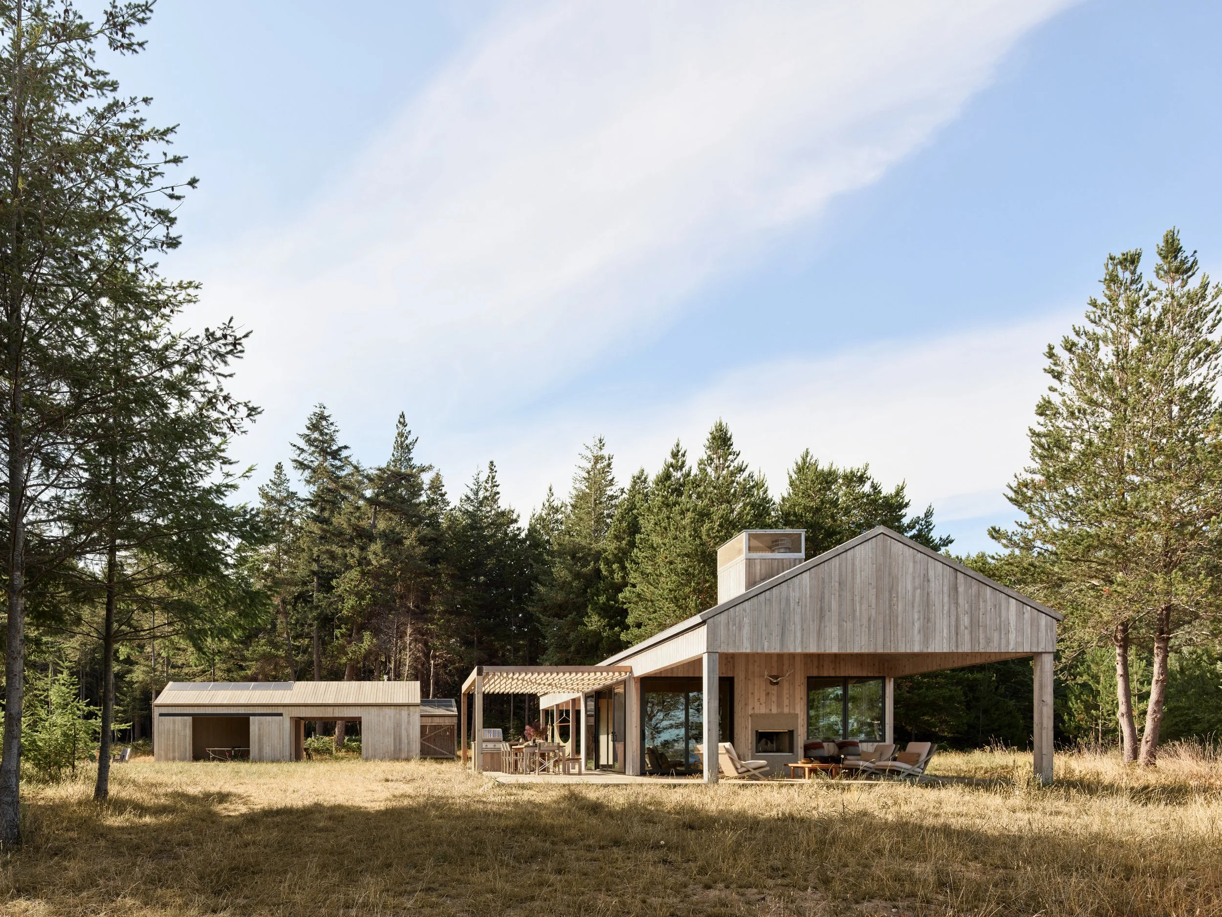 Usytuowany na granicy lasu i wysokiej łąki porośniętej sosnami nadbrzeżnymi i dziką różą, dom otwiera się na południowy wschód – w stronę morza, burz i porannego słońca. To miejsce stworzone do życia w rytmie natury, gdzie każdy dzień toczy się między wnętrzem a zewnętrzem, a granice między nimi niemal zanikają.