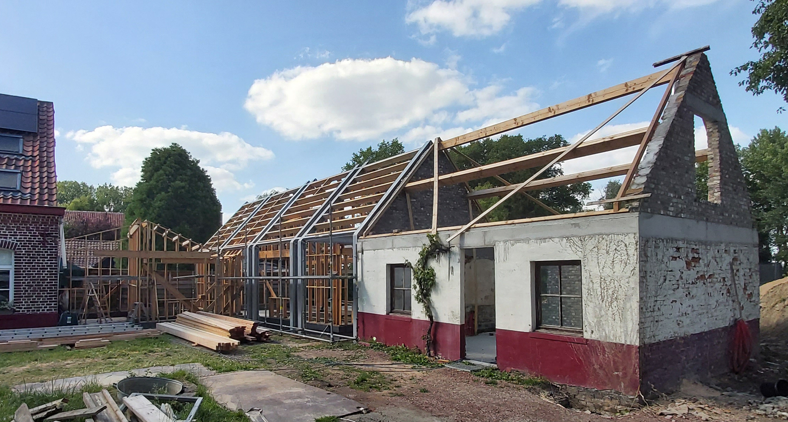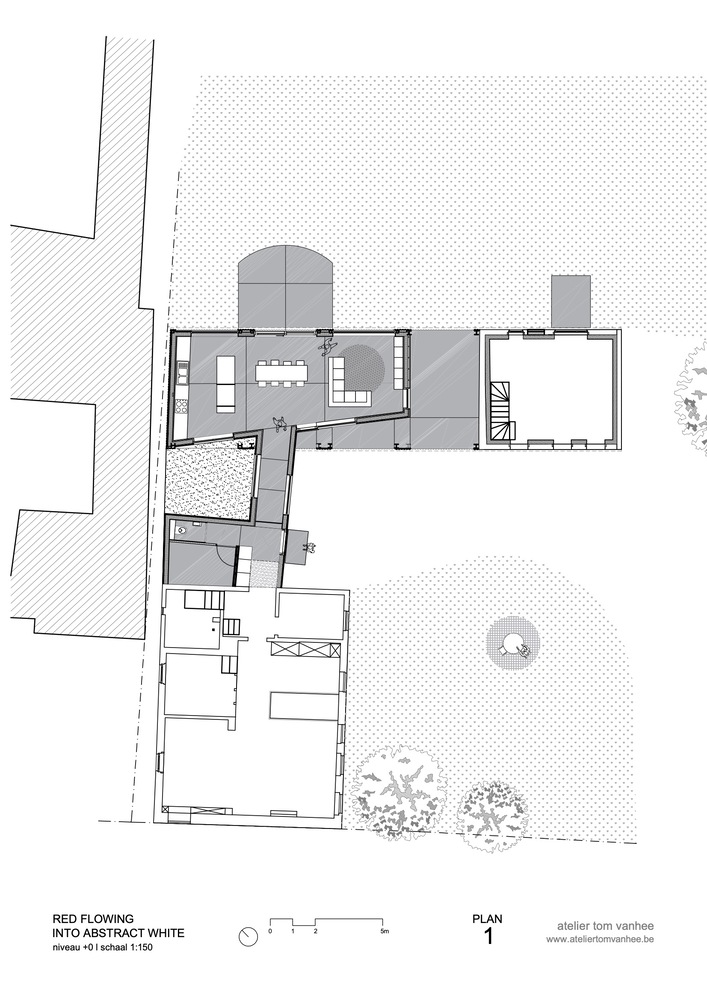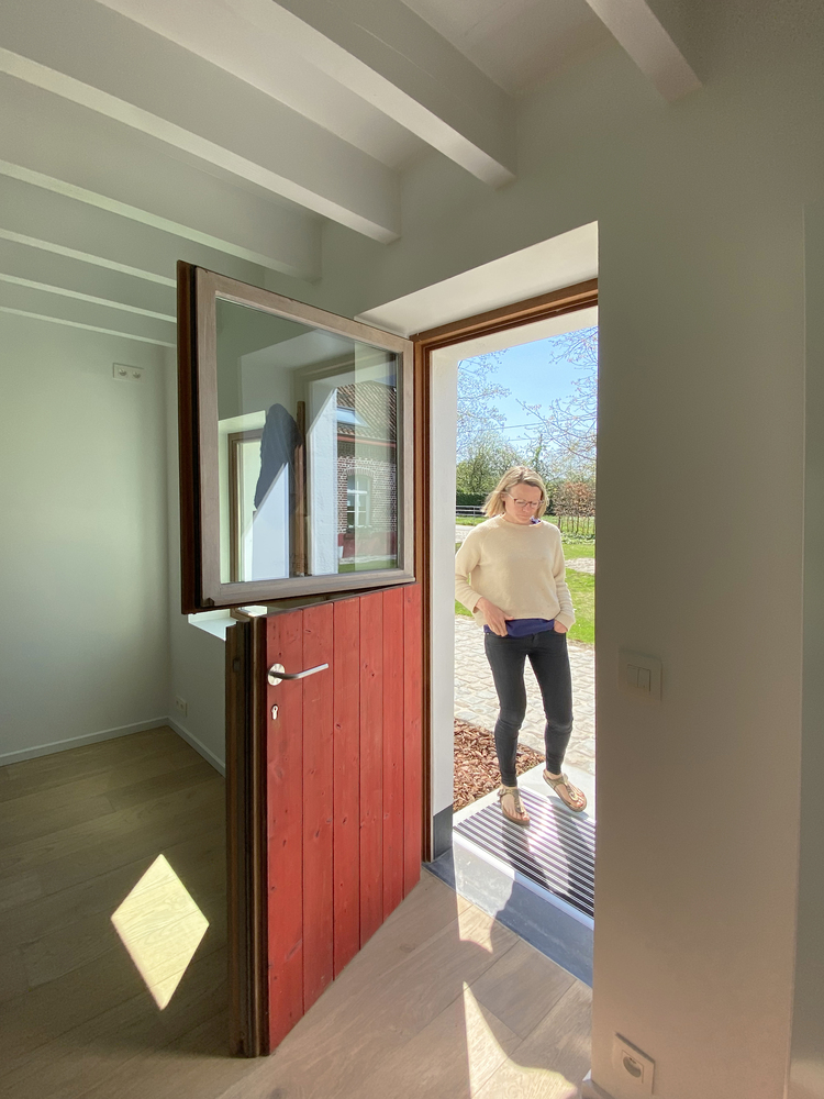 Przebudowa odświeżyła najstarszy dom wiejski w Gijzenzele, wprowadzając do niego różnorodne klimaty mieszkalne: przestrzenie bardziej otwarte w stosunku do ogrodu, zmieniające się w zależności od światła dziennego, zadaszoną przestrzeń zewnętrzną, zacieniony taras oraz przestronny taras ogrodowy kąpiący się w słońcu. Wnętrza charakteryzują się także wysokimi walorami wizualnymi, co stanowi kontrast dla surowych, betonowych powierzchni zewnętrznych.