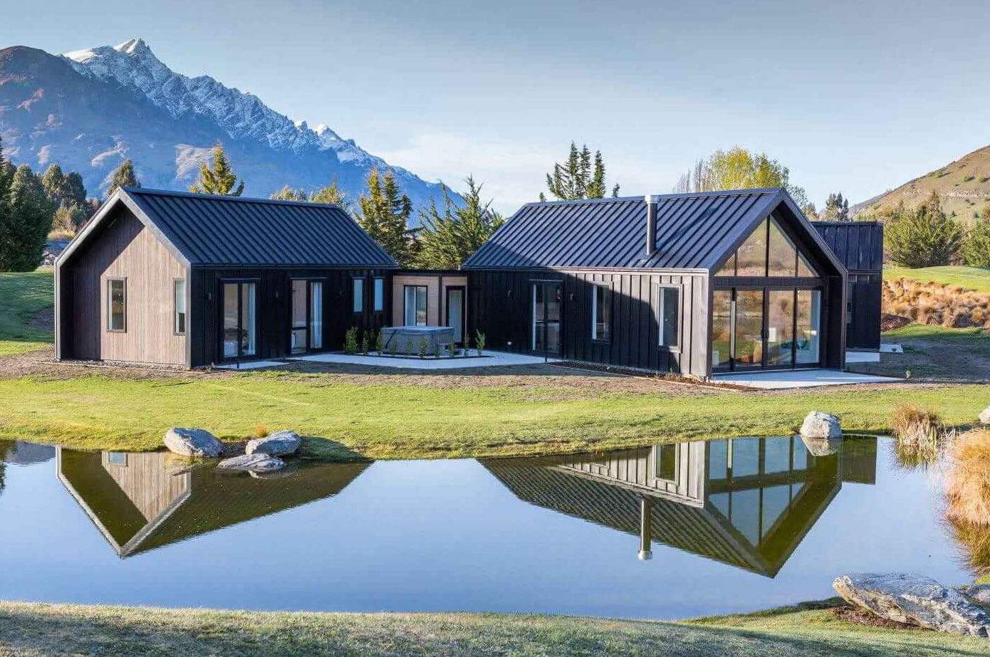 Reflections House to niezwykły dom wakacyjny położony nad jeziorem w Queenstown w Nowej Zelandii, zaprojektowany przez Stacey Farrell Architect. Jego forma harmonijnie współgra z otoczeniem – górski krajobraz odbija się w spokojnej tafli wody, tworząc malowniczy widok z każdego pomieszczenia. Dom powstał dla australijskiej rodziny z trójką dzieci, a jego układ funkcjonalny został starannie przemyślany. Projekt zakłada separację przestrzeni prywatnych dla dzieci, gości i części wspólnych, połączonych przeszklonymi przejściami. To rozwiązanie nadaje budynkowi lekkości i pozwala w pełni cieszyć się otwartymi panoramami gór.