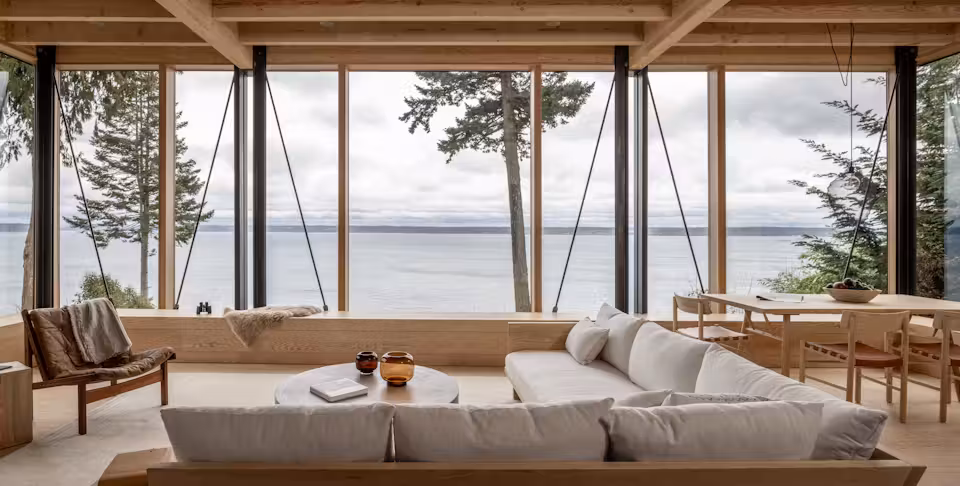 Położony w pobliżu Kingston, WA, ten wyjątkowy projekt przebudowy całkowicie reorientuje dom w stronę panoramy Puget Sound, pozwalając naturze przenikać do wnętrza. Słońce, burze i mgła docierają niemal do krawędzi salonu, tworząc poczucie pełnego zanurzenia w otaczającym krajobrazie. Nowa koncepcja przestrzeni sprawia, że dom nie tylko otwiera się na horyzont, ale również wzmacnia relację między architekturą a przyrodą, tworząc miejsce doskonale współgrające z surowym, nienaruszonym otoczeniem.