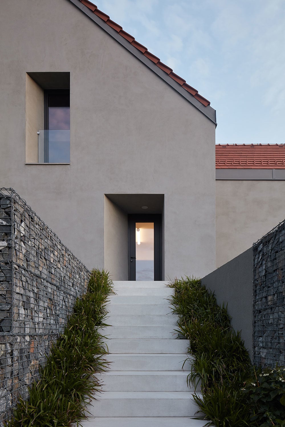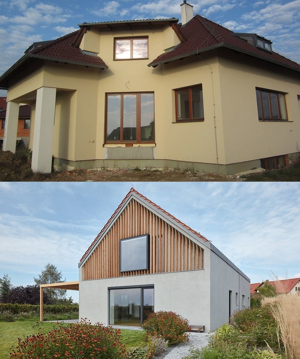 Architekci od razu zauważyli brak koncepcji oraz błędy wykonawcze – podniesiony teren uniemożliwiał wjazd do garażu, okna salonu kończyły się wysoko nad poziomem ogrodu, a fasada była nieproporcjonalnie przełamana niszami i kolumnami. Szczególną uwagę zwracał dziwaczny dach, który całkowicie zaburzał harmonię budynku. Projekt renowacji przekształcił pierwotnie planowaną mniejszą przebudowę w kompleksową rewitalizację, czerpiącą inspirację z klasycznych domów wiejskich z ilustracji Josefa Lady – z prostym rzutem, drewnianymi szczytami i dwuspadowym dachem.