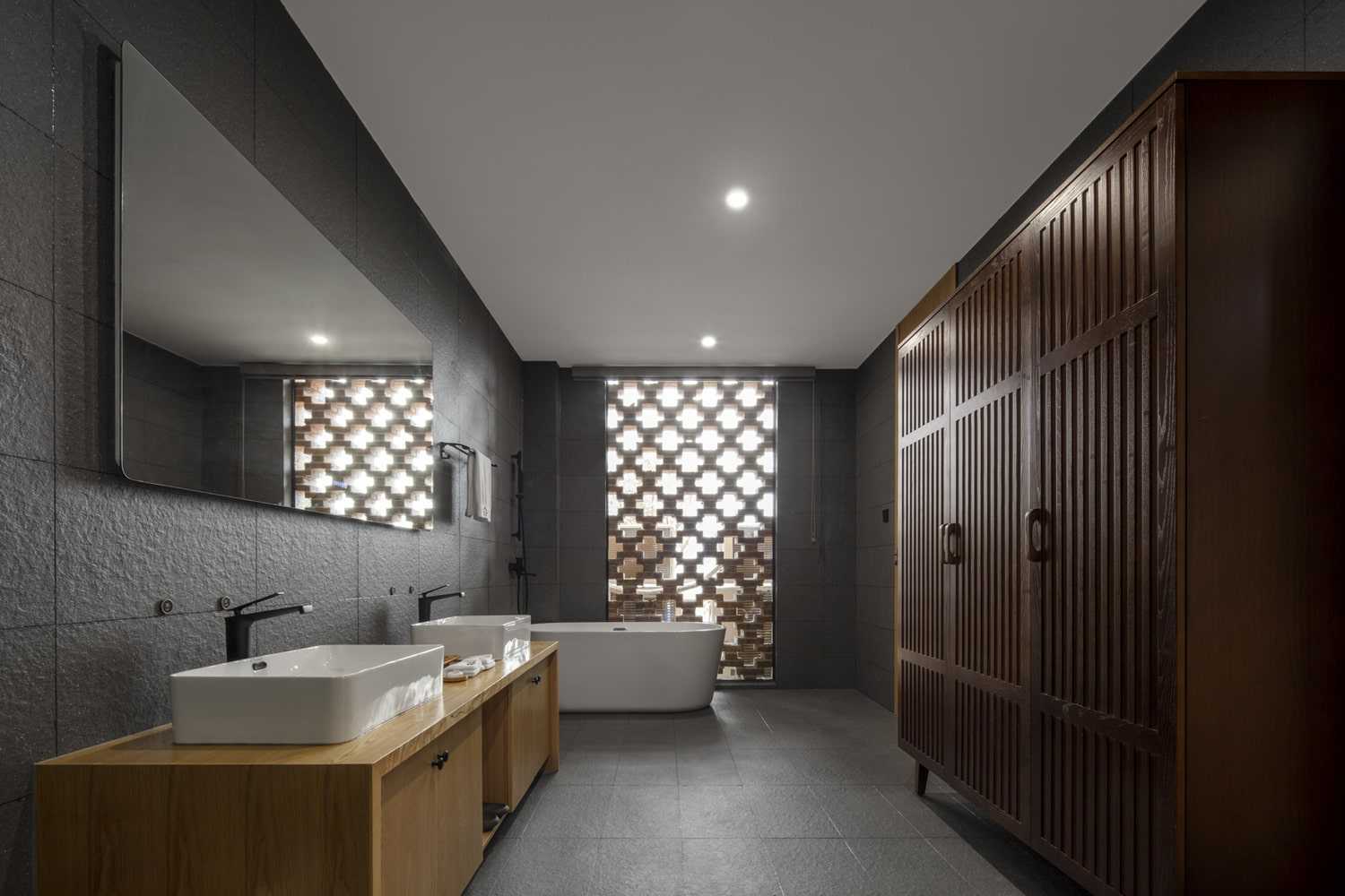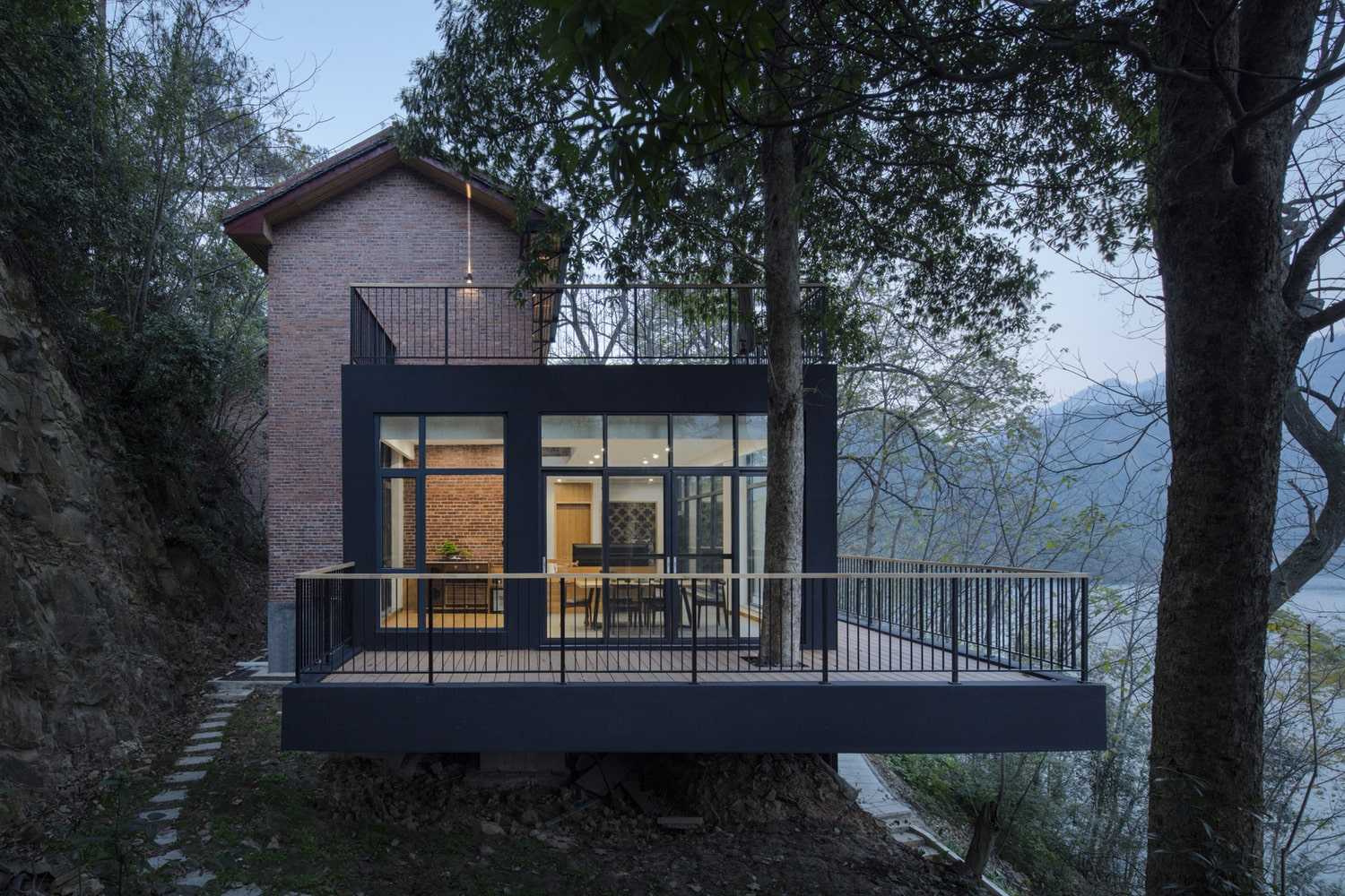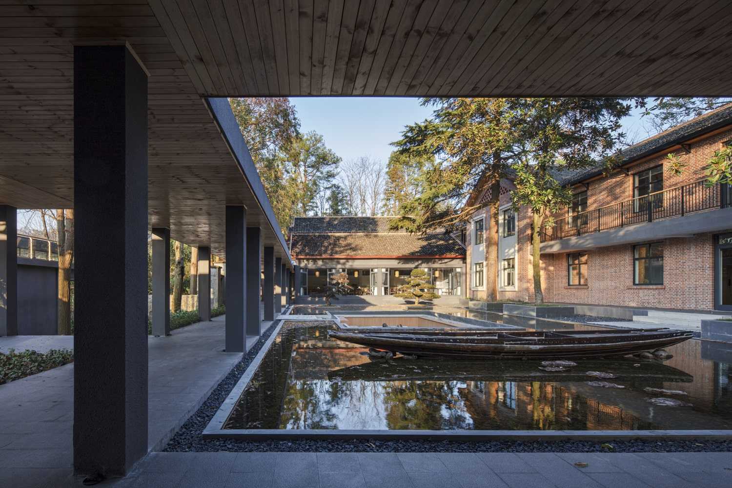 Naturalny krajobraz Situ Phoenix Island został wkomponowany w projekt, tworząc spójną całość z wysokimi sekwojami oraz cichym dziedzińcem. Przemyślane układy przestrzenne, w tym system korytarzy i dziedzińców, wzmacniają doznania estetyczne gości, prowadząc ich przez empiryczne doświadczenie miejsca. Korytarze tworzą dynamiczną oś komunikacyjną, która kieruje wzrok ku górze – na strzeliste korony drzew, odbijające się w lustrzanym basenie. Wykorzystanie walorów krajobrazowych nie tylko zwiększa atrakcyjność kompleksu, ale również pozwala w pełni odczuć jego introwertyczny, spokojny charakter. Przebudowany budynek przy brzegu – dawny fundament domu – pełni dziś funkcję lobby oraz baru wodnego, dostępnego dla gości drogą wodną, niczym latarnia witająca podróżnych.