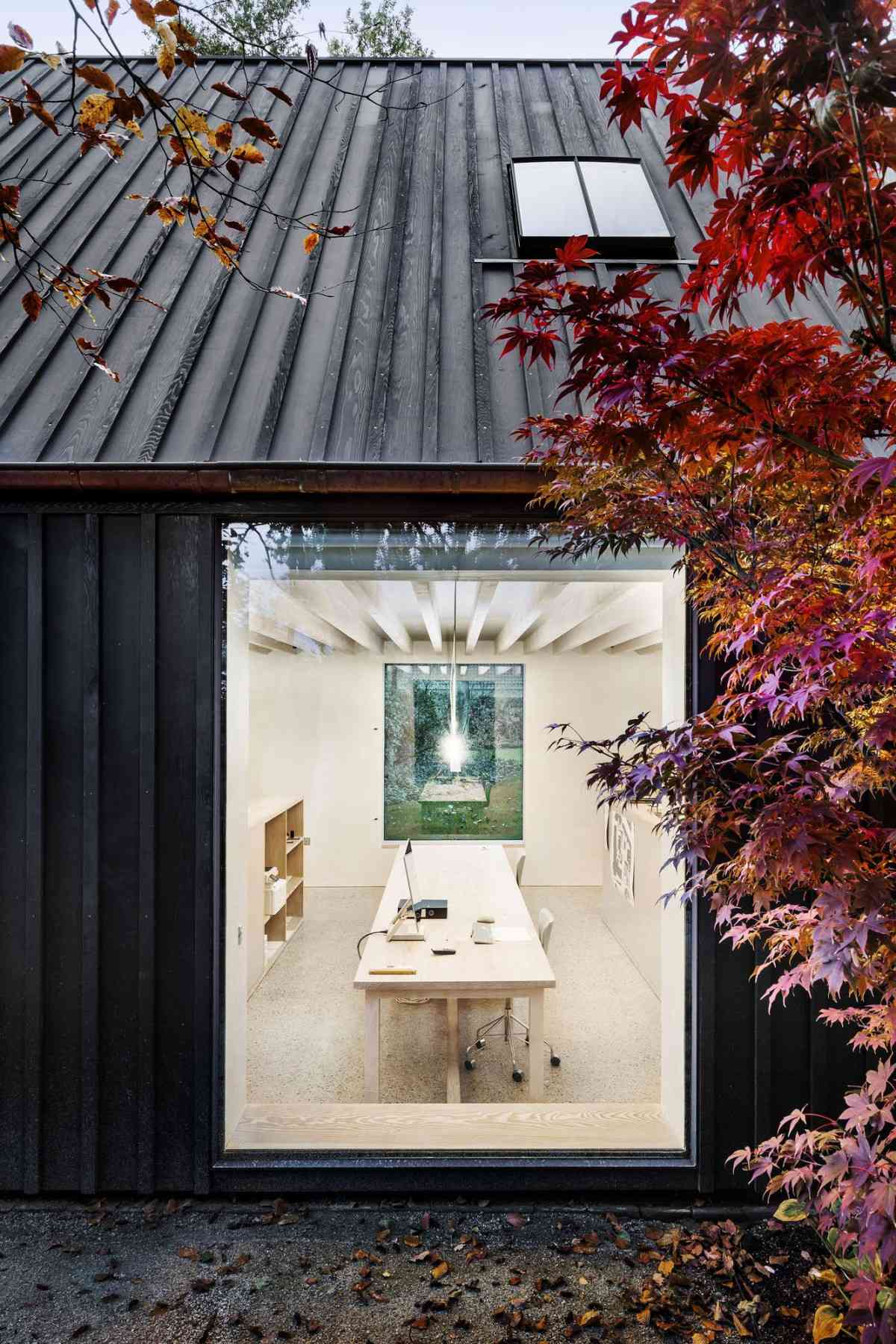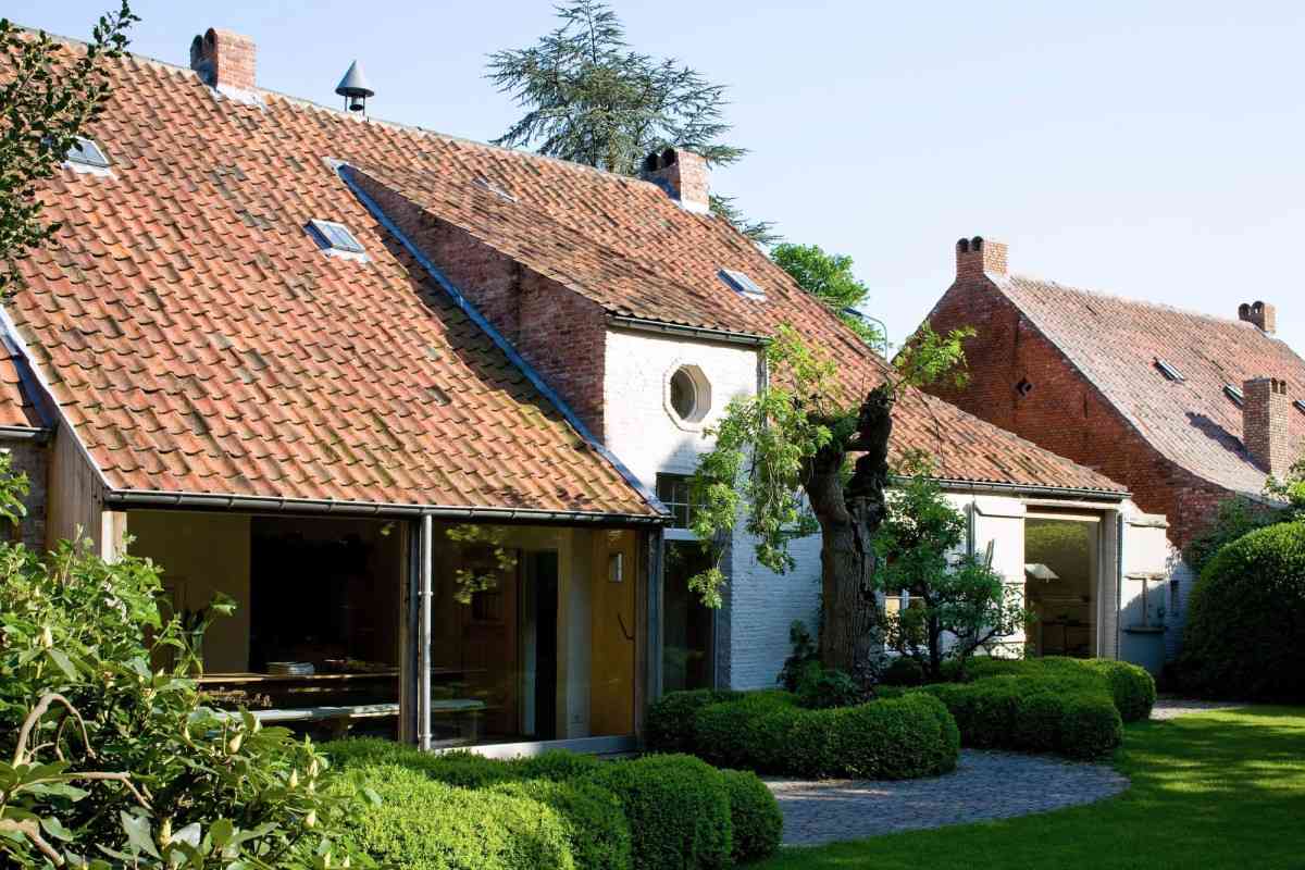 Obok odrestaurowanego budynku powstało zupełnie nowe skrzydło – stylizowane na nowoczesną stodołę. Architekci z AIDarchitecten zdecydowali się na konstrukcję z naturalnego drewna, wykończoną materiałami, które z wiekiem nabierają szlachetnej patyny, korespondującej z oryginalnym obiektem. Elewację nowej części pokryto czarnym drewnem, a w minimalistycznych oknach ze stali szlachetnej zadbano o wentylację i dopływ naturalnego światła. Całość posadowiono pół metra niżej niż zabytkową bryłę, tworząc ciekawą perspektywę i łagodne przejście do ogrodu. Architektonicznie, nowa nowoczesna stodoła jest podporządkowana oryginalnemu budynkowi, jednak funkcjonalnie oferuje elastyczne i przyszłościowe rozwiązania.