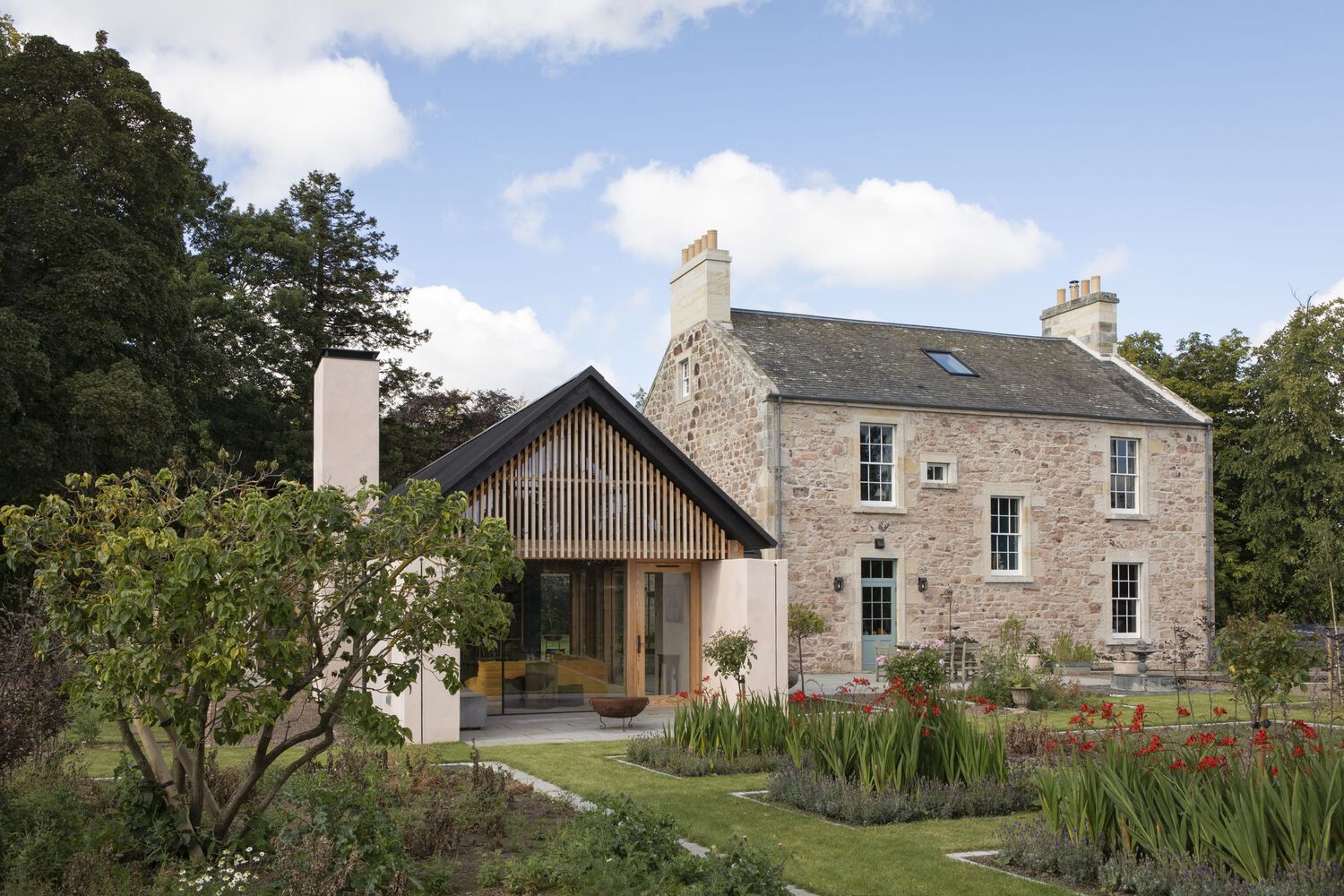 Nowe rozszerzenie wyciąga nowe przestrzenie mieszkalne na wschodnie obszary ogrodu, przechwytując światło słoneczne i widoki, sięgając w stronę ogrodu otoczonego murem i tworząc konwersacyjną relację z istniejącym budynkiem. Interwencje zapewniły architektoniczne tło i ramy dla klienta, aby rozpocząć zadanie renowacji rozległych zaniedbanych ogrodów.