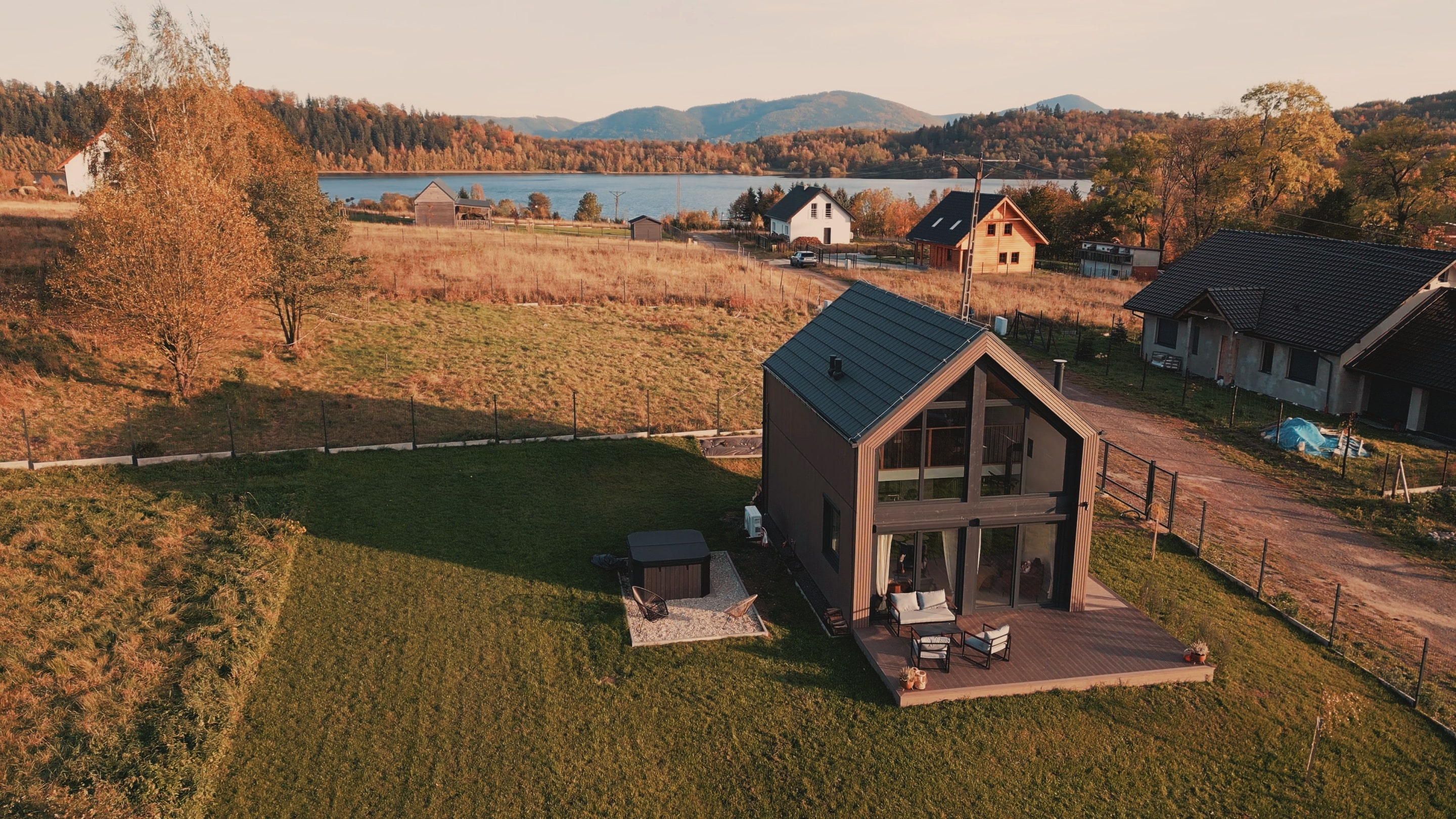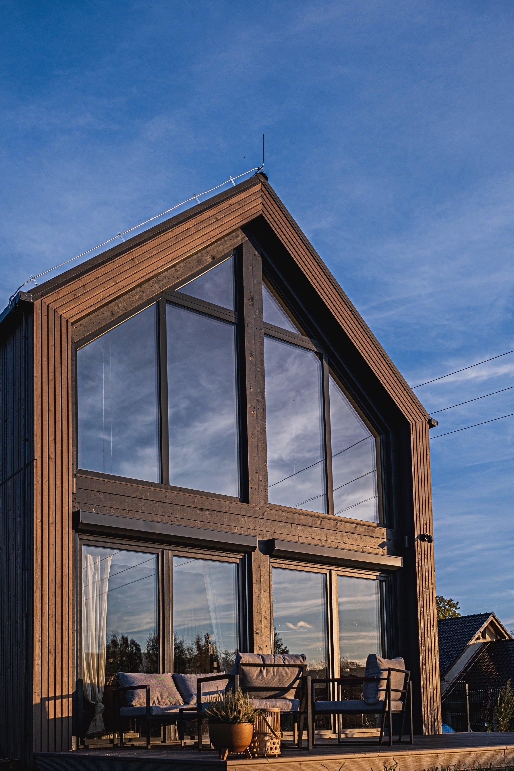Jednym z najpiękniejszych przykładów realizacji w duchu Rest House 66 jest Kasztanowa 14 – dom położony tuż nad malowniczym zalewem Bukówka, z panoramicznym widokiem na Sudety. To miejsce, w którym filozofia Modularen nabiera realnych kształtów: nowoczesna bryła wtapia się w krajobraz, a wnętrze emanuje spokojem i przytulnością.