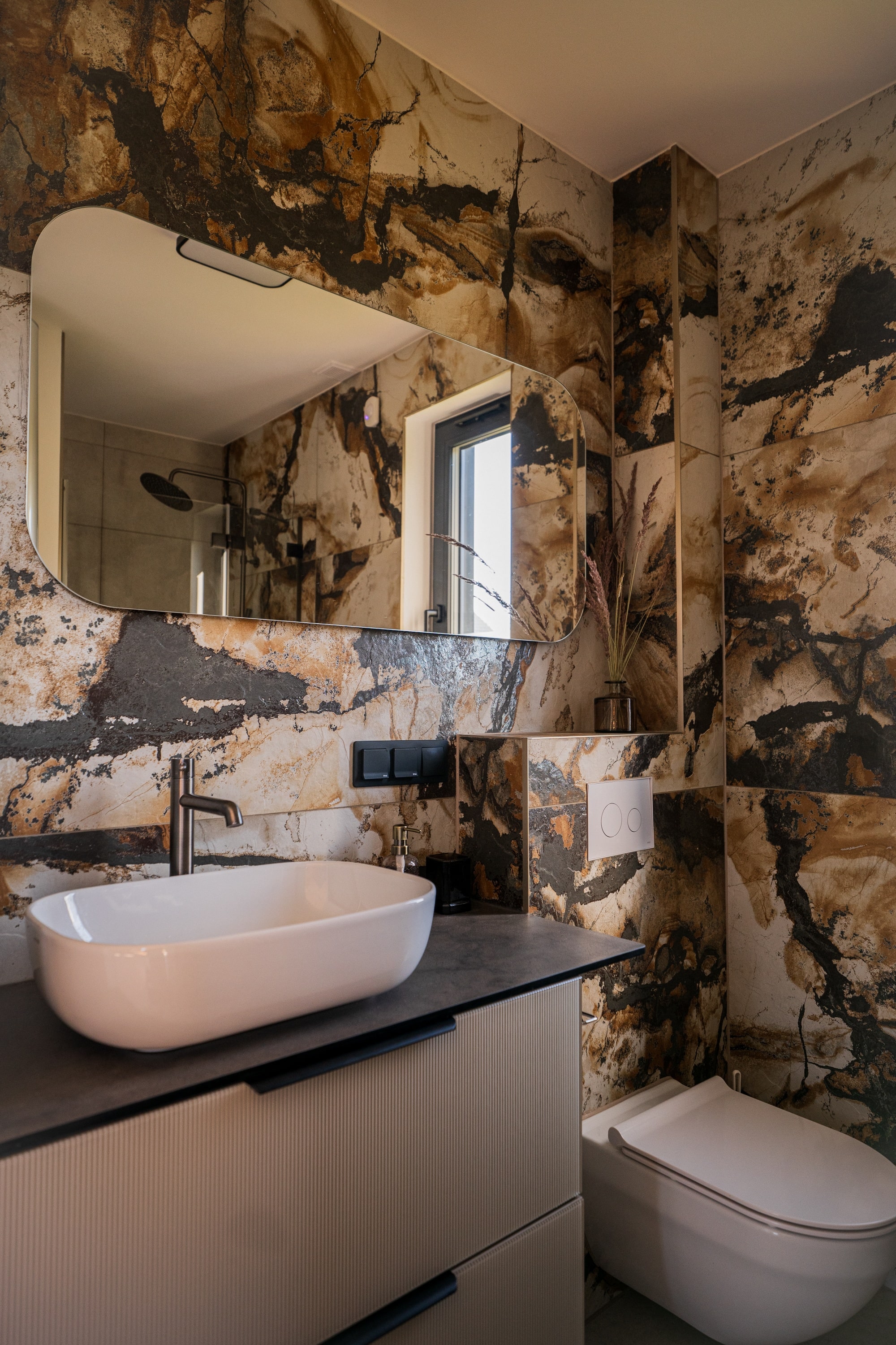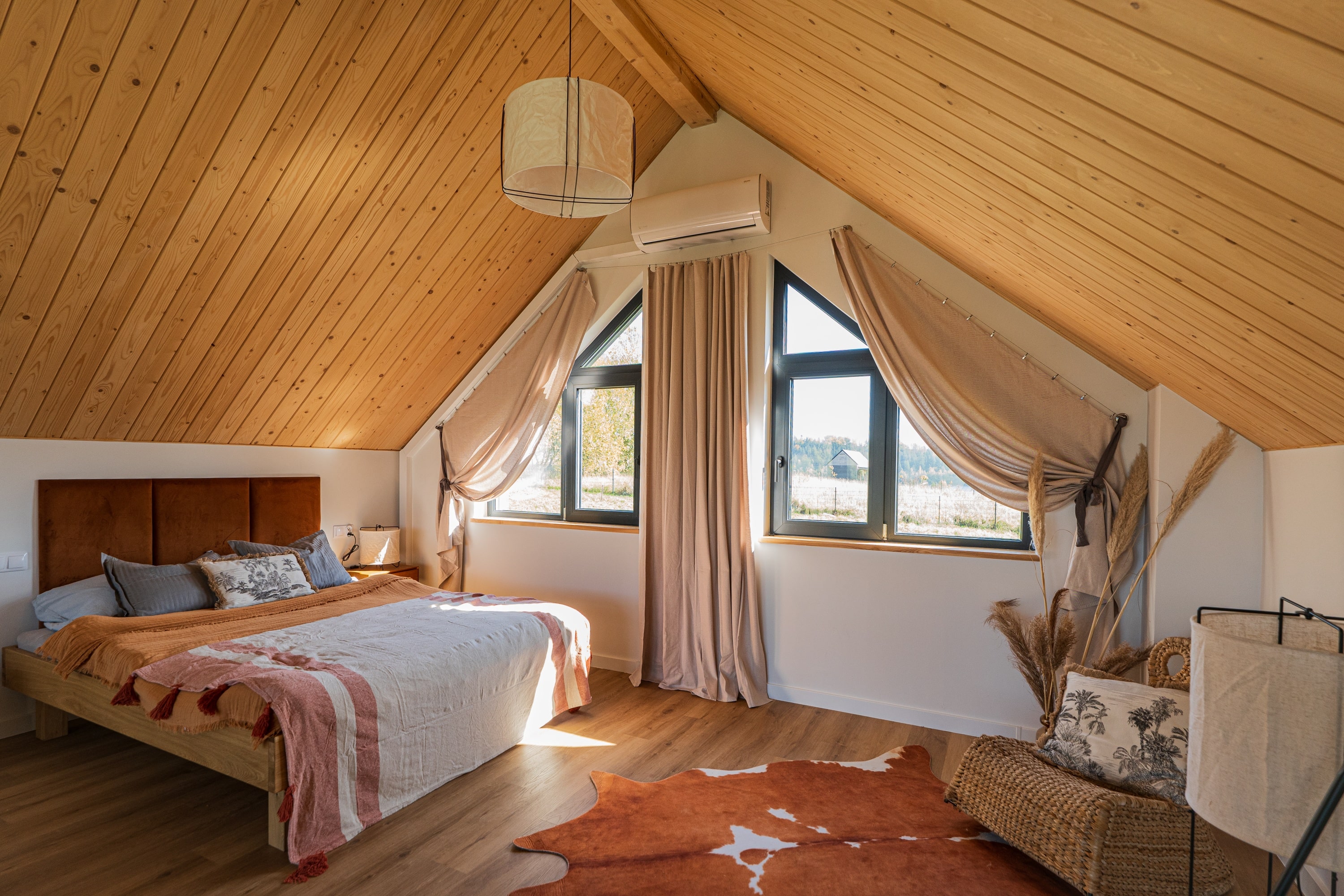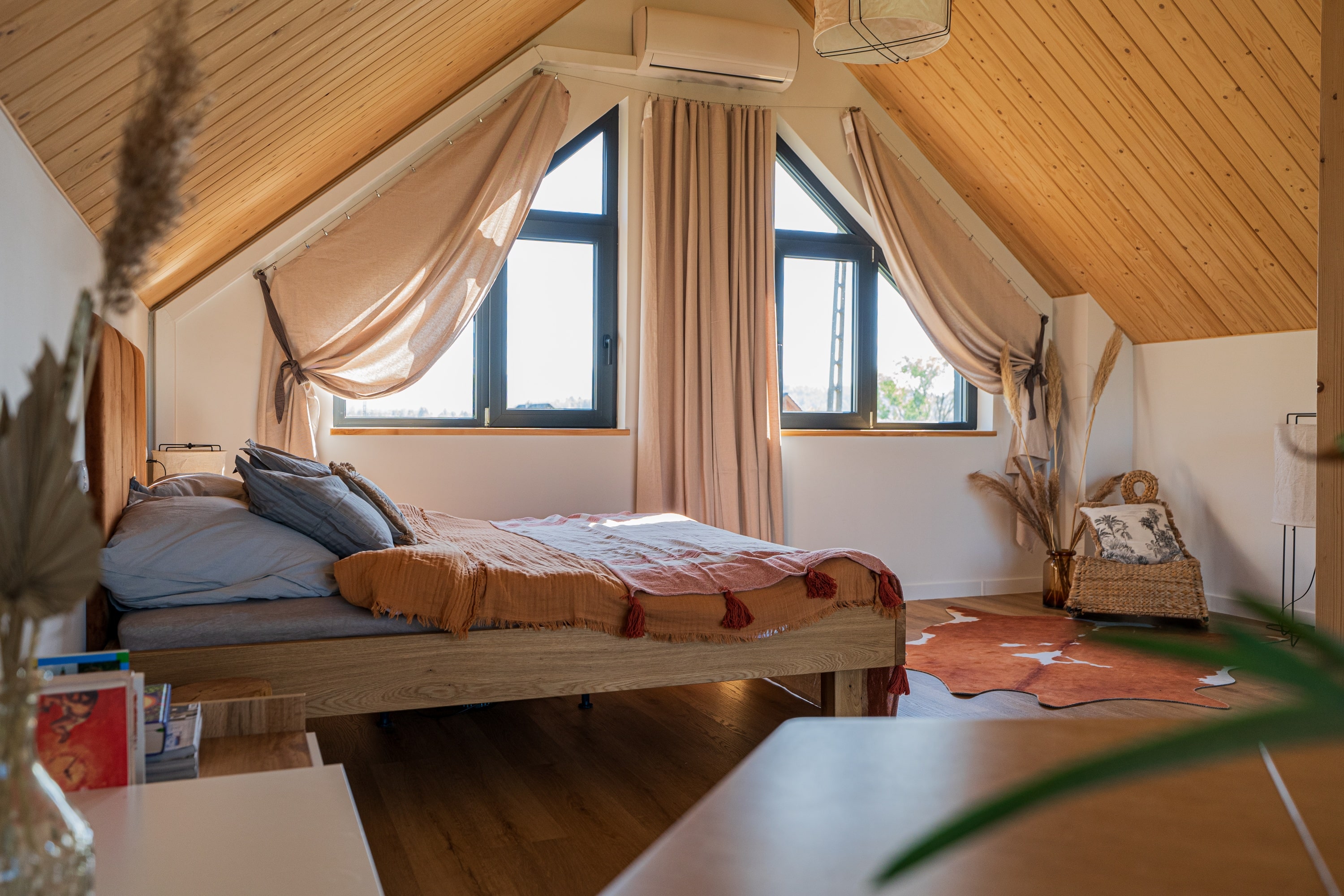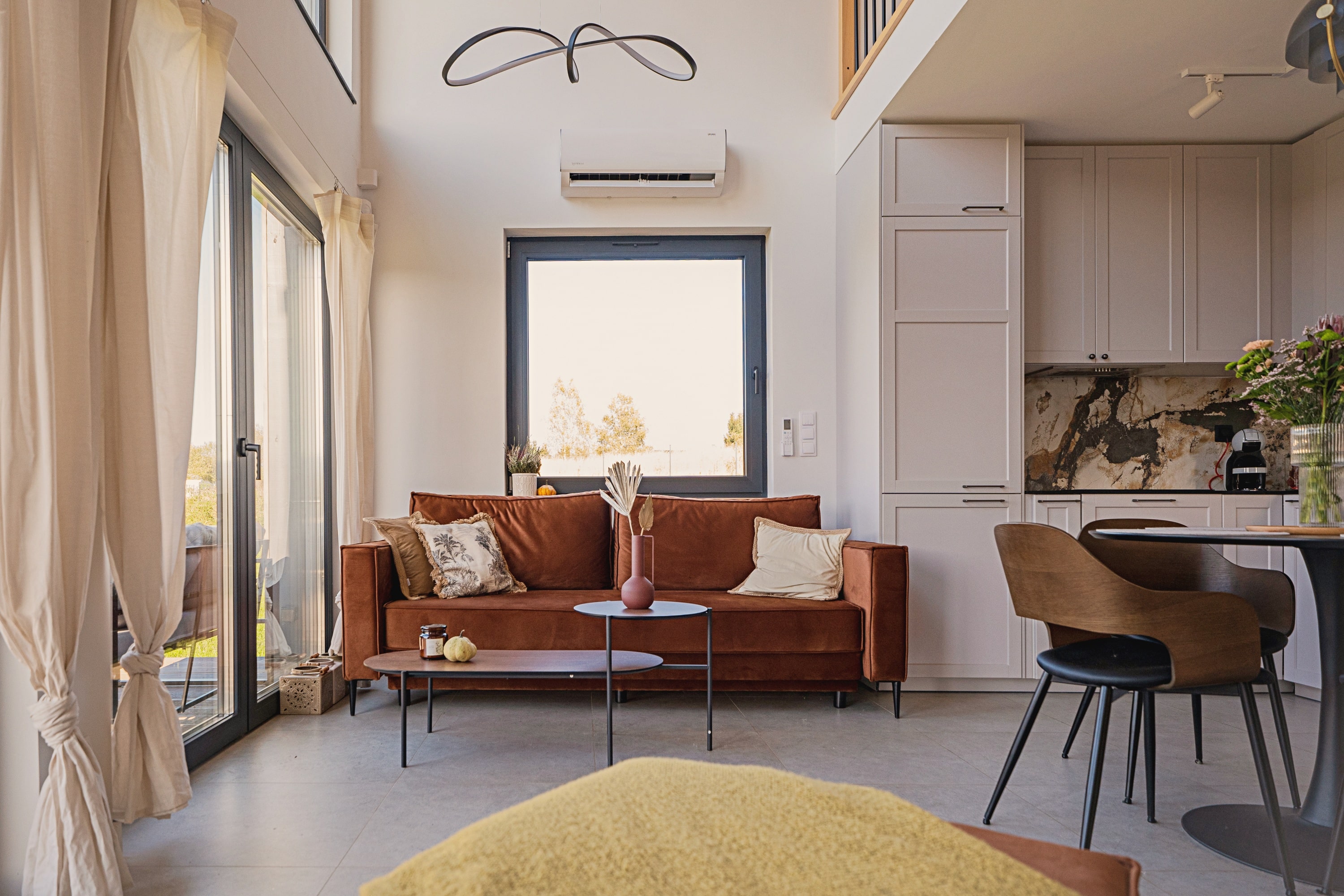 Drewniane akcenty, duże przeszklenia, kominek w sercu salonu i jacuzzi na tarasie – wszystko to tworzy atmosferę idealną zarówno do odpoczynku, jak i pracy zdalnej w otoczeniu natury. Ten dom z jacuzzi łączy nowoczesny komfort z naturalnym urokiem miejsca. Inteligentne rozwiązania smart home dopełniają całości, czyniąc z Kasztanowej 14 przestrzeń, w której technologia staje się niewidzialnym wsparciem codzienności.
