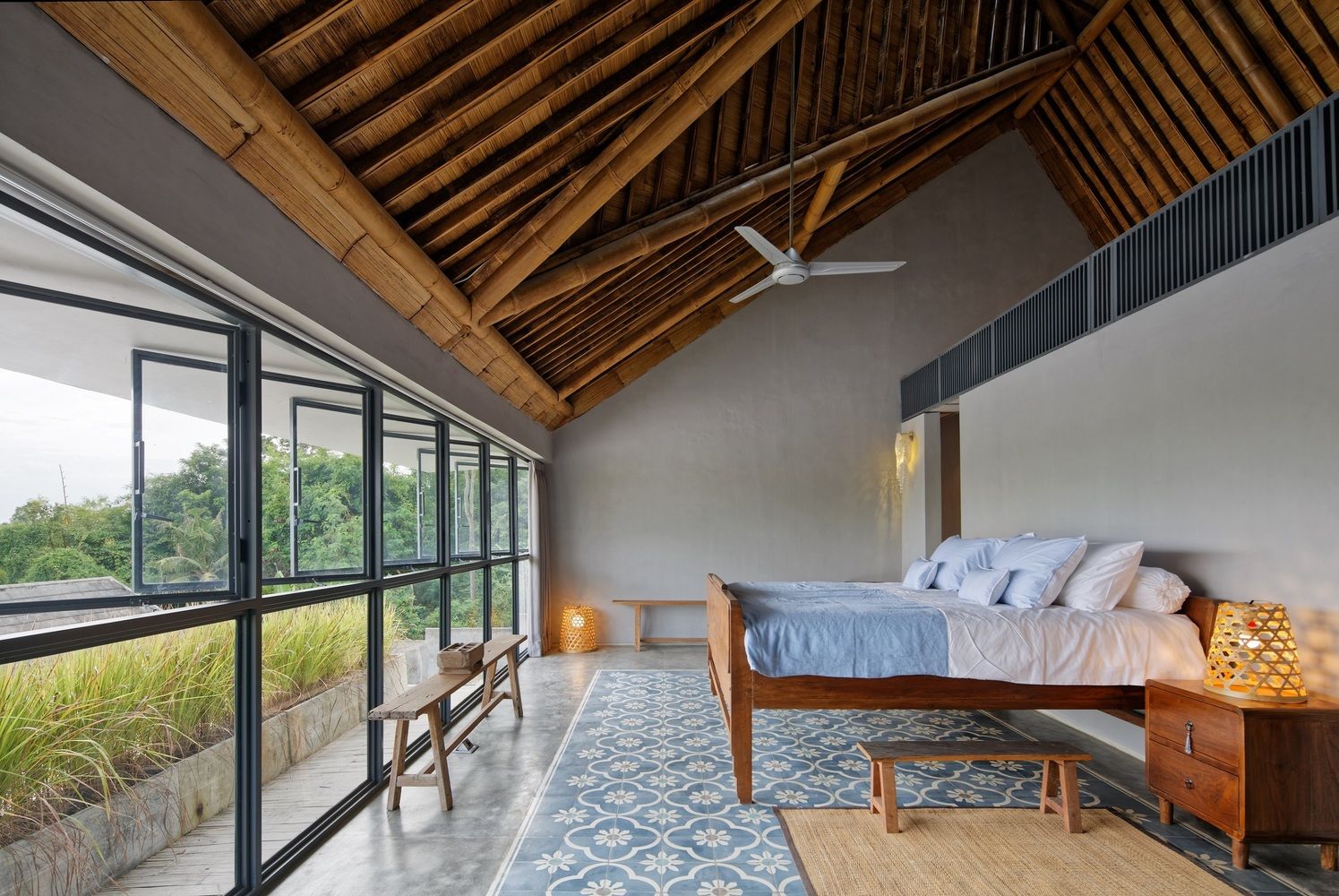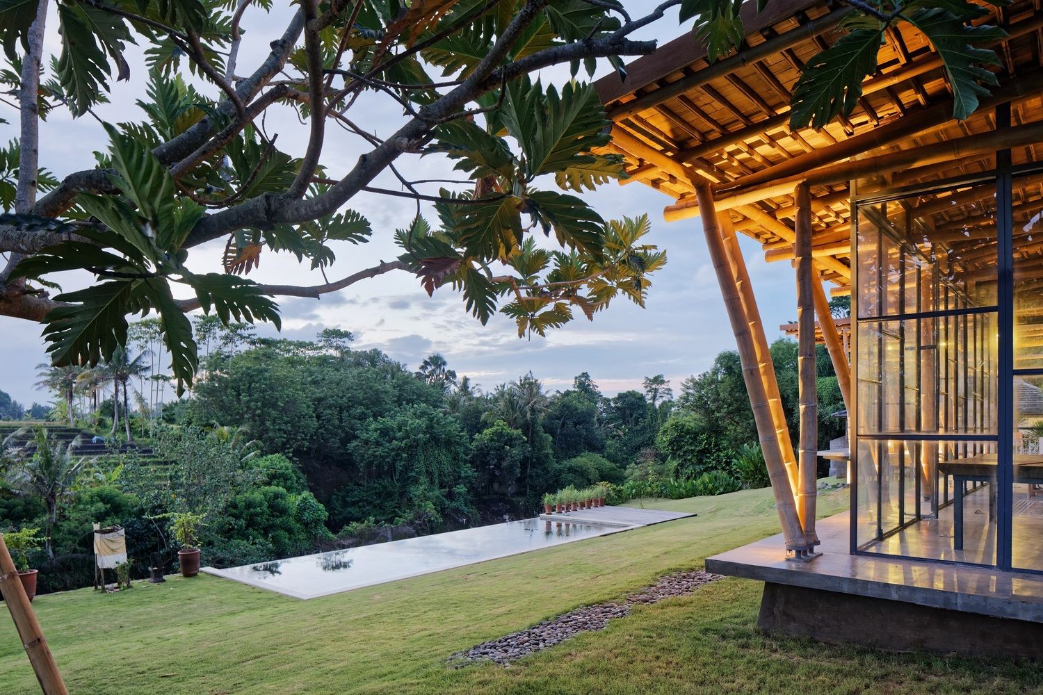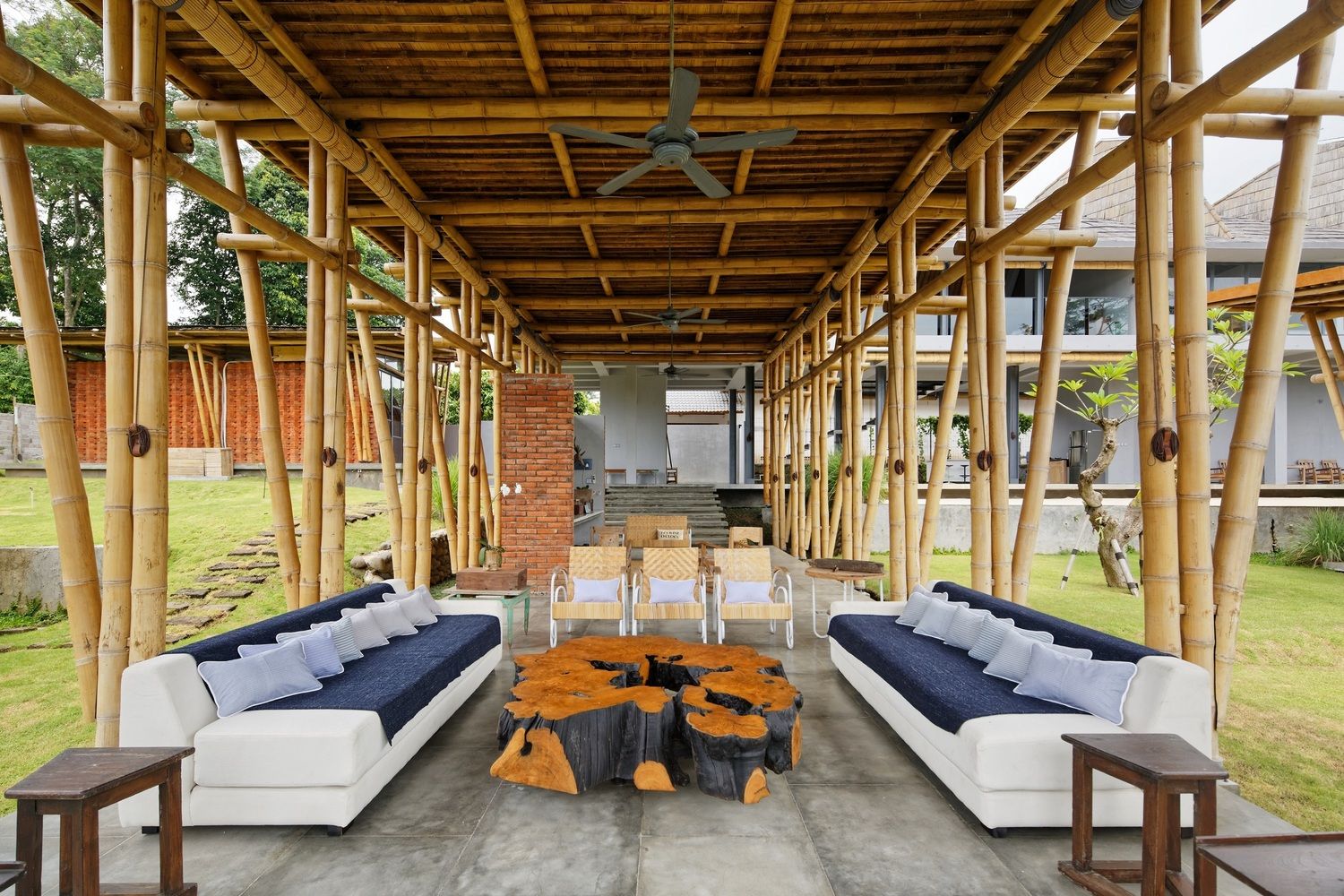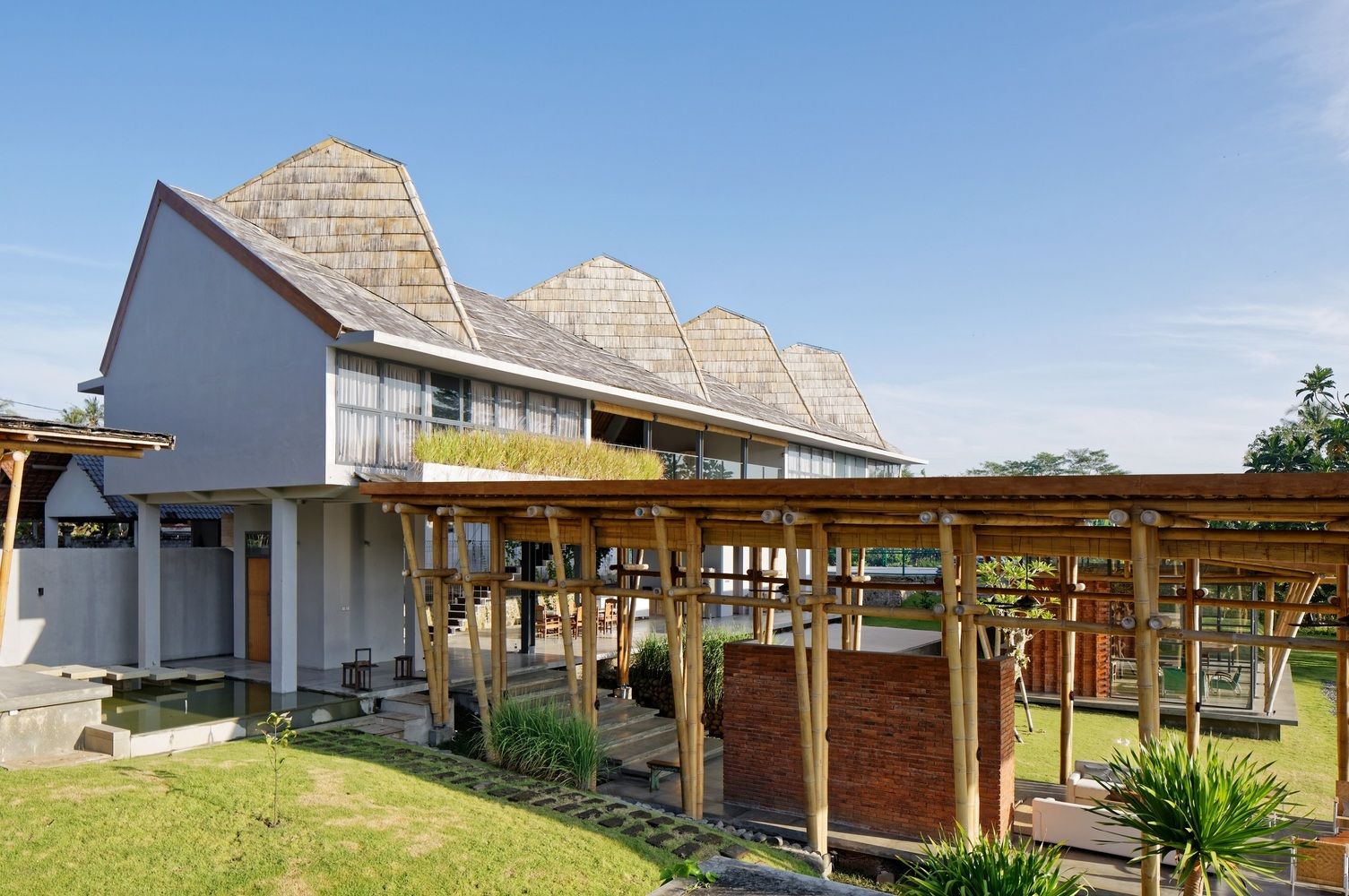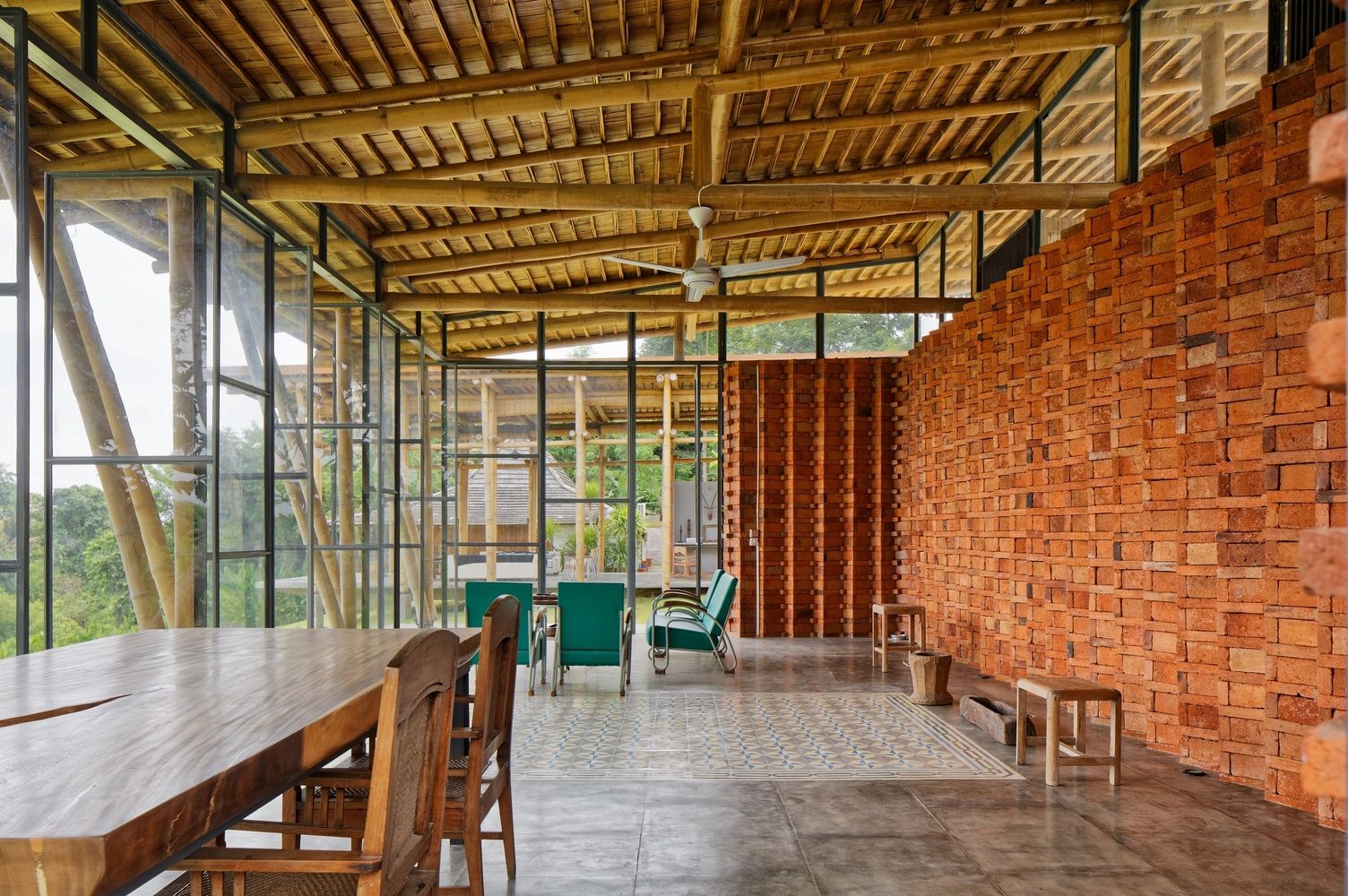Koncepcja budowlana czerpie z tradycyjnych balijskich konstrukcji „Taring” – tymczasowych bambusowych struktur wykorzystywanych podczas ceremonii – i opiera się na wyraźnym rozdzieleniu poziomów, ścian oraz dachu, które funkcjonują jako niezależne elementy. Architekci dostosowali projekt do klimatu tropikalnego, stosując lokalnie produkowaną cegłę o ciepłej, pomarańczowej barwie oraz beton zapewniający ochronę przed upałem. Otwarta konstrukcja, liczne przeszklenia i naturalna wentylacja pozwalają na stały kontakt z przyrodą, czyniąc dom integralną częścią krajobrazu. Ta współczesna interpretacja tradycyjnej architektury balijskiej bywa porównywana do idei, jakie niesie nowoczesna stodoła, gdzie prostota formy, naturalne materiały i relacja z otoczeniem odgrywają kluczową rolę.