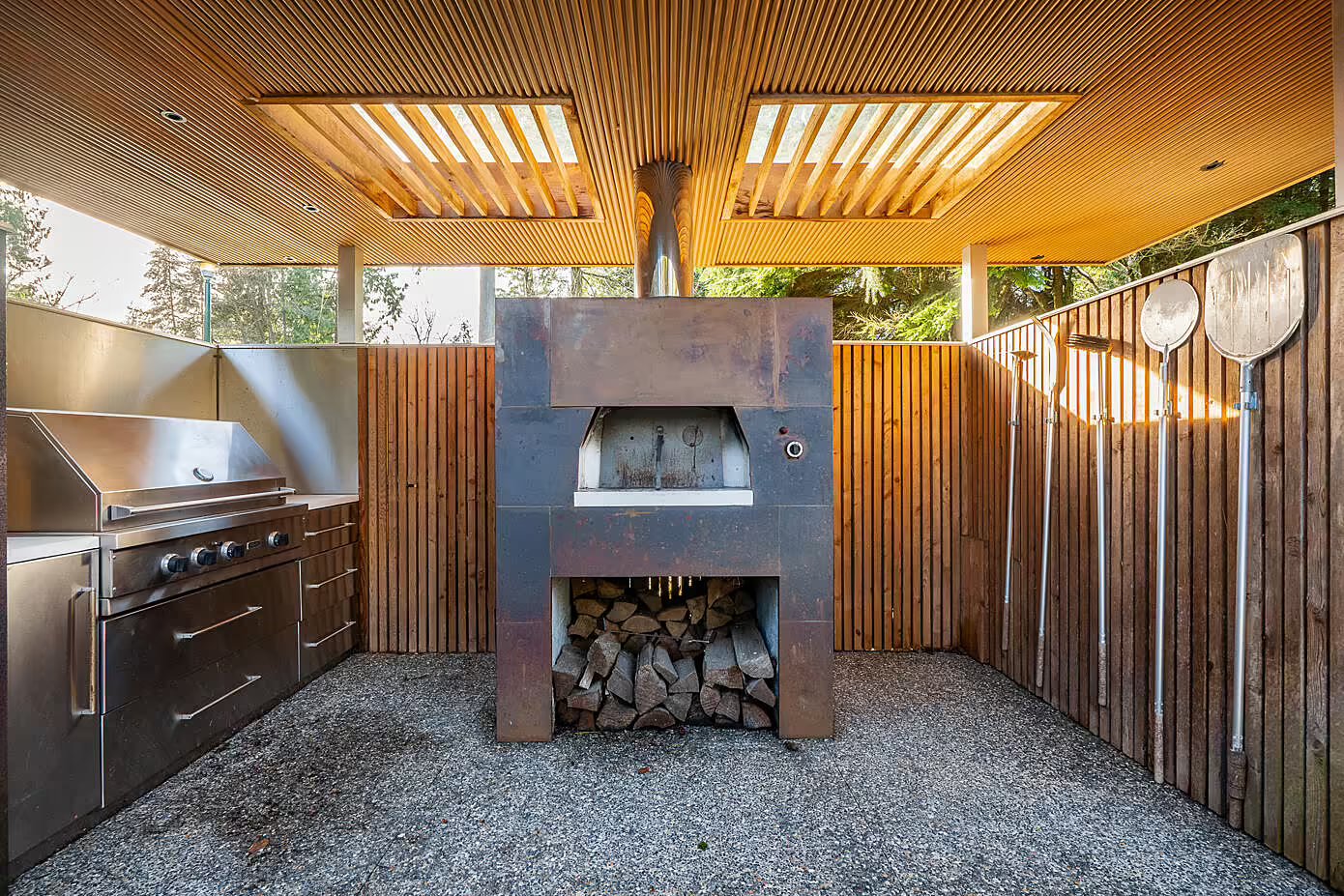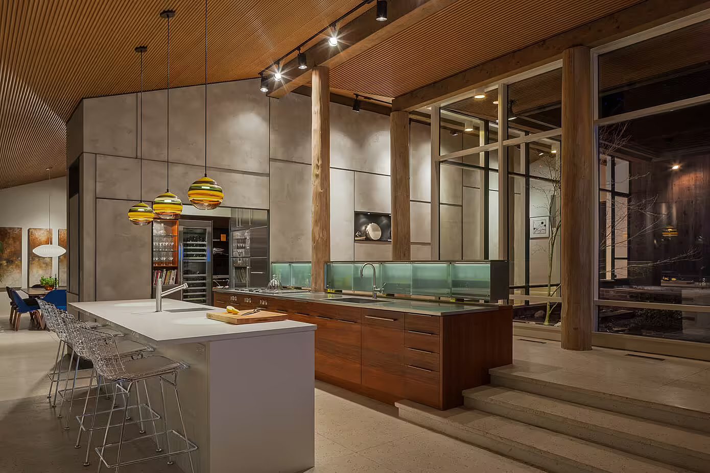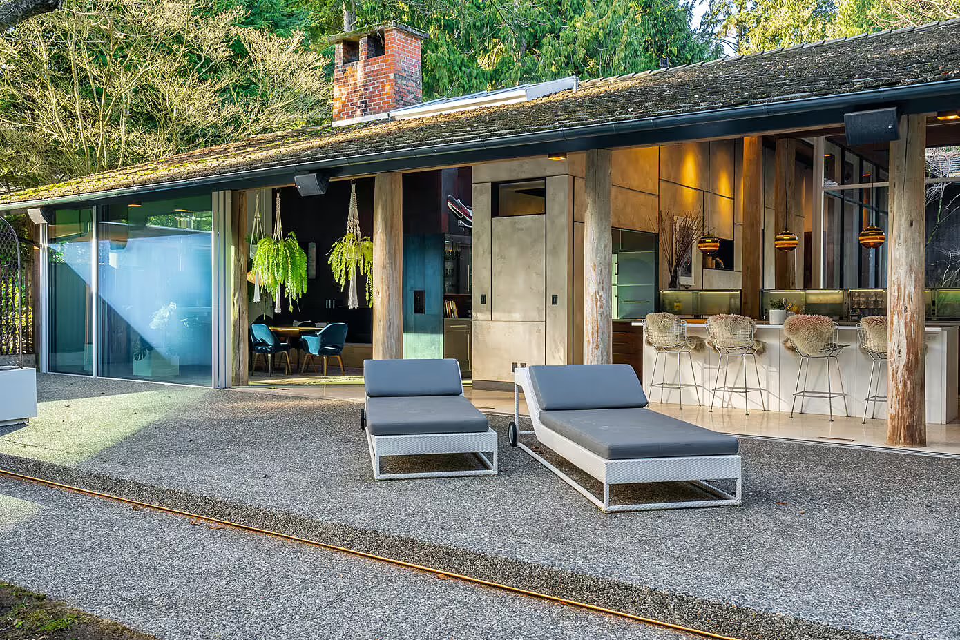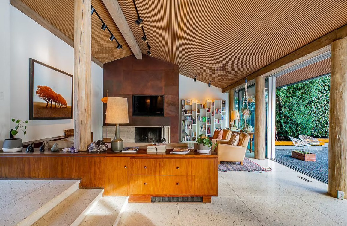 Ten wyjątkowy dom w West Vancouver, pierwotnie zaprojektowany w 1958 roku przez znanego amerykańskiego architekta Rolanda Terry’ego, przeszedł kompleksową renowację, która nadała mu cechy współczesnej nowoczesnej stodoły. Z zachowaniem ducha oryginalnego projektu, odnowiona rezydencja w kształcie litery L została zorganizowana wokół prywatnego dziedzińca i podzielona na dwie strefy: część sypialnianą i otwartą przestrzeń dzienną z kuchnią i jadalnią.