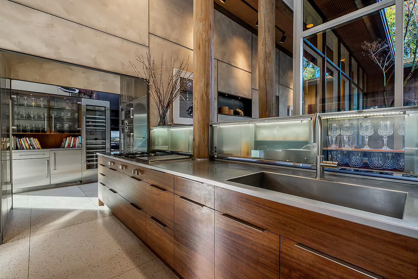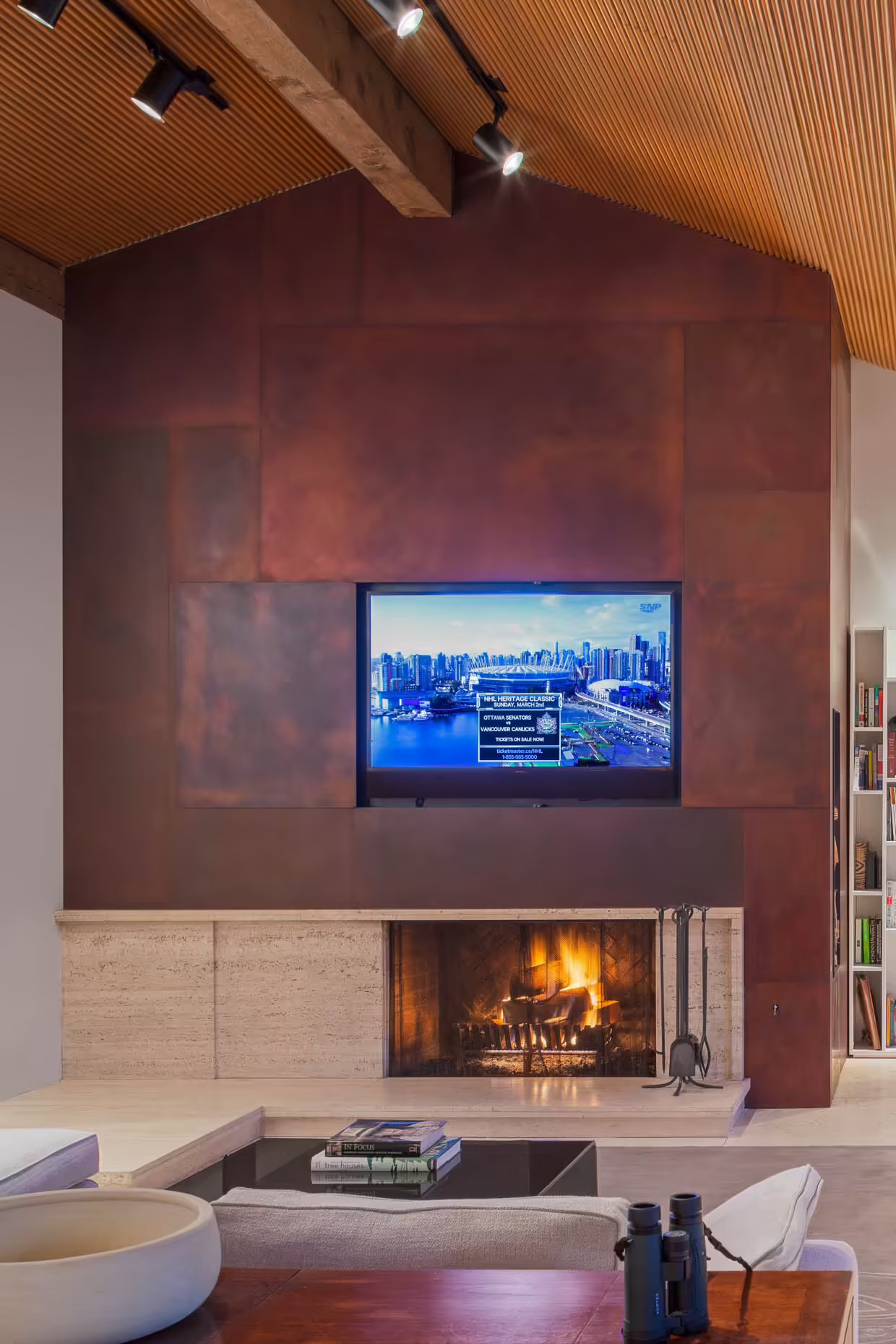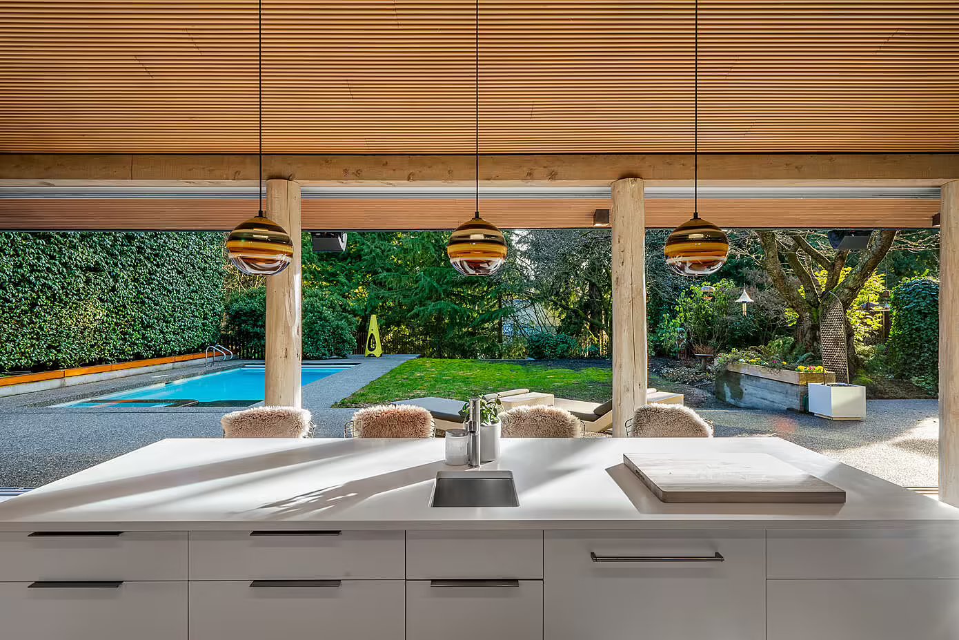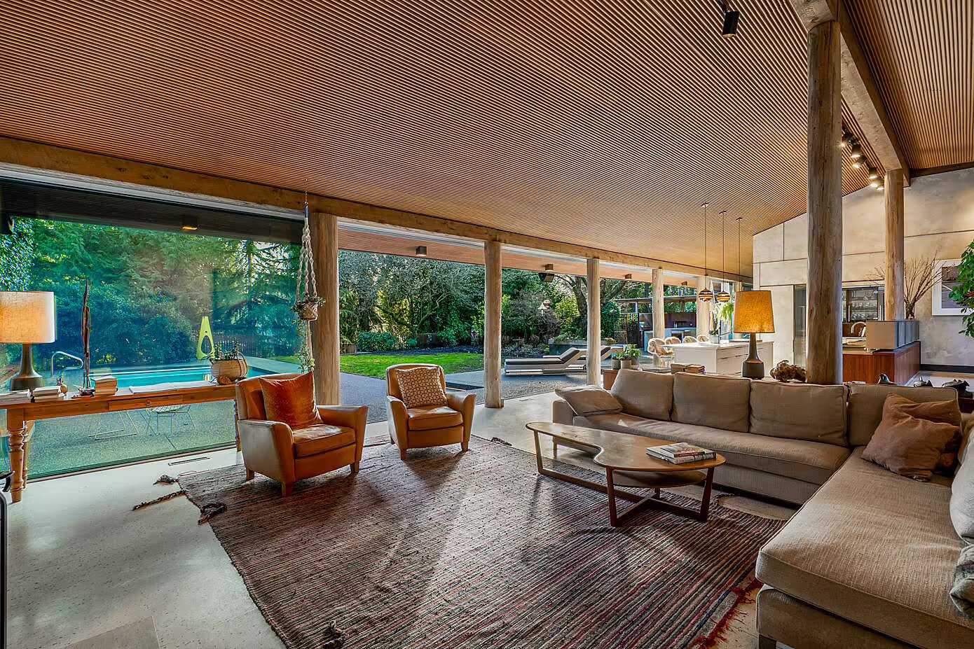 Ten wyjątkowy dom w West Vancouver, pierwotnie zaprojektowany w 1958 roku przez znanego amerykańskiego architekta Rolanda Terry’ego, przeszedł kompleksową renowację, która nadała mu cechy współczesnej nowoczesnej stodoły. Z zachowaniem ducha oryginalnego projektu, odnowiona rezydencja w kształcie litery L została zorganizowana wokół prywatnego dziedzińca i podzielona na dwie strefy: część sypialnianą i otwartą przestrzeń dzienną z kuchnią i jadalnią.