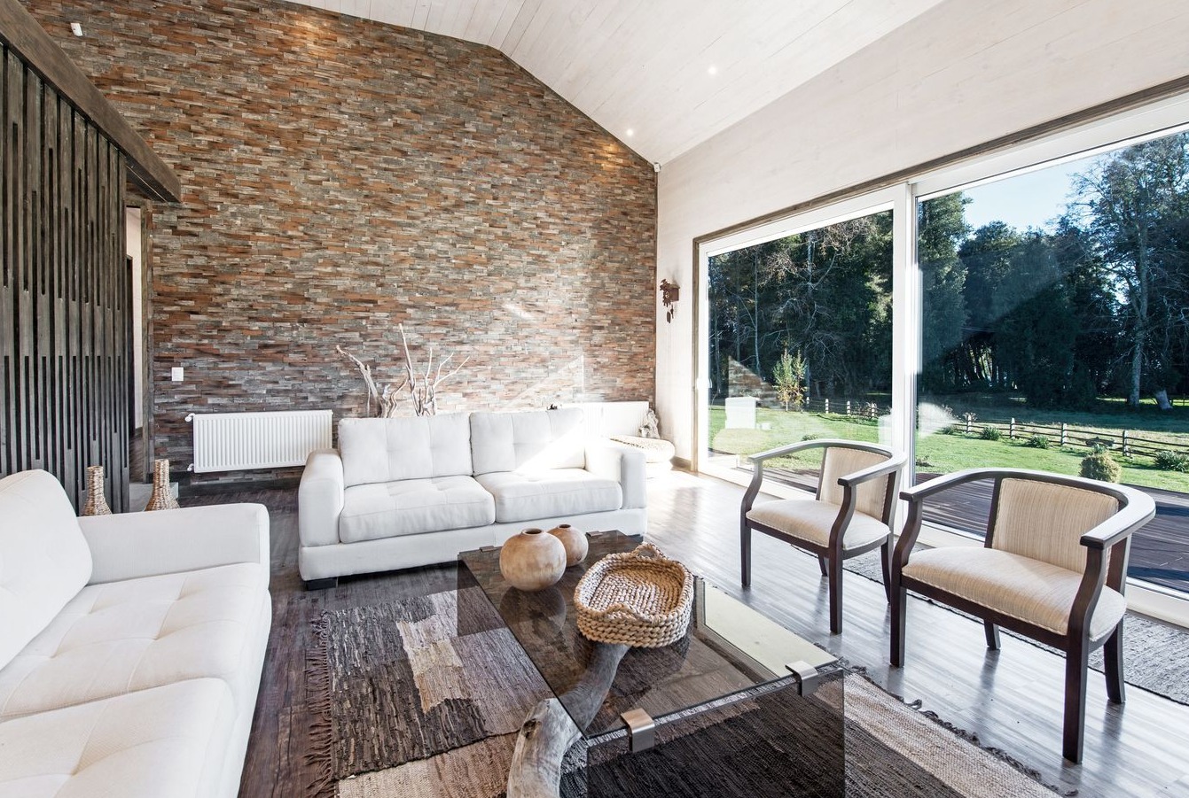Do budowy RH House wykorzystano materiały charakterystyczne dla południa Chile, takie jak Volcometal, drewno sosny oregońskiej barwione na biało oraz odzyskane deski modrzewiowe, które zastosowano we wnętrzu salonu. Elewacje wykończono ciemno barwionym drewnem ze względu na jego trwałość i niskie koszty konserwacji. Architektura domu czerpie z lokalnej tradycji — dwuspadowe dachy, wydłużony okap oraz drewno jako dominujący materiał — nadając całości klasyczny, a jednocześnie nowoczesny charakter, oparty na prostych liniach i harmonii z otoczeniem.